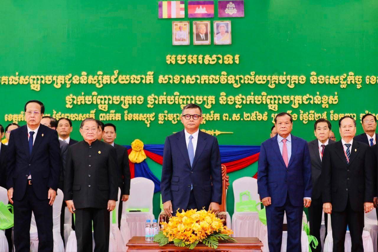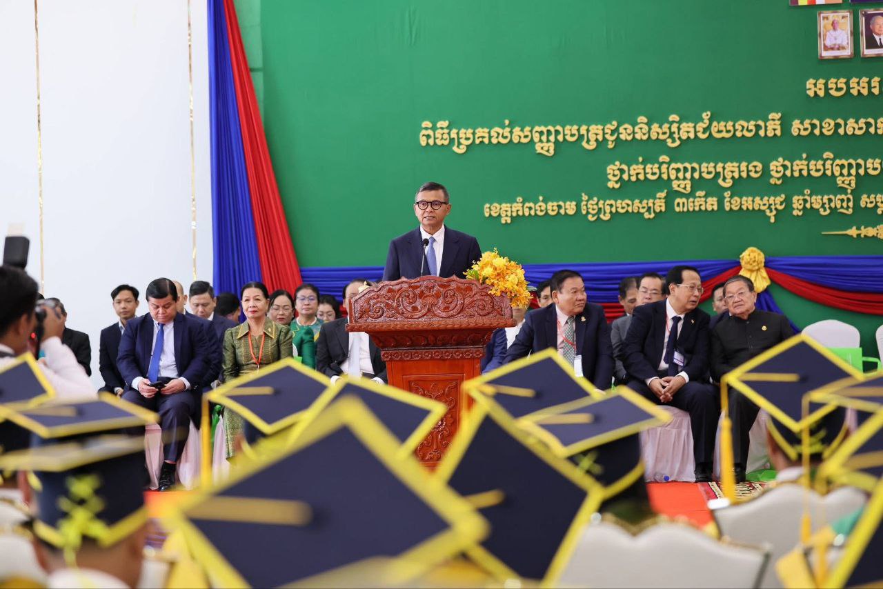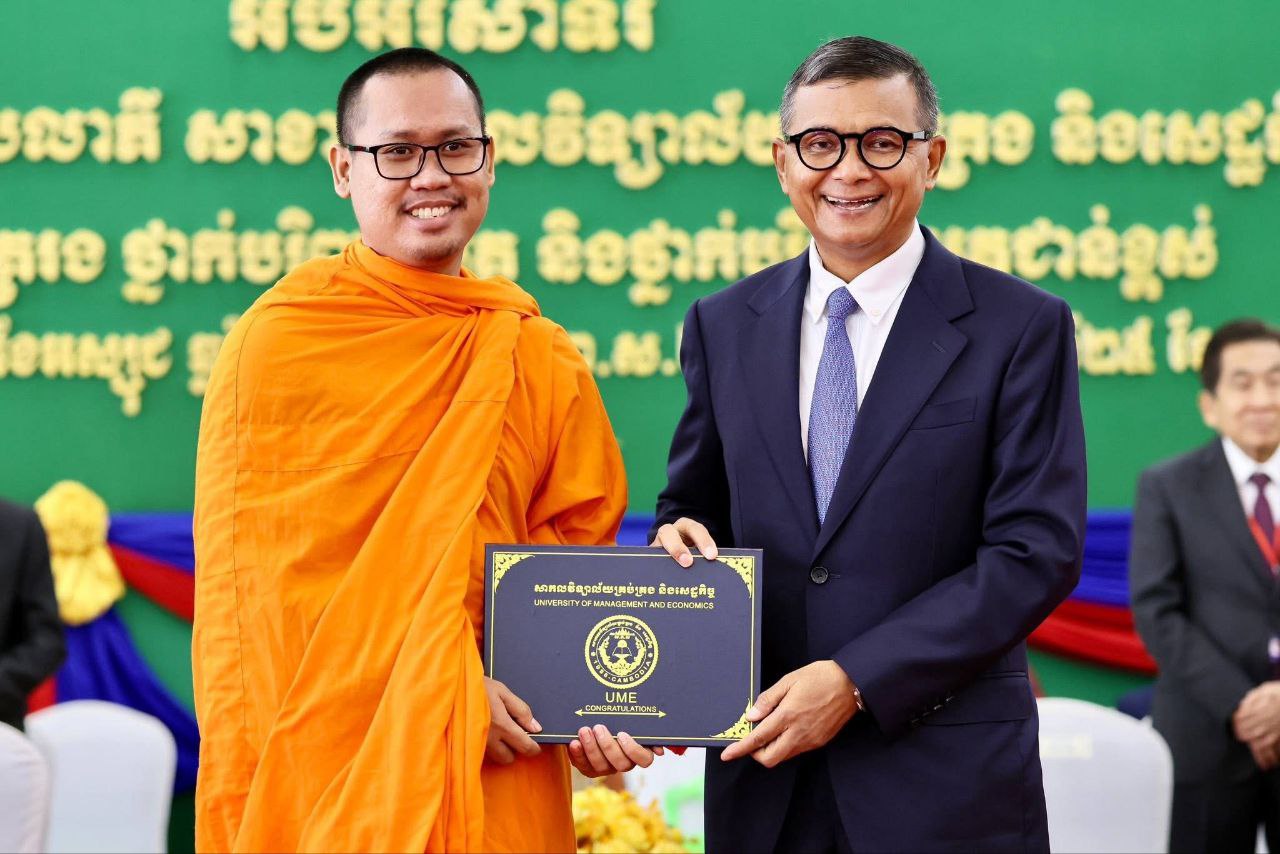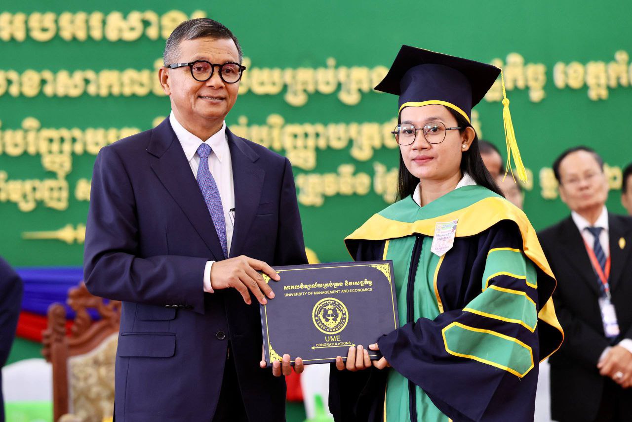 ខេត្តកំពង់ចាម៖ ឯកឧត្តមបណ្ឌិតសភាចារ្យ ហង់ជួន ណារ៉ុន ឧបនាយករដ្ឋមន្រ្តី រដ្ឋមន្ត្រីក្រសួងអប់រំ យុវជន និងកីឡា នាថ្ងៃទី២៥ ខែកញ្ញា ឆ្នាំ២០២៥ បានអញ្ជើញបានអញ្ជើញជាអធិបតីក្នុងពិធីប្រគល់សញ្ញាបត្រកម្រិត បរិញ្ញបត្ររង បរិញ្ញាបត្រ និងបរិញ្ញាបត្រជាន់ខ្ពស់ ជូននិសិ្សតជ័យលាភី នៃសាខាសាកលវិទ្យាល័យគ្រប់គ្រង និងសេដ្ឋកិច្ច(UME) សាខាខេត្តកំពង់ចាម ។