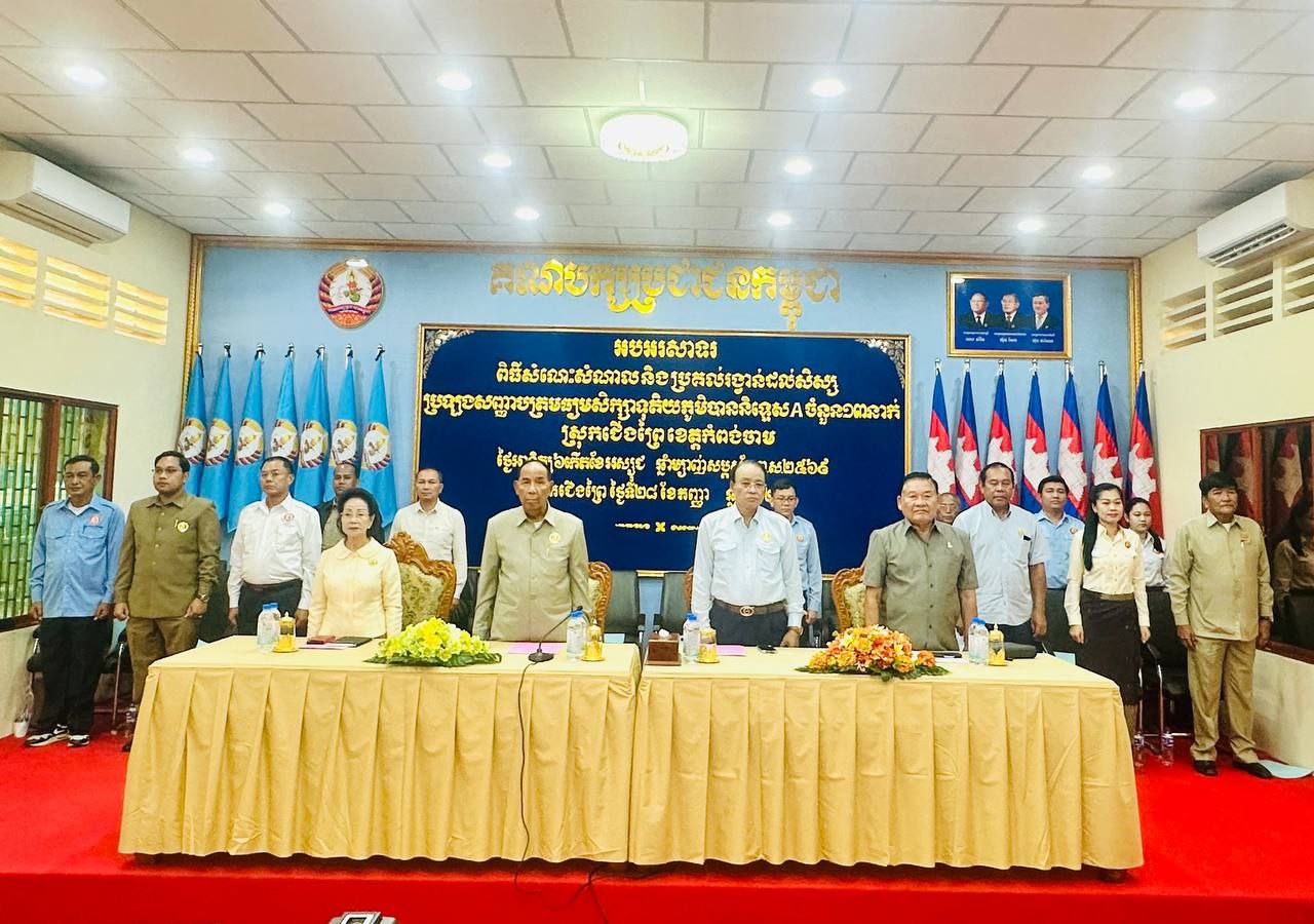 ខេត្តកំពង់ចាម៖នៅព្រឹកថ្ងៃទី២៨ ខែកញ្ញា ឆ្នាំ២០២៥ នៅទីស្នាក់ការគណបក្សប្រជាជនកម្ពុជាស្រុកជើងព្រៃ បានរៀបចំពិធីជួបសំណេះសំណាល និងប្រគល់រង្វាន់ជូនសិស្សប្រឡងមធ្យមសិក្សាទុតិយភូមិទទួលបាននិទ្ទេសA ចំនួន ១៣នាក់ ក្នុងស្រុកជើងព្រៃ ខេត្តកំពង់ចាម ក្រោមអធិបតីភាពឯកឧត្តមបណ្ឌិត ម៉ា ឈឿន សមាជិកគណៈកម្មាធិការថ្នាក់កណ្តាលគណបក្សប្រជាជនកម្ពុជា តំណាងរាស្ត្រមណ្ឌលកំពង់ចាម និងជាប្រធានក្រុមការងារគណបក្សចុះមូលដ្ឋានស្រុកជើងព្រៃ និងលោកជំទាវបណ្ឌិត អ៊ុក ម៉ាលី សមាជិកគណៈកម្មាធិការថ្នាក់កណ្តាលគណបក្សប្រជាជនកម្ពុជា សមាជិកព្រឹទ្ធសភាមណ្ឌលភូមិភាគ២ និងជាអនុប្រធានក្រុមការងារគណបក្សចុះមូលដ្ឋានស្រុកជើងព្រៃ, ឯកឧត្តម លន់ លឹម ថៃ សមាជិកគណៈកម្មាធិការថ្នាក់កណ្តាលគណបក្សប្រជាជនកម្ពុជា តំណាងរាស្រ្តមណ្ឌលកំពង់ចាម និងជាអនុប្រធានក្រុមការងារគណបក្សចុះមូលដ្ឋានស្រុកជើងព្រៃ, ឯកឧត្តម ជីម លាវ សមាជិកគណៈកម្មាធិការថ្នាក់កណ្តាល សមាជិកព្រឹទ្ធសភាមណ្ឌលភូមិភាគ២ និងជាអនុប្រធានក្រុមការងារគណបក្សចុះមូលដ្ឋានស្រុកជើងព្រៃ។
