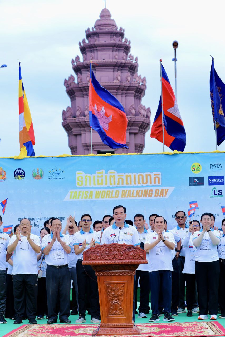 ឯកឧត្តមអភិបាលខេត្ត មានប្រសាសន៍បន្តថា ព្រឹត្តិការណ៍ដើរពិភពលោក ត្រូវបានប្រារព្ធឡើងនៅអាទិត្យ សប្តាហ៍ដំបូងនៃខែតុលាជារៀងរាល់ឆ្នាំ ដោយមានមនុស្សពីគ្រប់មជ្ឈដ្ឋានទូទាំងពិភពលោករួមគ្នាប្រារព្ធពិធីនេះ ក្នុងគោលបំណងលើកកំពស់សុខភាព និងសង្គមប្រកបដោយសាមគ្គីភាព តាមរយៈការចែករំលែកពេលវេលាដ៍មានតំលៃ ក្នុងការបង្ហាញសកម្មរបស់ពួកគេ ដោយមានការរៀបចំដង្ហែភ្លើងគប់ពីទិសខាងកើត ទៅទិសខាងលិច ឆ្លងកាត់ខ្សែស្របទូទាំងពិភពលោក នាឆ្នាំកន្លងមកនេះ មានអ្នកចូលរួមក្នុងព្រឹត្តិការណ៍ដើរពិភពលោកនេះ មានចំនួយជាង ៣៨០.០០០ នាក់ តំណាងឱ្យប្រទេសចំនួន ៩៤ នៅទូទាំងពិភពលោក។