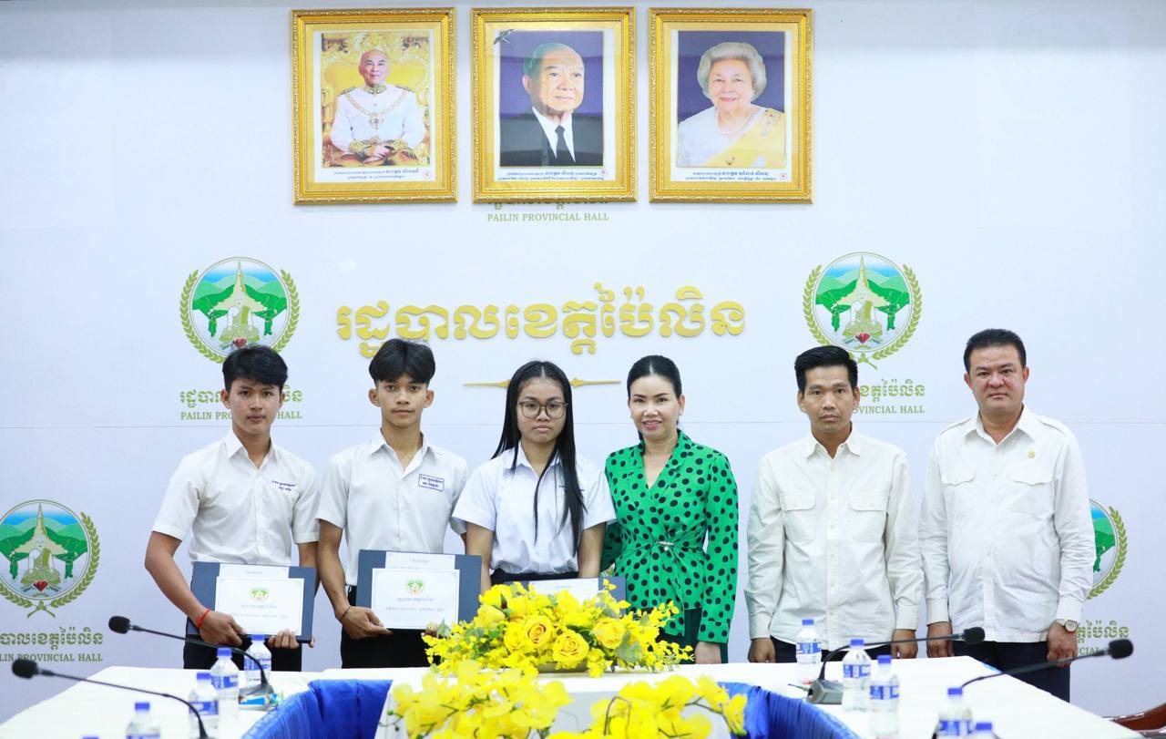 ប៉ៃលិន៖ លោកជំទាវបណ្ឌិត បាន ស្រីមុំ អភិបាល នៃគណៈអភិបាលខេត្តប៉ៃលិន នាថ្ងៃទី១១ ខែតុលា ឆ្នាំ២០២៥ បានអញ្ជើញជួបសំណេះសំណាល និងផ្តល់រង្វាន់លើកទឹកចិត្តដល់សិស្សប្រឡងជាប់សញ្ញាបត្រមធ្យមសិក្សាទុយិភូមិ ឆ្នាំសិក្សា២០២៤–២០២៥ ដែលទទួលបាននិទ្ទេស A។