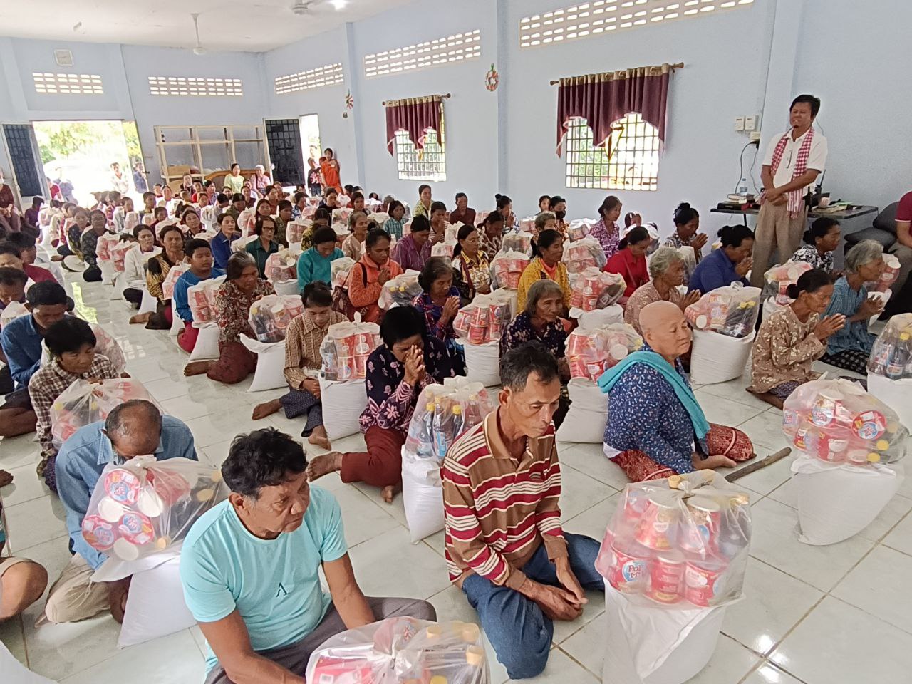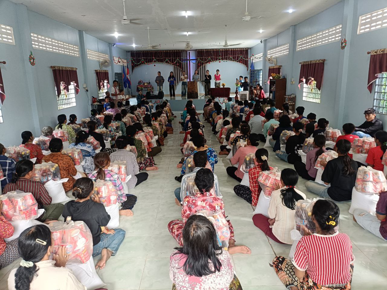 ខេត្តបន្ទាយមានជ័យ៖ដោយក្ដីអាណិតស្រឡាញ់ខ្មែរជួយខ្មែរនៅក្នុងគ្រាលំបាកនោះលោកគ្រូគង្វាល ហម ស៊ុយ ជាប្រធានគណៈកម្មាធិការគ្រិស្តបរិស័ទខេត្តបន្ទាយមានជ័យ រួមដំណើរដោយអស់លោក លោកស្រី អនុប្រធាន និងសមាជិកគ្រិស្តបរិស័ទ អញ្ជើញចុះសួរសុខទុក្ខ និងនាំយកនូវអំណោយនៃក្ដីស្រឡាញ់ ចែកជូនដល់បងប្អូន ប្រជាពលរដ្ឋជាពួកជំនុំដែលមានជីវភាពខ្វះខាតស្ថិតនៅក្នុងឃុំសឹងហ ឃុំសឹង្ហ ស្រុកអូរជ្រៅ ខេត្តបន្ទាយមានជ័យចំនួន ១០០គ្រួសារ ដែលពួកគាត់បានជួបការលំបាកផ្នែកជីវភាព នៅជិតខ្សែបន្ទាត់ព្រំដែន កម្ពុជា–សៀម។