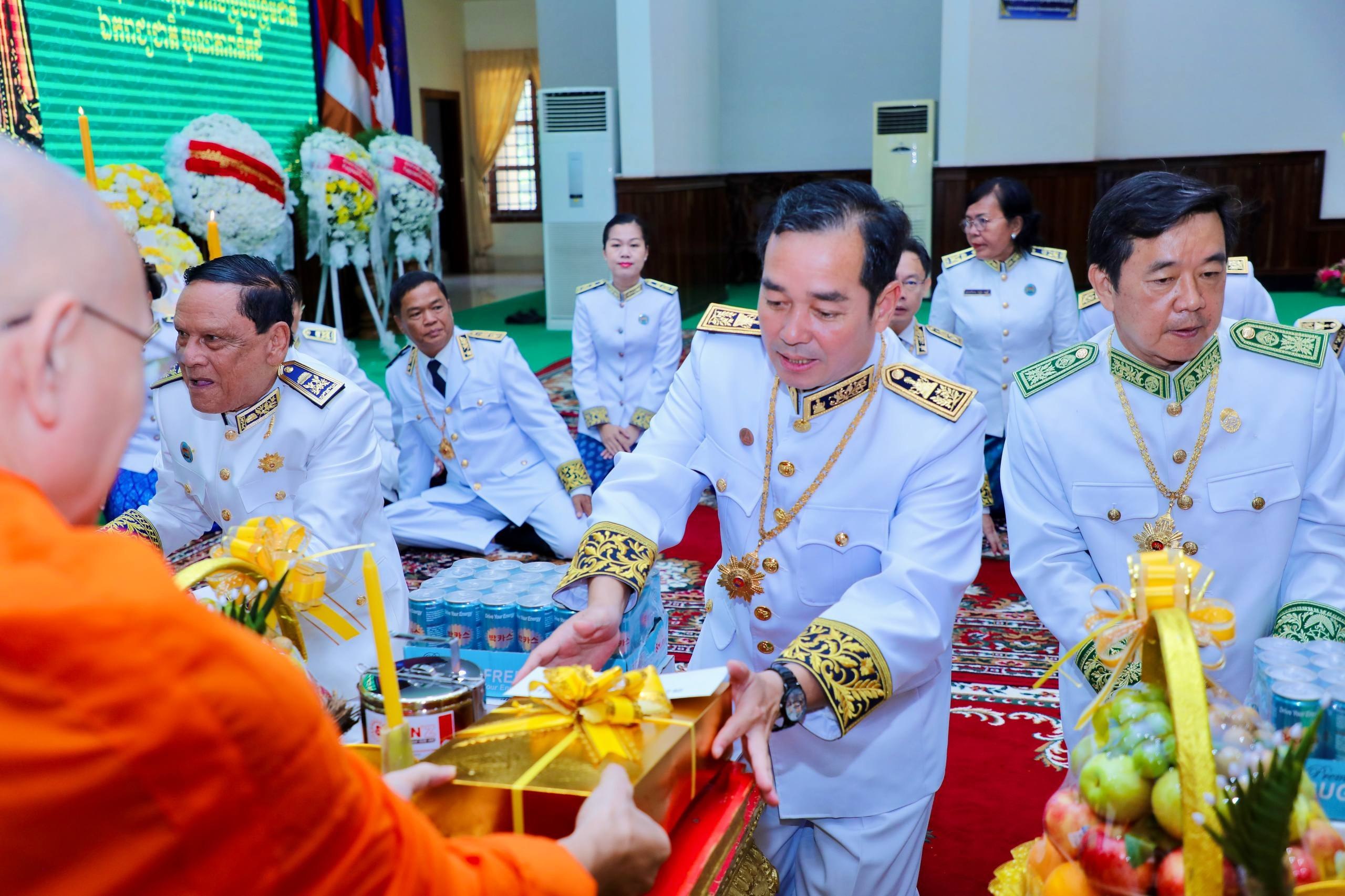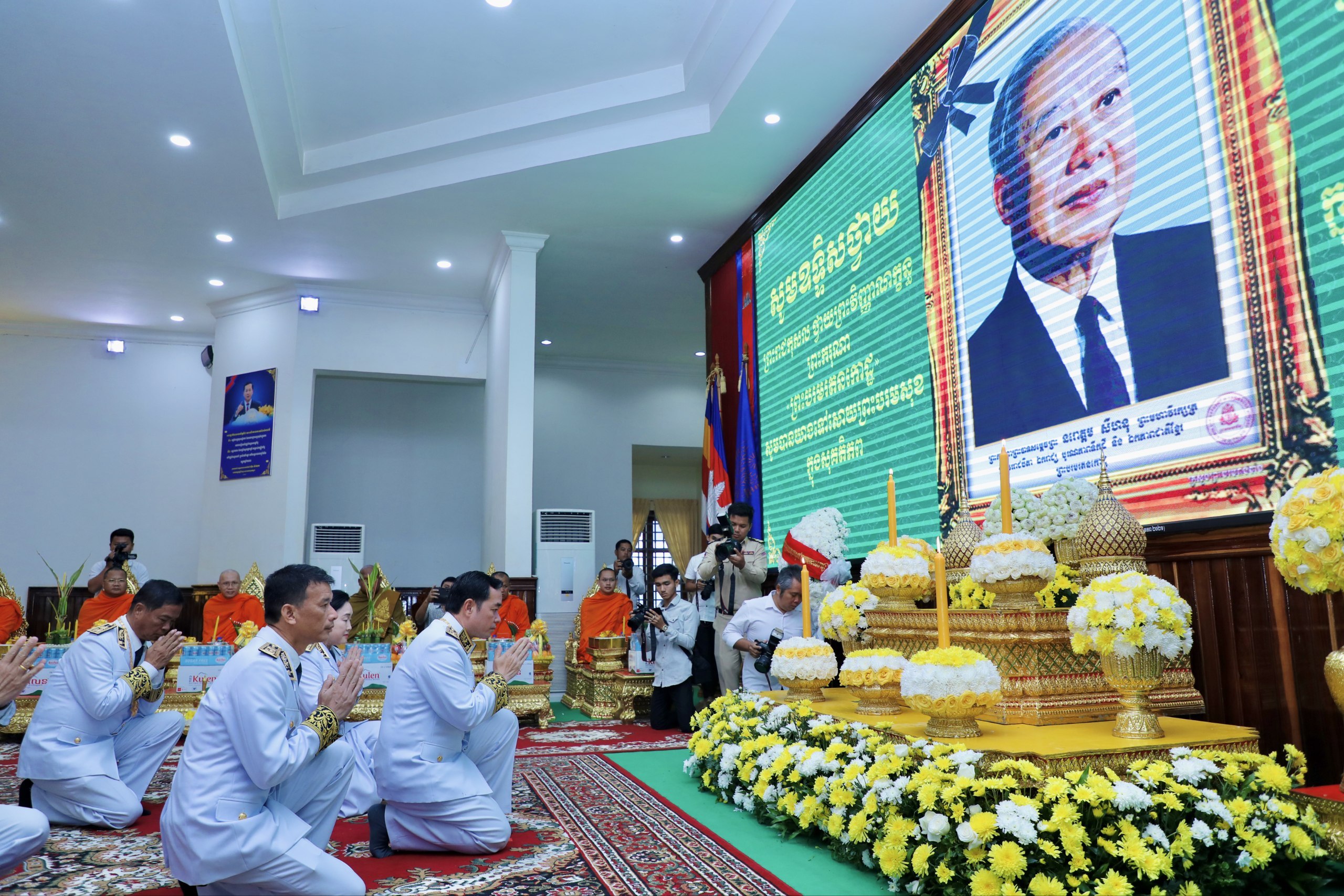 (កំពង់ចាម)៖នាព្រឹកថ្ងៃពុធ ៨រោច ខែអស្សុជ ឆ្នាំម្សាញ់ សប្តស័ក ព.ស. ២៥៦៩ ត្រូវនឹងថ្ងៃទី១៥ ខែតុលា ឆ្នាំ២០២៥ រដ្ឋបាលខេត្តកំពង់ចាម បានប្រារព្ធពិធីគោរពវិញ្ញាណក្ខន្ធ ព្រះករុណា ព្រះបាទសម្តេច ព្រះនរោត្តមសីហនុ ព្រះមហាវីរក្សត្រ ព្រះវររាជបិតា ឯករាជ្យបូរណភាពទឹកដី និងឯកភាពជាតិខ្មែរ ព្រះបរមរតនកោដ្ឋ ក្រោមអធិបតីភាព ឯកឧត្តម អ៊ុន ចាន់ដា អភិបាលនៃគណៈអភិបាលខេត្តកំពង់ចាម ឯកឧត្តម ខ្លូត ផន ប្រធានក្រុមប្រឹក្សាខេត្ត និង ឯកឧត្តម សួស ឡា ប្រធានសាលាដំបូងខេត្តកំពង់ចាម ដោយមានការនិមន្តអញ្ជើញចូលរួមពីព្រះមេគណខេត្ត ព្រះមន្ត្រីសង្ឃខេត្ត សមាជិកក្រុមប្រឹក្សាខេត្ត អភិបាលរងខេត្ត កងកម្លាំងប្រដាប់អាវុធទាំងបី លោក លោកស្រី ប្រធានមន្ទីរអង្គភាពជុំវិញខេត្ត និងមន្ត្រីរាជការជាច្រើនរូប។