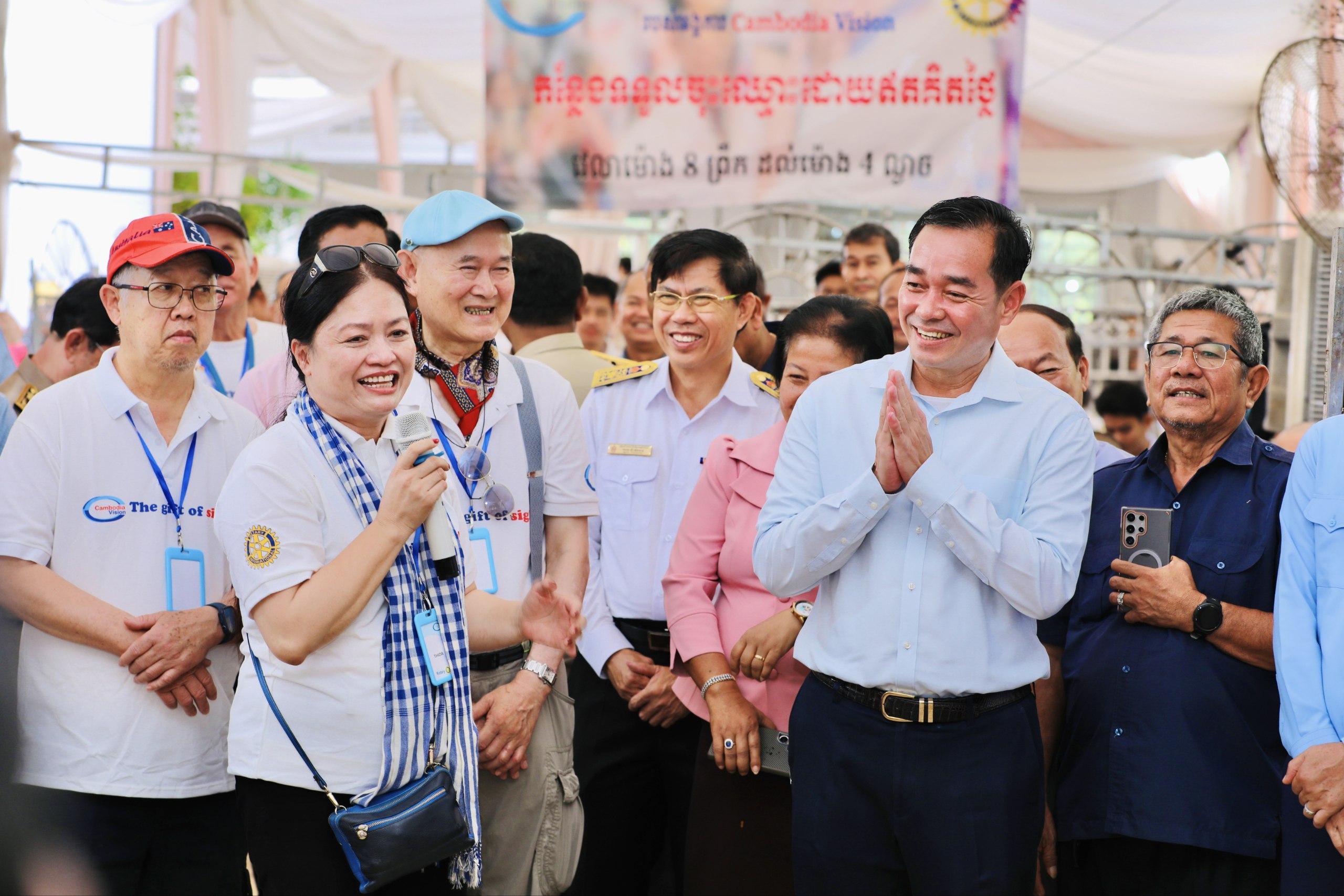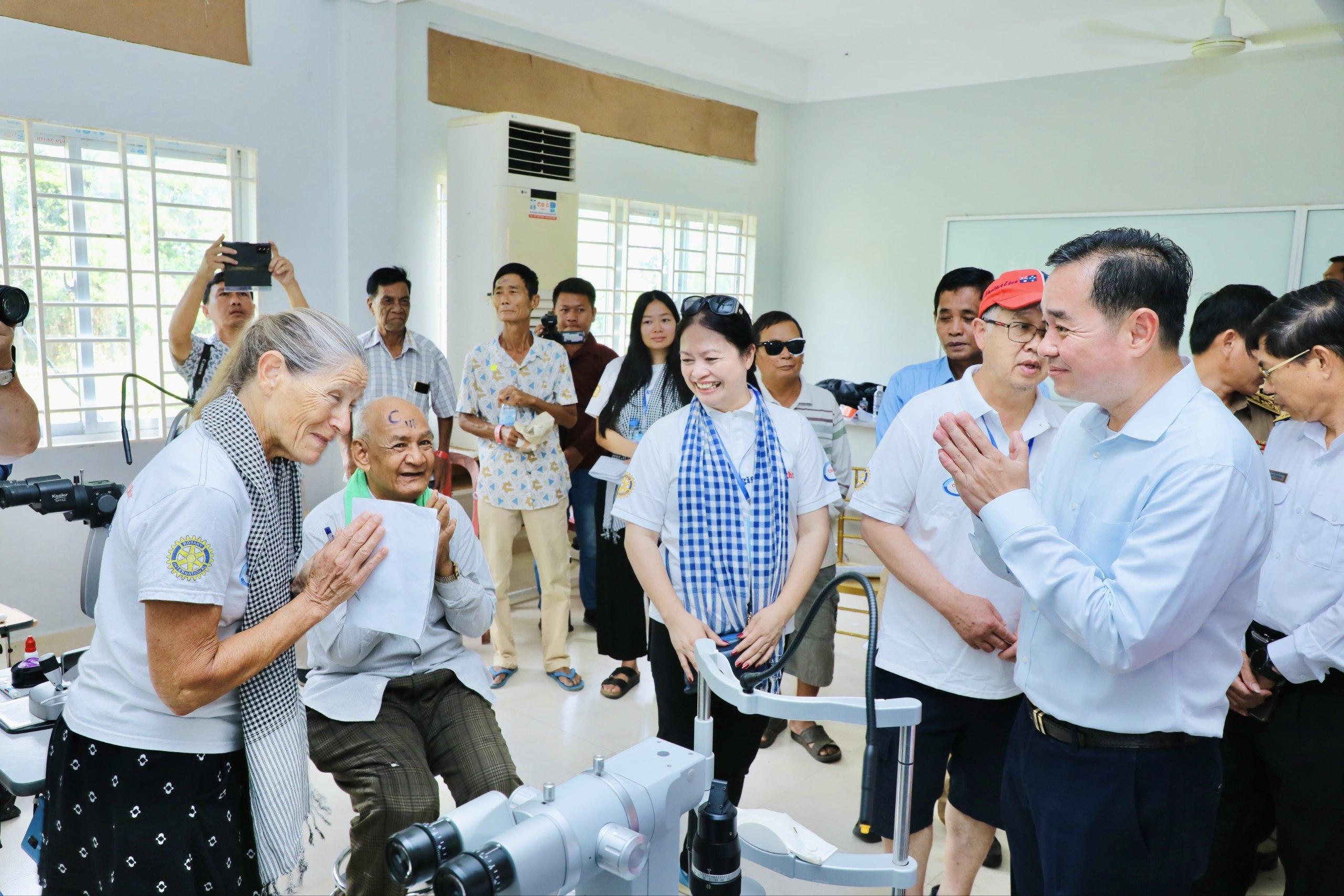 (កំពង់ចាម)៖ឯកឧត្តម អ៊ុន ចាន់ដា អភិបាល នៃគណៈអភិបាលខេត្តកំពង់ចាម បានថ្លែងអំណរគុណ ចំពោះក្រុមគ្រូពេទ្យជំនាញស្ម័គ្រចិត្តមកពីប្រទេសអូស្ត្រាលី របស់អង្គការ Cambodia Vision ដែលបានលះបង់ពេលវេលាចុះពិនិត្យព្យាបាលជម្ងឺភ្នែកឡើងបាយ ដុះកន្ទុយថ្លែន និងពិនិត្យជម្ងឺ គ ថ្លង់ ដោយឥតគិតថ្លៃ ចាប់ពីថ្ងៃទី១៩ ដល់ថ្ងៃទី២៤ ខែតុលា ឆ្នាំ២០២៥ នៅមជ្ឈមណ្ឌល គរុកោសល្យភូមិភាគខេត្តកំពង់ចាម ស្ថិតក្នុងភូមិទី៦ សង្កាត់វាលវង់ ក្រុងកំពង់ចាម (ជិត វិមានឯករាជ្យ) ។