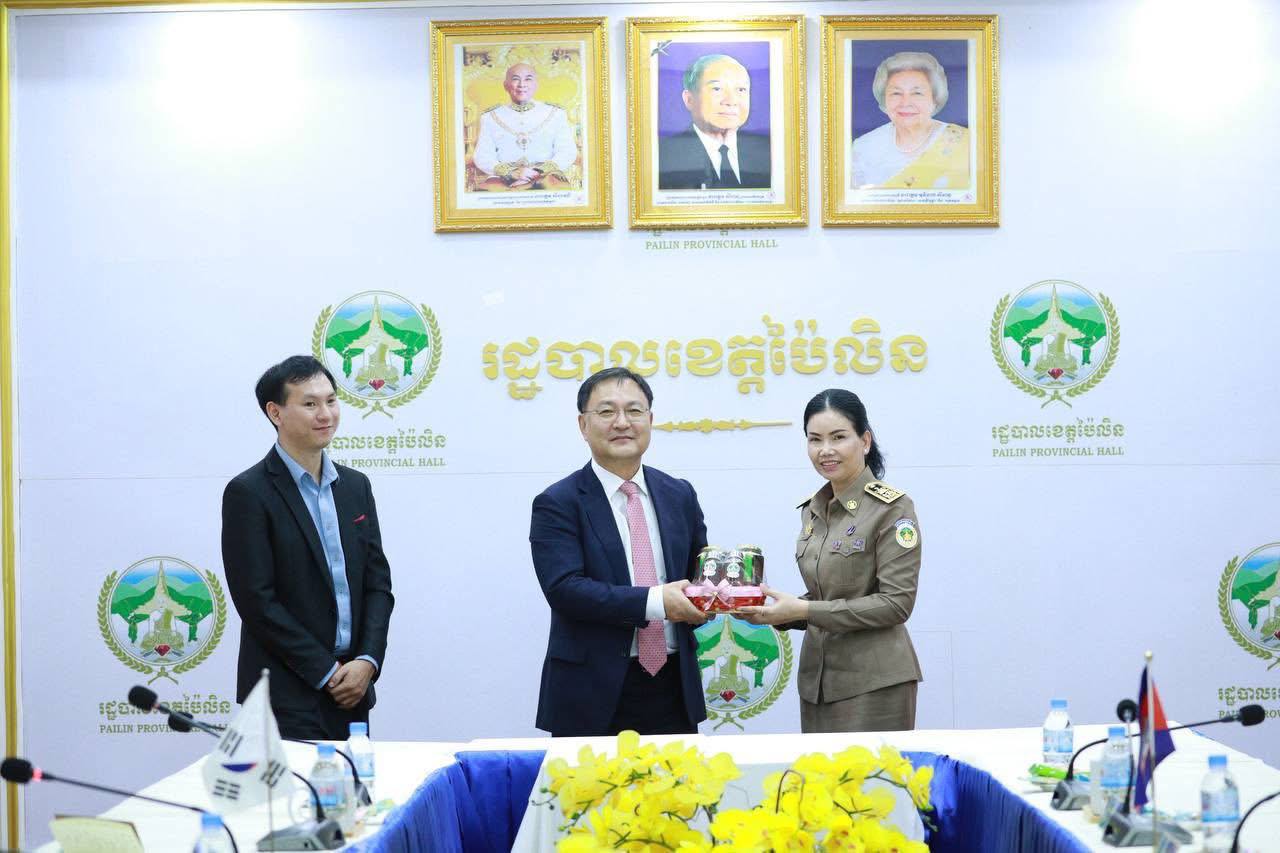 ខេត្តប៉ៃលិន៖ លោកជំទាវបណ្ឌិត បាន ស្រីមុំ អភិបាលខេត្តប៉ៃលិន បានទទួលស្វាគមន៍ឯកឧត្តម KIM SUNGTAI អគ្គកុងស៊ុល នៃស្ថានកុងស៊ុលសាធារណរដ្ឋកូរ៉េ ប្រចាំខេត្តសៀមរាប ក្នុងដំណើរទស្សនកិច្ច សិក្សាអំពីស្ថានភាពទូទៅក្នុងខេត្តប៉ៃលិន ក្នុងគោលដៅពង្រឹងពង្រីក កិច្ចសហប្រតិបត្តិការ លើសក្តានុពលវិស័យកសិកម្ម និងទេសចរណ៍បរិស្ថានធម្មជាតិ។