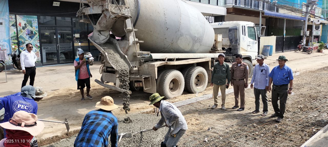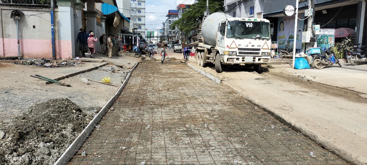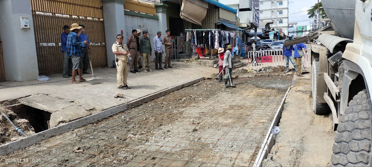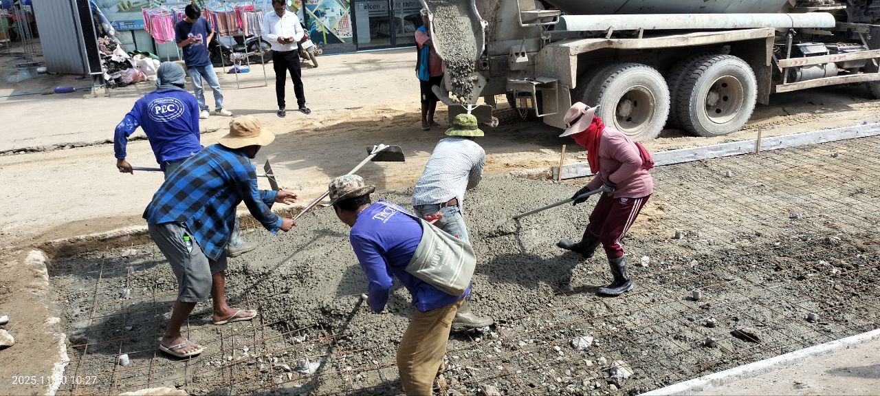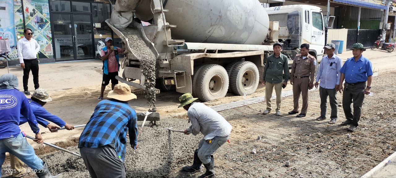 ខេត្តបន្ទាយមានជ័យ៖ដោយមានការណែនាំចង្អុលបង្ហាញពីលោក គាត ហ៊ុល អភិបាលនៃគណៈអភិបាលក្រុងប៉ោយប៉ែត នាថ្ងៃទី១០ ខែវិច្ឆិការ ឆ្នាំ២០២៥ លោក វ៉ា ជឹមណារ៉េត ចៅសង្កាត់អូរជ្រៅ លោក តាំង លីហេង ក្រុមប្រឹក្សាសង្កាត់ និងលោក យ៉ុត ស៊ីយ៉ុន អនុប្រធានការិយាល័យសាធារណៈការ ដឹកជញ្ជូន អនាម័យ បរិស្ថាន និងសណ្តាប់ធ្នាប់សាធារណៈ បានដឹកនាំក្រុមការងារចុះធ្វើការជួសជុលចាក់បេតុងផ្លូវកែលម្អឡើងវិញ ដែលរងការខូចខាតយ៉ាដំណំក្នុងអំឡុងរដូវវស្សាកន្លងមកនេះ ដែលមានប្រវែង ២៥ម៉ែត្រទទឹង ៤ម៉ែត្រ ចាប់ពីចំណុចអេផ្លាស ឆ្ពោះទៅសាច់អាំងកំពង់ចាម ស្ថិតនៅក្នុងចន្លោះភូមិសាមគ្គីមានជ័យ និងភូមិក្បាលស្ពាន១ សង្កាត់អូរជ្រៅ ក្រុងប៉ោយប៉ែត ដែលជាផ្លូវអាទិភាពធំជាងគេ ។