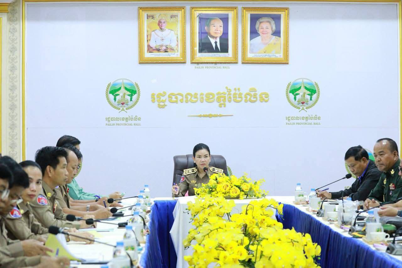ប៉ៃលិន៖លោកជំទាវបណ្ឌិត បាន ស្រីមុំ អភិបាល នៃគណៈអភិបាលខេត្តប៉ៃលិន និងជាប្រធានគណៈបញ្ជាការឯកភាពខេត្ត នាថ្ងៃទី១៣ ខែវិច្ឆិកា ឆ្នាំ២០២៥ បានដឹកនាំកិច្ចប្រជុំពិសេស ដើម្បីពិនិត្យមើលវឌ្ឍនភាពការងារអង្គភាពជួរមុខ នៅតាមបន្ទាត់ព្រំដែនកម្ពុជា–ថៃ និងពង្រឹងប្រសិទ្ធិភាពការងារ ក្នុងការបង្ក្រាប និងទប់ស្កាត់បទល្មើសខុសច្បាប់នានា, ការថែរក្សាសន្តិសុខសណ្តាប់ធ្នាប់សាធារណៈ និងការអនុវត្តន៍គោលនយោបាយភូមិឃុំមានសុវត្ថិភាព ជូនដល់ប្រជាពលរដ្ឋ ប្រកបដោយការទទួលខុសត្រូវខ្ពស់ ។