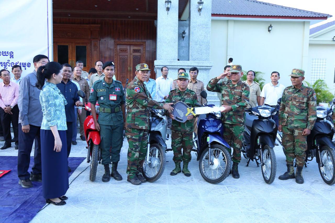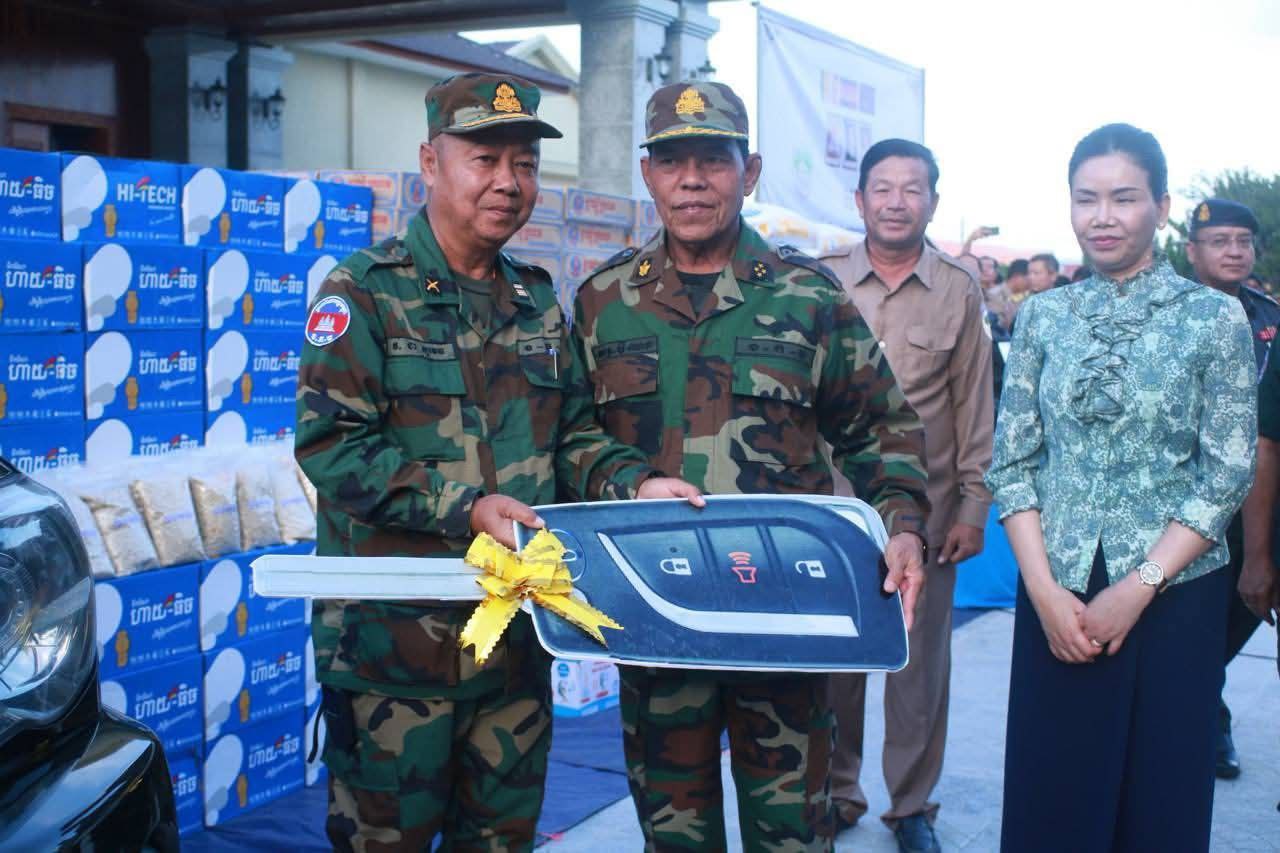 ប៉ៃលិន៖ឯកឧត្តម អ៊ី ឈាន ទេសរដ្ឋមន្ត្រីទទួលបន្ទុកបេសកកម្មពិសេស និងជាប្រធានក្រុមការងាររាជរដ្ឋាភិបាលចុះមូលដ្ឋានខេត្តប៉ៃលិន អមដំណើរដោយ លោកជំទាវបណ្ឌិត បាន ស្រីមុំ អភិបាល នៃគណៈអភិបាលខេត្តប៉ៃលិន ព្រមទាំងក្រុមការងារ នារសៀលថ្ងៃទី១៤ ខែវិច្ឆិកា ឆ្នាំ២០២៥ បានអញ្ជើញសំណេះសំណាលសួរសុខទុក្ខ លើកទឹកចិត្ត និងបានផ្តល់អំណោយ រថយន្ត ០៣គ្រឿង ទោចក្រយានយន្ត ២១គ្រឿង រួមទាំងសម្ភារៈបរិក្ខា ស្បៀងអាហារ និងថរិកា ជូនដល់បណ្តាអង្គភាពកងកំលាំងជួរមុខ ដែលកំពុងឈរជើងការពារបូរណភាពទឹកដី នៅតាមបន្ទាត់ព្រំដែន និង កម្លាំងចល័ត អន្តរាគមន៍ការពារសន្តិសុខសណ្តាប់ធ្នាប់តាមមូលដ្ឋាន គ្រប់អង្គភាព នៃកងកម្លាំងចម្រុះគណៈបញ្ជាការខេត្តប៉ៃលិន។