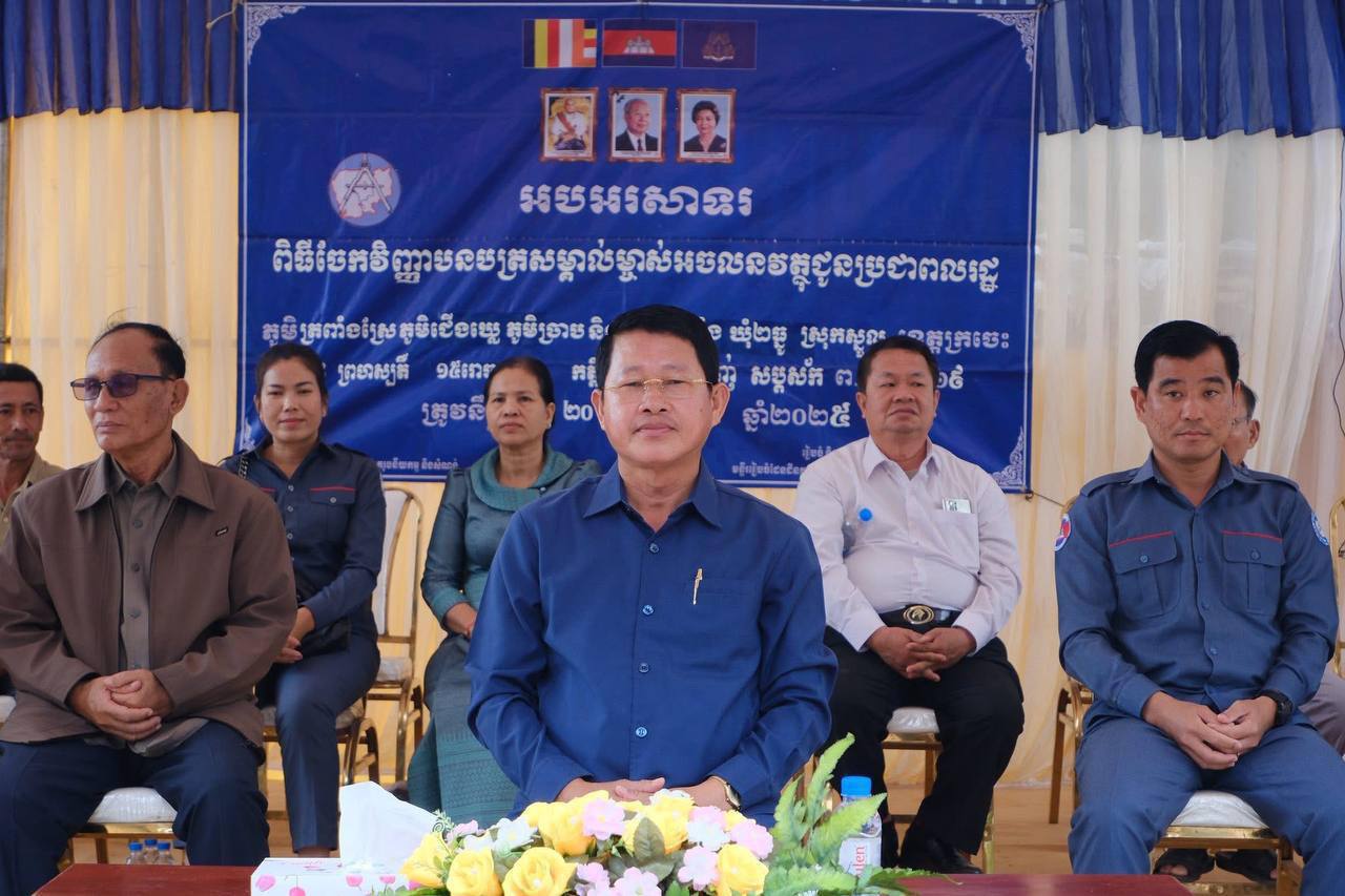 នាថ្ងៃទី២០ ខែវិច្ឆិកា ឆ្នាំ២០២៥មន្ទីររៀបចំដែនដី នគរូបនីយកម្ម សំណង់ និងសុរិយោដីខេត្តក្រចេះ បានរៀបចំពិធីប្រគល់វិញ្ញាបនបត្រអចលនវត្ថុ ចំនួន ២ ៥០៧ បណ្ណ ក្រោមអធិបតីភាពលោកអភិបាលរងខេត្ត ហេង សុថា តំណាងឯកឧត្តមអភិបាលខេត្តក្រចេះ ជូនដល់ប្រជាពលរដ្ឋចំនួន៤ភូមិ៖ ភូមិត្រពាំងស្រែ ភូមិជើងឃ្លេ ភូមិច្រាប និងភូមិជ្រៃម៉ាំង ឃុំ ២ធ្នូ ស្រុកស្នួល។ ពិធីនេះមានការចូលរួមពីថ្នាក់ដឹកនាំមន្ទីរ អង្គភាពជុំវិញខេត្ត ក្រុមប្រឹក្សាស្រុក អភិបាលស្រុក ក្រុមប្រឹក្សាឃុំ–ភូមិ និងប្រជាពលផងដែរ។