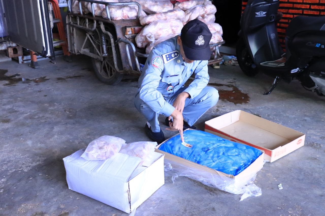 បន្ទាយមានជ័យ៖ លោក ឃ្លោក នួយ អភិបាលរង ខេត្ត តំណាងឲ្យឯកឧត្តម អ៊ុំ រាត្រី អភិបាល នៃគណៈអភិបាលខេត្តបន្ទាយមានជ័យ បានដឹកនាំក្រុមការងារចម្រុះ និងអាជ្ញាធរមូលដ្ឋាន ចុះពិនិត្យមើលឃ្លាំង ២កន្លែងដែលបានស្តុបទុកសាច់បង្កក ស្ថិតនៅភូមិបាលិលេយ្យ២ និងភូមិបាលិលេយ្យ១ សង្កាត់ប៉ោយប៉ែត ក្រុងប៉ោយប៉ែត ខេត្តបន្ទាយមានជ័យ នាថ្ងៃទី២៦ ខែវិច្ឆិកា ឆ្នាំ២០២៥ ដោយបានដកហូតយកសាច់បង្កកចំនួន ៦ប្រភេទដូចជា ទាមូល ចុងស្លាបមាន់ គល់ស្លាប់មាន់ (ទាំងមូល) ស្លាប់កណ្ដាល ភ្លៅមាន់ និងប្រហិតសាច់ជ្រូក យកទៅពិសោធន៍សំណាក់រកសារធាតុគីមី ដើម្បីឲ្យដឹងថា សាច់នោះមានគុណភាពល្អទៅតាមស្តង់ដាបច្ចេកទេស ឬមិនមានគុណភាព។