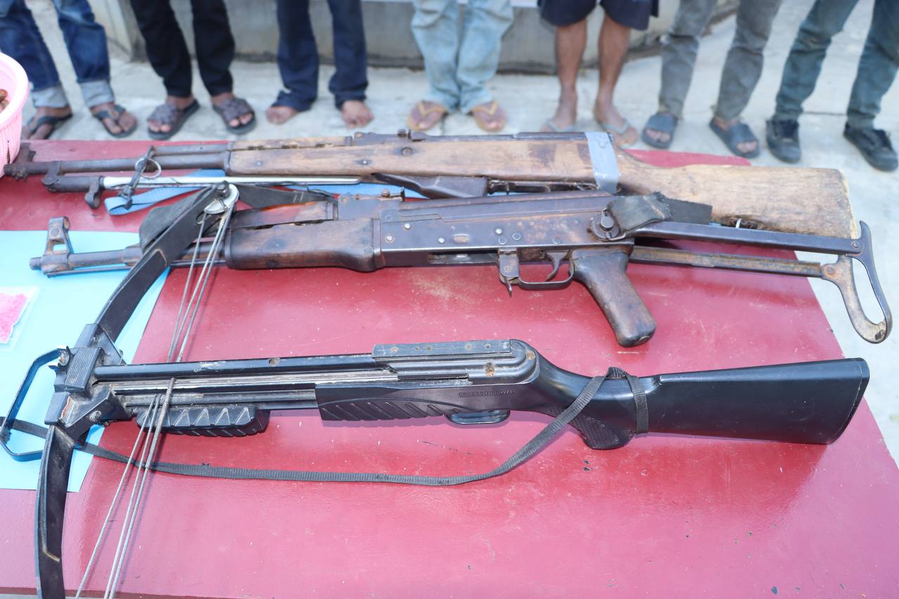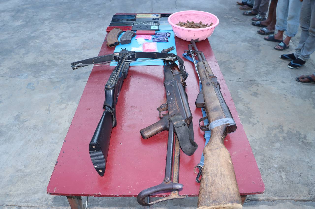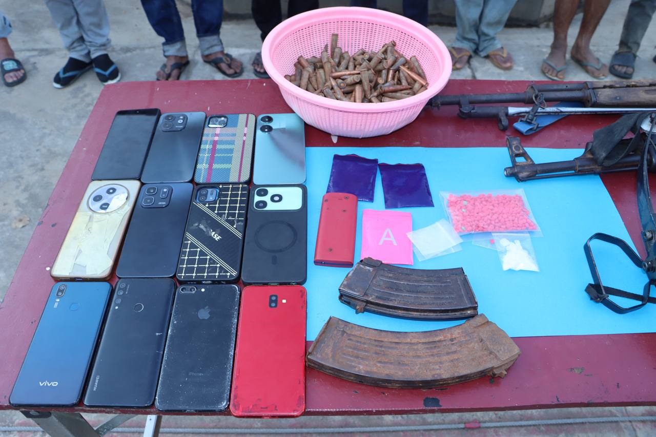 (បន្ទាយមានជ័យ)៖កម្លាំងមូលដ្ឋានកងរាជអាវុធហត្ថស្រុកម៉ាឡៃ ដឹកនាំដោយលោកវរសេនីយ៍ត្រី តាំង សុខហេង មេបញ្ជាការមូលដ្ឋានកងរាជអាវុធហត្ថស្រុកម៉ាឡៃ សហការជាមួយកម្លាំងកងពលតូចថ្មើរជើងលេខ៥១ បានចុះប្រតិបត្តិការបង្រ្កាបករណីជួញដូរ រក្សាទុក និងប្រើប្រាស់ដោយខុសច្បាប់នូវសារធាតុញៀន, កាន់កាប់ ឬដឹកជញ្ជូនអាវុធដោយគ្មានការអនុញ្ញាត, រួមភេទជាមួយអនីតិជនក្រោមអាយុ១៥ឆ្នាំ នៅវេលាម៉ោង១៧និង០៣នាទី ថ្ងៃទី២៩ ខែវិច្ឆិកា ឆ្នាំ២០២៥ នៅចំណុចក្នុងចំការ ស្ថិតក្នុងភូមិអូរសំព័រ ឃុំអូរសំព័រ ស្រុកម៉ាឡៃ ខេត្តបន្ទាយមានជ័យ ដោយឃាត់ខ្លួនបានជនសង្ស័យជាបន្តបន្ទាប់សរុប ១៤នាក់ ១–ឈ្មោះ ជិន វ៉ាន់ ភេទប្រុស អាយុ ៤៥ឆ្នាំ(ជួញដូរ សម្រួលឲ្យប្រើប្រាស់ និងប្រើប្រាស់, កាន់កាប់អាវុធ, រួមភេទជាមួយអនីតិជន), ២-ឈ្មោះ នី សុខគី ភេទប្រុស អាយុ ២៨ឆ្នាំ(រក្សាទុក និងប្រើប្រាស់), ៣–ឈ្មោះ ភឹម សុវៀន ភេទប្រុស អាយុ ៣១ឆ្នាំ(ប្រើប្រាស់), ៤–ឈ្មោះ យ៉ុន ធឿន ភេទប្រុស អាយុ ៤០ឆ្នាំ(ប្រើប្រាស់), ៥–ឈ្មោះ ចាន់ សុខា ភេទប្រុស អាយុ ៤១ឆ្នាំ(ប្រើប្រាស់), ៦–ឈ្មោះ ហោ ទិត្យារិទ្ធ ហៅ សណ្តែ្កក ភេទប្រុស អាយុ ២៩ឆ្នាំ(ប្រើប្រាស់), ៧–ឈ្មោះ យឿត តូច ភេទប្រុស អាយុ ២៥ឆ្នាំ(ប្រើប្រាស់), ៨–ឈ្មោះ ឡុង គឹមង៉ា ភេទប្រុស អាយុ ៣៤ឆ្នាំ(ប្រើប្រាស់), ៩–ឈ្មោះ ស ច្រឹង ភេទប្រុស អាយុ ៥១ឆ្នាំ(ប្រើប្រាស់), ១០–ឈ្មោះ មុត ដឿន ភេទប្រុស អាយុ ៤៦ឆ្នាំ(ប្រើប្រាស់), ១១–ឈ្មោះ យ៉ាន់ ចាន់រី ហៅ គោ ភេទប្រុស អាយុ ៣១ឆ្នាំ(ប្រើប្រាស់), ១២–ឈ្មោះ លឹម សុធា ភេទប្រុស អាយុ ៤៣ឆ្នាំ(ប្រើប្រាស់), ១៣–ឈ្មោះ ឈិង នាង ហៅ សា ភេទស្រី អាយុ ២៣ឆ្នាំ(ប្រើប្រាស់), ១៤–ឈ្មោះ ដាំ ចំណាន ភេទស្រី អាយុ ១៤ឆ្នាំ(ប្រើប្រាស់)។ វត្ថុតាងដែលដកហូតបានរួមមាន គ្រឿងញៀនប្រភេទថ្នាំគ្រាប់រាងមូលពណ៌ក្រហមក្បឿង (WY) ចំនួន០៥ថង់កិប ស្មើនឹង ៦១៦គ្រាប់ ទម្ងន់ ៦២,៦៤ក្រាម, គ្រឿងញៀនប្រភេទម្ស៉ៅក្រាមពណ៌សថ្លា (ICE) ចំនួន ០៣កូនថង់កិប ទម្ងន់ ៦,៧៤ក្រាម, កាំភ្លើងវែង ចំនួន ០២ដើម (ប្រភេទAK-47 ស្វ័យបត់ ចំនួន ០១ដើម, ប្រភេទCKC ចំនួន ០១ដើម), ស្នាបាញ់គ្រាប់ឃ្លីដែក ចំនួន ០១ដើម, បង់កាំភ្លើងចំនួន០២, គ្រាប់កាំភ្លើងប្រភេទAK ចំនួន ១៤៤គ្រាប់, ដាវស៊ាំម៉ូរ៉ៃ ចំនួន ០១ដើម, ទូរស័ព្ទ ចំនួន ១៤គ្រឿង រួមនឹងថង់សម្រាប់ច្រកគ្រឿងញៀនមួយចំនួន ហើយនាំទៅកាន់មូលដ្ឋានកងរាជអាវុធហត្ថស្រុក ដើម្បីសួរនាំតាមនីតិវិធី។
