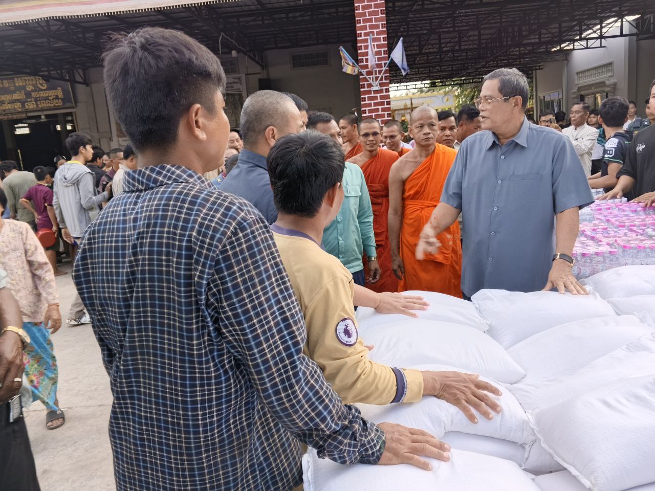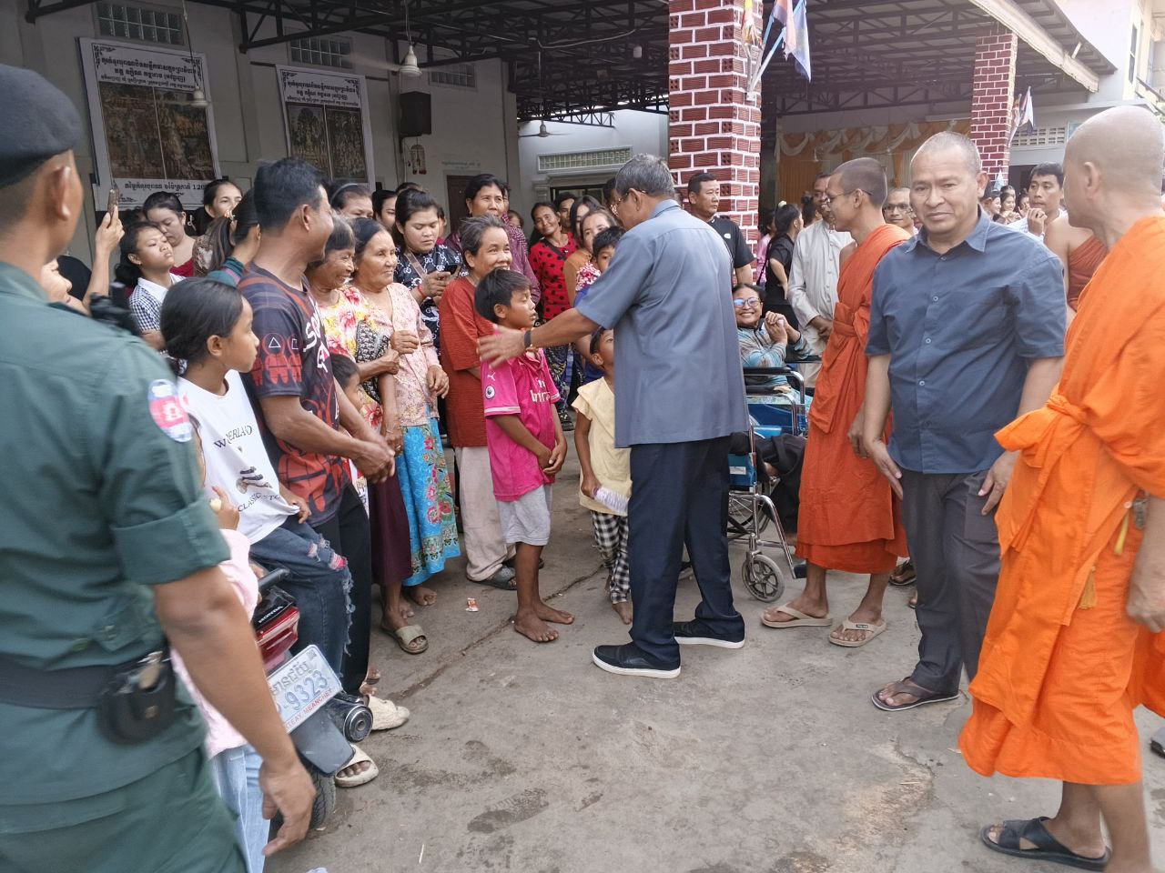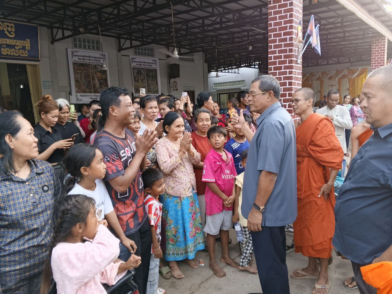 (បន្ទាយមានជ័យ) ឯកឧត្ដម កែ គឹមយ៉ាន ឧត្តមប្រឹក្សាផ្ទាល់ព្រះមហាក្សត្រ និងជាអ្នកតំណាងរាស្ត្រមណ្ឌលខេត្តបន្ទាយមានជ័យ អូនដំណើរដោយឯកឧត្តម លោកជំទាវ សមាជិកសភាមណ្ឌលខេត្តបន្ទាយមានជ័យ បានអញ្ជើញចុះសួរសុខទុក្ខបងប្អូនប្រជាភាសឹក ស្នាក់នៅបណ្ដោះអាសន្នតាមបណ្ដាវត្តអារាមនានា ក្នុងស្រុកមង្គលបូរី វាចុងសប្តាហ៍នេះ។