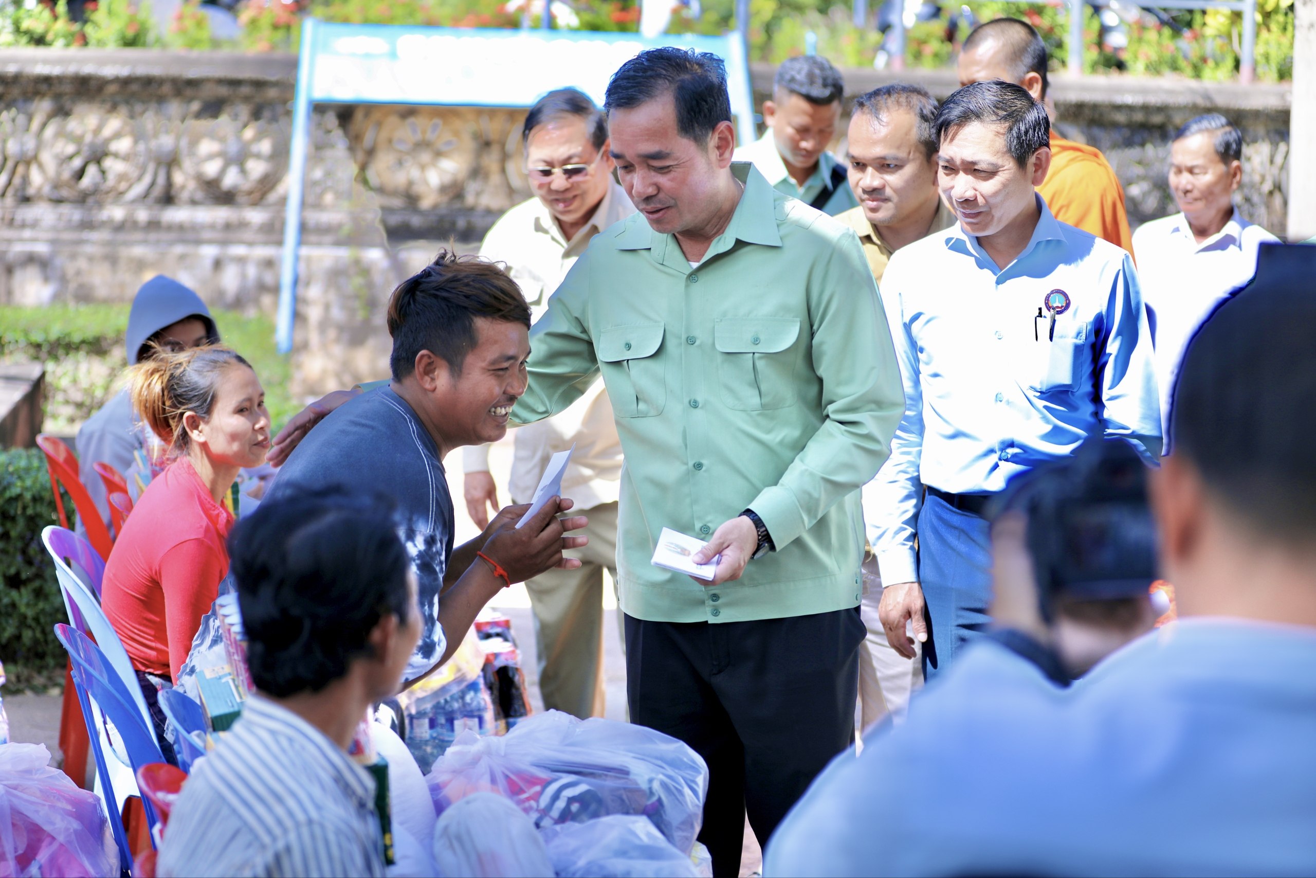 ឯកឧត្តមអភិបាលខេត្ត លើកឡើងបន្តថា គុណបំណាច់មិនអាចបំភ្លេចបាន ទី២ ការខិតខំ ប្រឹងប្រែង ទាំងយប់ ទាំងថ្ងៃ គ្មានពេលថ្ងៃសម្រាក គឺការលះបង់ របស់សម្តេចអគ្គមហាសេនាបតីតេជោ ហ៊ុន សែន ប្រធានព្រឹទ្ធសភាកម្ពុជា និងជាប្រធានឧត្តមក្រុមប្រឹក្សាផ្ទាល់ព្រះមហាក្សត្រ និងសម្តេចធិបតី ហ៊ុន ម៉ាណែត នាយករដ្ឋមន្ត្រីនៃព្រះរាជាណាចក្រកម្ពុជា ដែលសម្តេច ទាំងពីរ បានខិតខំ គិតគូរ សព្វបែបយ៉ាង ឈរជើងដ៏រឹងមាំជាមួយ វីរកងទ័ពរបស់យើង តស៊ូប្រយុទ្ធជាមួយចោរឈ្លានពានសៀមមិនឲ្យចូលឈ្លានពានមកលើដីខ្មែរបានឡើយ ហើយដៃខាងទៀត បានណែនាំដល់រដ្ឋបាល នៅតាមរាជធានី ខេត្ត យកចិត្តទុកដាក់ មើលថែ ដល់ជនភៀសសឹក រៀបចំឲ្យមានកន្លែងស្នាក់នៅបណ្តោះអាសន្ន មានអាហារ ហូបចុក គ្រប់ គ្រាន់ ឲ្យអាជ្ញាធររៀបចំកន្លែងរៀនសូត្ររបស់កូន ចៅ របស់ជនភៀសសឹក បន្តការរៀន សូត្រ តាមសាលារាជធានី ខេត្ត ជាបណ្តោះ អាសន្ន។