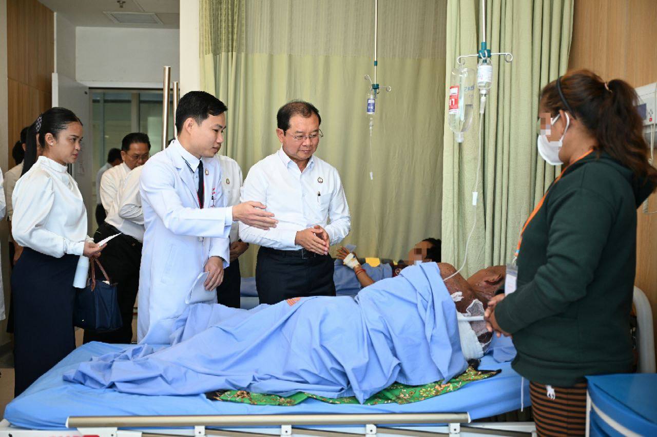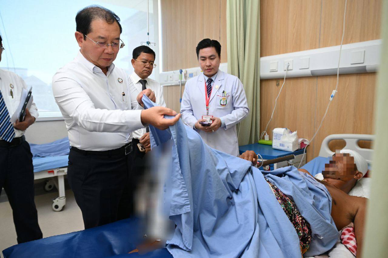 រាជធានីភ្នំពេញ៖ ឯកឧត្តមសាស្រ្តាចារ្យ ឈាង រ៉ា រដ្ឋមន្រ្តីក្រសួងសុខាភិបាល និងថ្នាក់ដឹកនាំក្រសួងសុខាភិបាល នាព្រឹកថ្ងៃទី២៤ ខែធ្នូ ឆ្នាំ២០២៥ អញ្ជើញចុះសួរសុខទុក្ខវីរកងទ័ព ដែលកំពុងសម្រាកព្យាបាល នៅមន្ទីរពេទ្យមិត្តភាពកម្ពុជា–ចិន ព្រះកុសុមៈ។