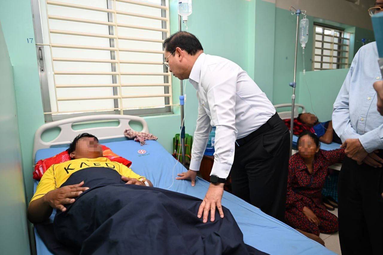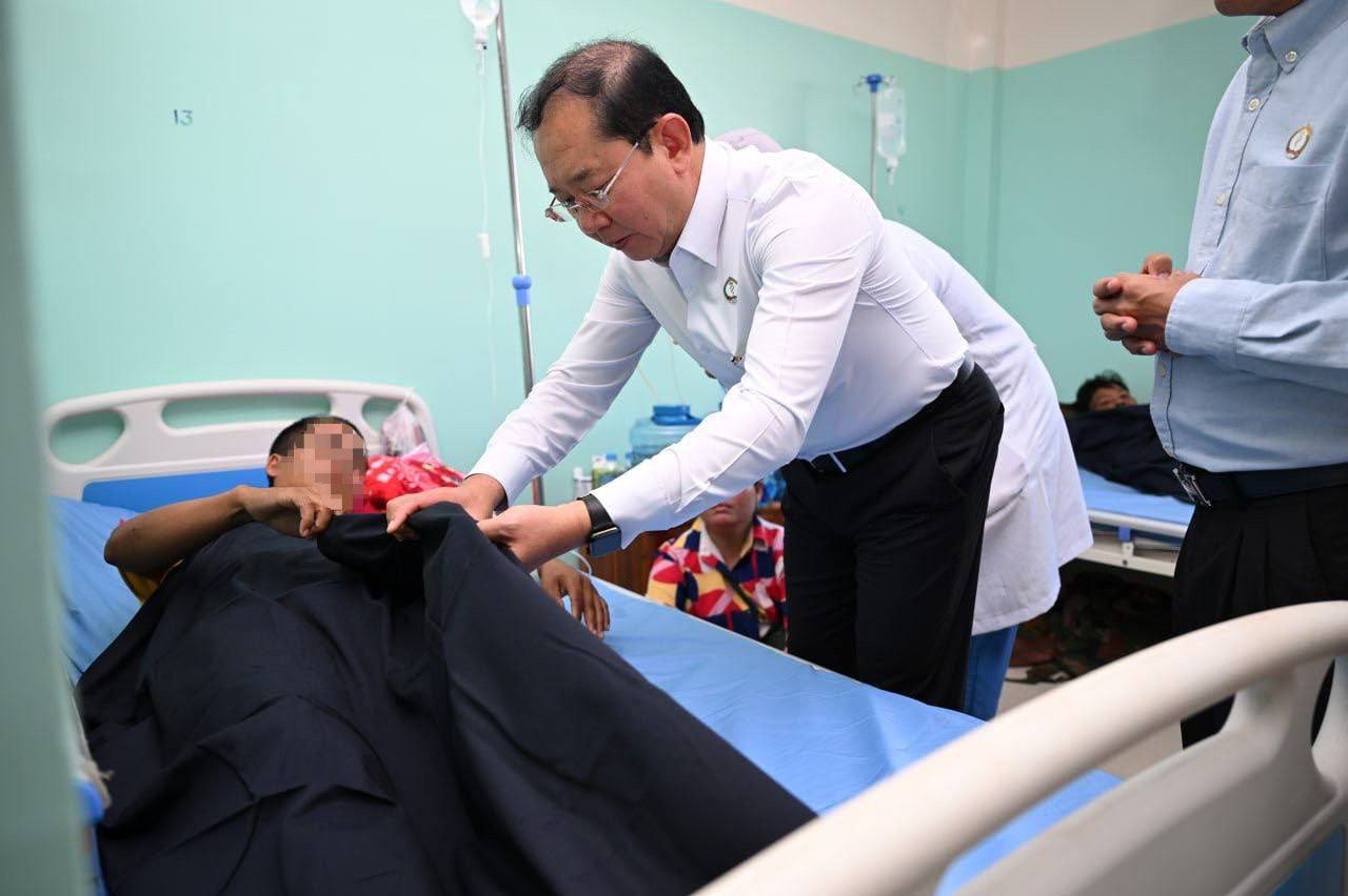 ខេត្តព្រះវិហារ៖ ឯកឧត្តមសាស្រ្តាចារ្យ ឈាង រ៉ា រដ្ឋមន្ត្រីក្រសួងសុខាភិបាល និងប្រតិភូក្រសួងសុខាភិបាល នារសៀលថ្ងៃទី២៩ ខែធ្នូ ឆ្នាំ២០២៥ បានអញ្ជើញចុះសួរសុខទុក្ខ បងប្អូនវីរកងទ័ព វីរនគរបាល ដែលកំពុងសម្រាកព្យាបាល នៅមន្ទីរពេទ្យ ១៦មករា ខេត្តព្រះវិហារ។
