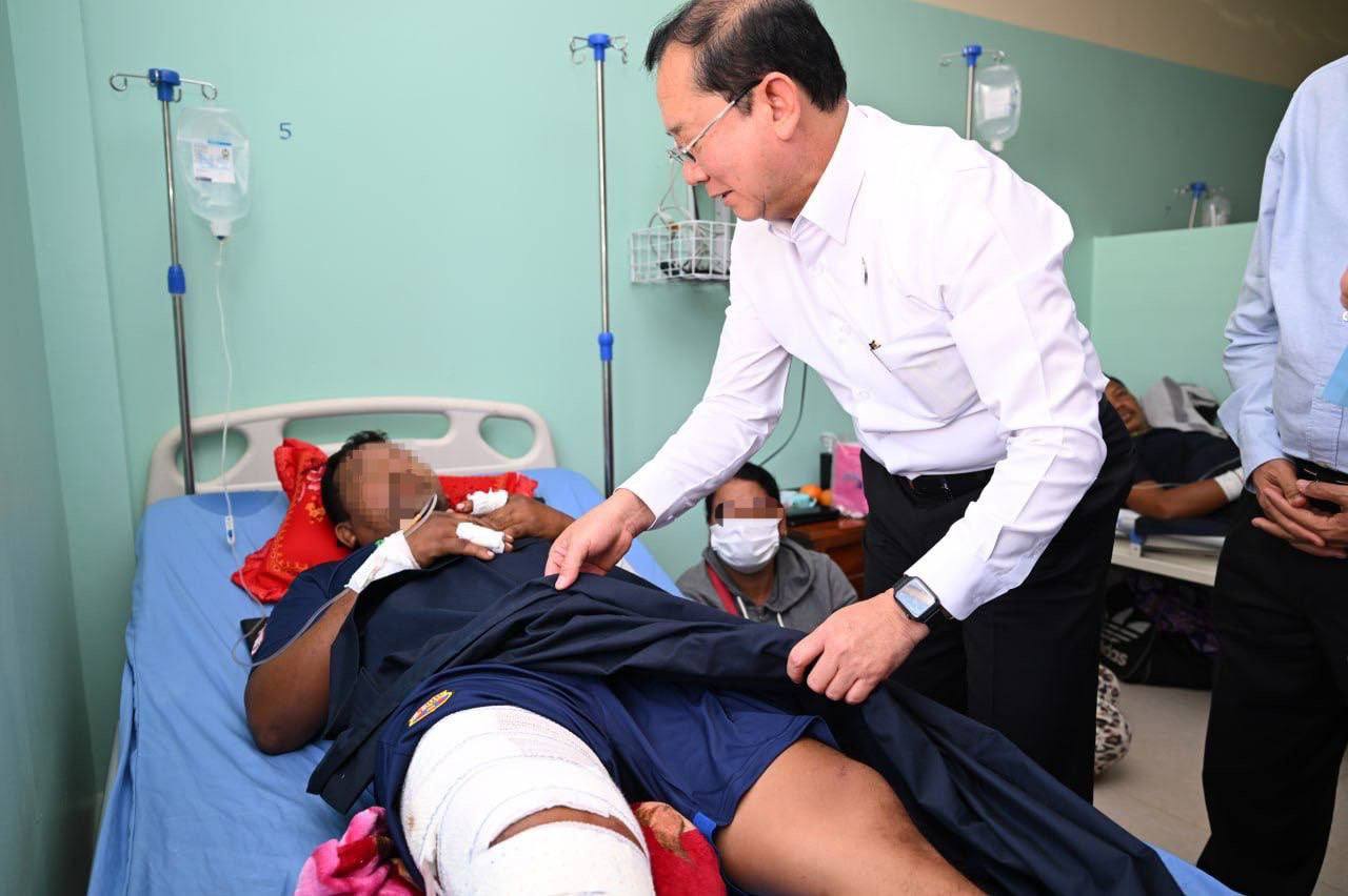 ទន្ទឹមនោះឯកឧត្តមសាស្រ្តាចារ្យរដ្ឋមន្រ្តី ក៏បានពាំនាំនូវពាក្យផ្តាំផ្ញើសួរសុខទុក្ខដោយក្តីបារម្ភ ស្រលាញ់រាប់អានដ៏ជ្រាលជ្រៅ និងខ្ពង់ខ្ពស់បំផុតរបស់ សម្ដេចអគ្គមហាសេនាបតីតេជោ ហ៊ុន សែន ប្រធានព្រឹទ្ធសភា និង សម្ដេចកិត្តិព្រឹទ្ធបណ្ឌិត ប៊ុន រ៉ានី ហ៊ុនសែន ប្រធានកាកបាទក្រហមកម្ពុជា ព្រមទាំង សម្ដេចមហាបវរធិបតី ហ៊ុន ម៉ាណែត នាយករដ្ឋមន្ត្រីនៃព្រះរាជាណាចក្រកម្ពុជា និងលោកជំទាវ និងសូមជូនពរដល់បងប្អូនវីរយុទ្ធជនទាំងអស់សូមឆាប់បានជាសះស្បើយ មានសុខភាពល្អប្រសើរឡើង ដើម្បីឆាប់បានវិលត្រឡប់ជួបជុំគ្រួសារវិញផងដែរ៕