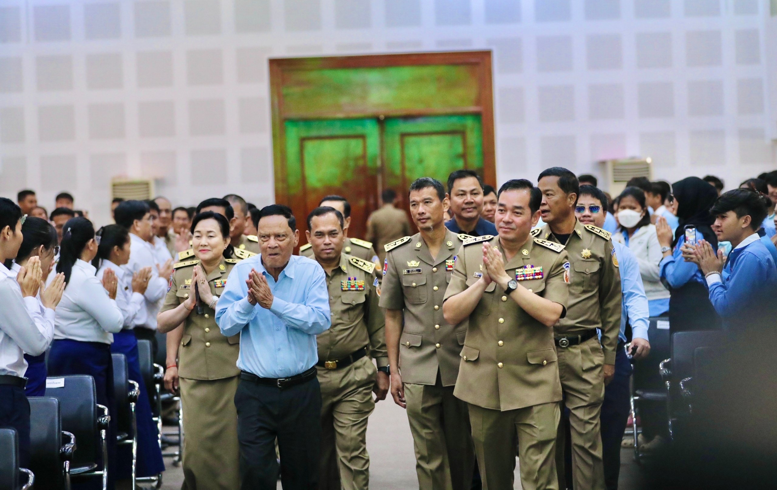 (កំពង់ចាម)៖ឯកឧត្តម អ៊ុន ចាន់ដា អភិបាល នៃគណៈអភិបាលខេត្តកំពង់ចាម និងឯកឧត្តម ខ្លូត ផន ប្រធានក្រុមប្រឹក្សាខេត្ត នៅព្រឹកថ្ងៃទី៣១ ខែធ្នូ ឆ្នាំ២០២៥ នេះ បានអញ្ជើញជួបសំណេះសំណាលជាមួយមន្ត្រីរាជការសាលាខេត្ត លោកគ្រូ អ្នកគ្រូ សិស្សានុសិស្ស និងយុវជន នាឱកាសចូលឆ្នាំសកល ២០២៦ នៅសាលសន្និសីទសាលាខេត្ត។