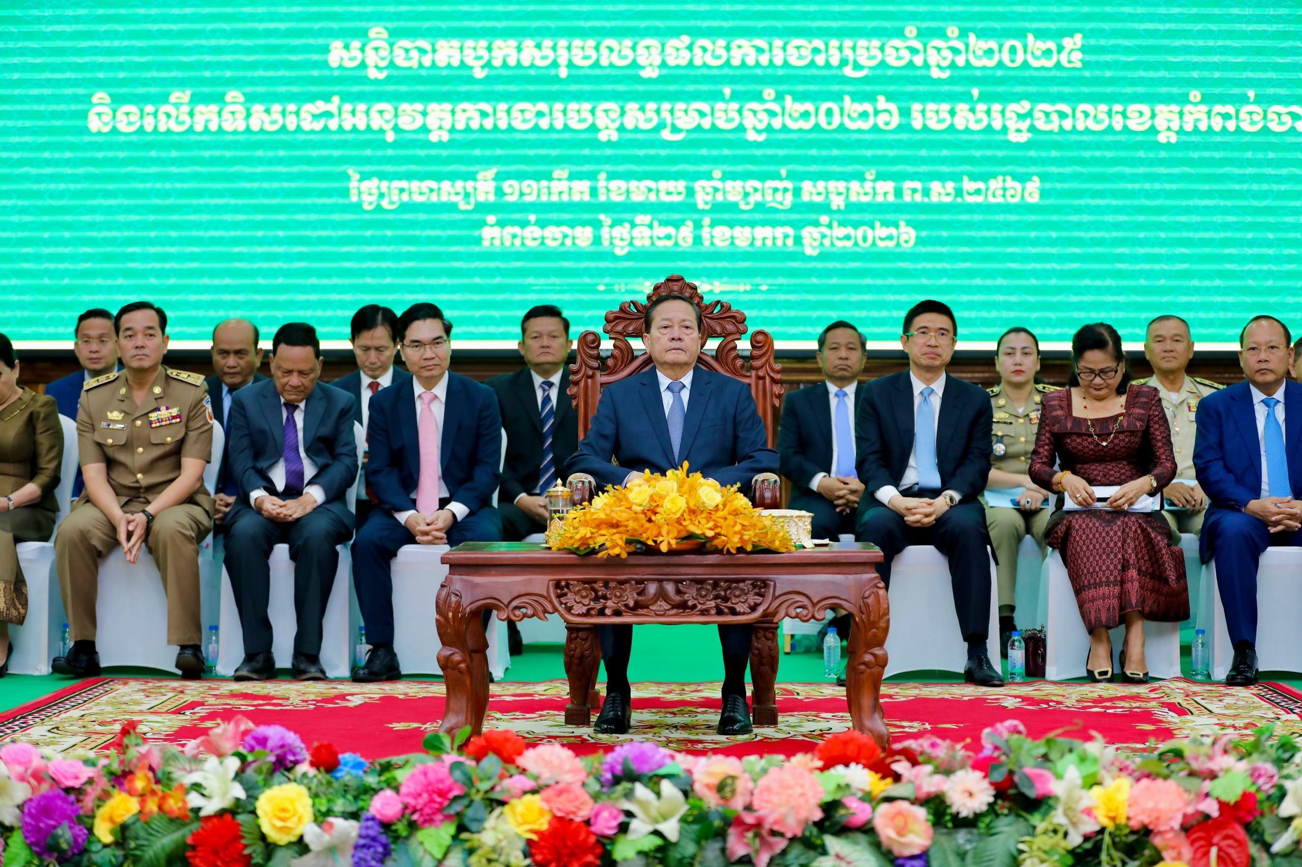 ខេត្តកំពង់ចាម៖នៅព្រឹកថ្ងៃទី២៩ ខែមករា ឆ្នាំ២០២៦ នេះ នៅសាសាខេត្តកំពង់ចាម បានរៀបចំពិធី អបអរសាទរ ពិធីបិទសន្និបាតបូកសរុបលទ្ធផលការងារប្រចាំឆ្នាំ២០២៥ និង លើកទិសដៅបន្តរបស់រដ្ឋបាលខេត្តកំពង់ចាម ឆ្នាំ២០២៦ ក្រោមអធិបតីភាពដ៏ខ្ពង់ខ្ពស់ ឯកឧត្តមសន្តិបណ្ឌិត នេត សាវឿន ឧបនាយករដ្ឋមន្ត្រី ទទួលបន្ទុកប្រធាន អាជ្ញាធរជាតិប្រយុទ្ធប្រឆាំងគ្រឿងញៀន និងជាប្រធានក្រុមការងាររាជរដ្ឋាភិបាល ចុះមូលដ្ឋានខេត្តកំពង់ចាម ឯកឧត្តម អ៊ុន ចាន់ដា អភិបាលនៃគណៈអភិបាលខេត្តកំពង់ចាម និង ឯកឧត្តម ខ្លូត ផន ប្រធានក្រុមប្រឹក្សាខេត្ត ។