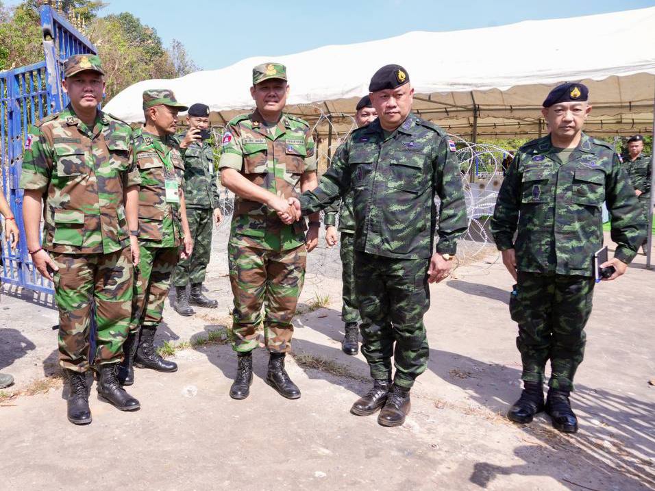 ខេត្តឧត្តរមានជ័យ៖កិច្ចប្រជុំក្រុមលេខាធិការដ្ឋាននៃគណៈកម្មាធិការព្រំដែនថ្នាក់យោធភូមិភាគកម្ពុជា-ថៃ (RBC) រវាងយោធភូមិភាគទី៤ ភាគីកម្ពុជា និងកងទ័ពភូមិភាគទី២ ភាគីថៃ នៅច្រកអន្តរជាតិជាំ–សាង៉ាំ ស្រុកអន្លង់វែង ខេត្តឧត្តរមានជ័យ នៅព្រឹកថ្ងៃទី២ ខែកុម្ភៈ ឆ្នាំ២០២៦ ក្រោមការសង្កេតការណ៍ពីក្រុមអ្នកសង្កេតការណ៍អាស៊ាន (AOT) របស់កម្ពុជា និងថៃ ដោយក្រុមលេខាធិការរបស់កម្ពុជាដឹកនាំដោយ ឧត្តមសេនីយ៍ត្រី និត ណារ៉ុង នាយសេនាធិការរង យោធភូមិភាគទី៤ និងក្រុមលេខាធិការរបស់ថៃដឹកនាំដោយ ឧត្តមសេនីយ៍ត្រី កាំផាក់ណាក វ៉ាផាន់ស៊ុ នាយសេនាធិការ កងទ័ពភូមិភាគទី២ មិនទាន់រកឃើញនូវចំណុចកណ្តាលរួមគ្នាមួយនៅឡើយ ដូច្នេះភាគីទាំងពីរបានឯកភាពគ្នាដកឃ្លាវិលត្រលប់ទៅទីបញ្ជាការរៀងខ្លួនវិញ ហើយបន្តផ្លាស់ប្តូរឯកសារ និងពិភាក្សាគ្នាឈានដល់ការឯកភាពគ្នានាពេលខាងមុខទើបមានការរៀបចំពិធីចុះហត្ថលេខា និងកិច្ចប្រជុំគណៈកម្មាធិការព្រំដែនថ្នាក់យោធភូមិភាគកម្ពុជា–ថៃ (RBC) រវាងយោធភូមិភាគទី៤ របស់កម្ពុជា និងកងទ័ពភូមិភាគទី២ របស់ថៃ ។ នេះបើយោងតាមសេចក្តីប្រកាសព័ត៌មានរបស់អ្នកនាំពាក្យក្រសួងការពារជាតិ នៃព្រះរាជាណាចក្រកម្ពុជាលោកជំទាវ ឧត្តមសេនីយ៍ឯក ម៉ាលី សុជាតា ។