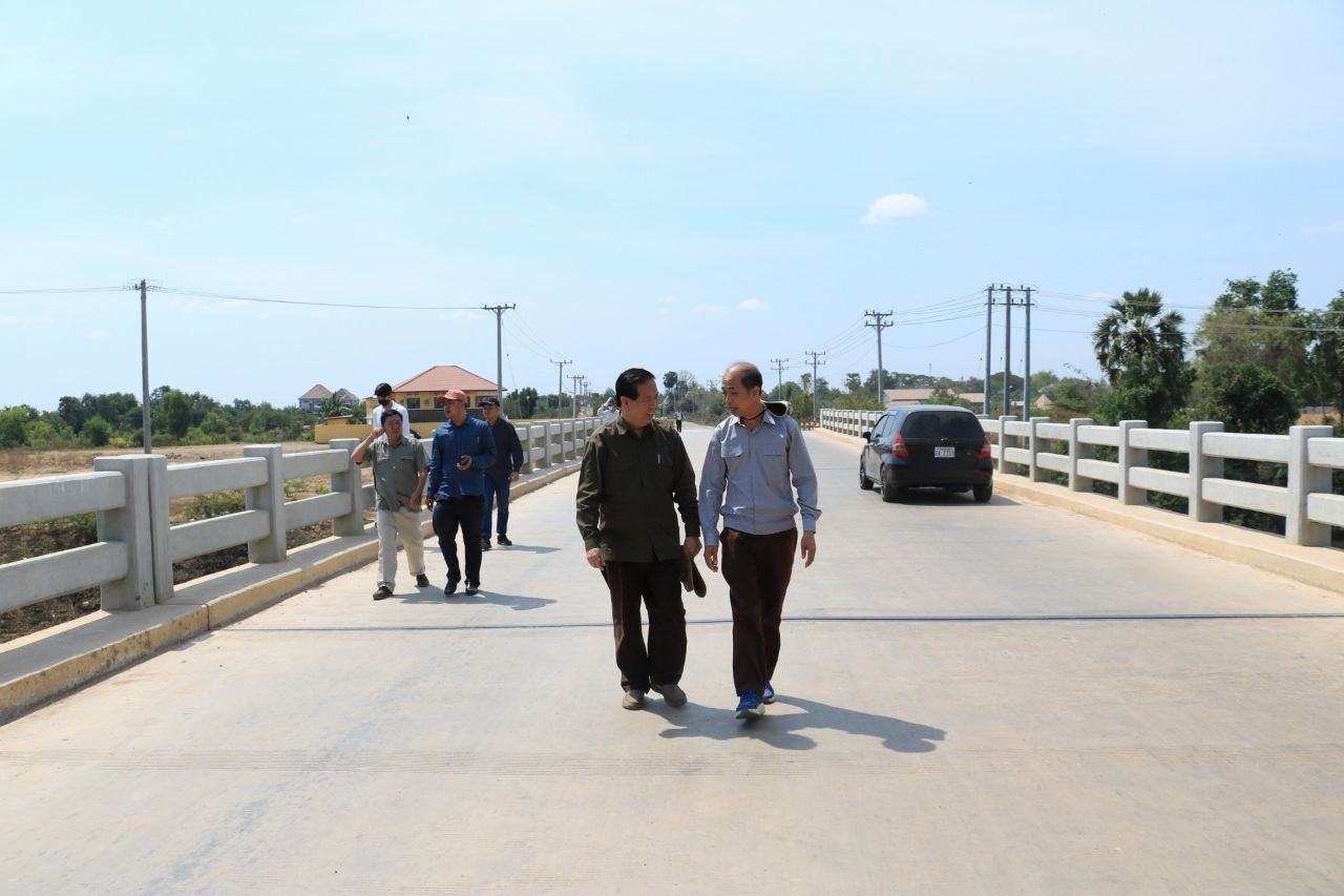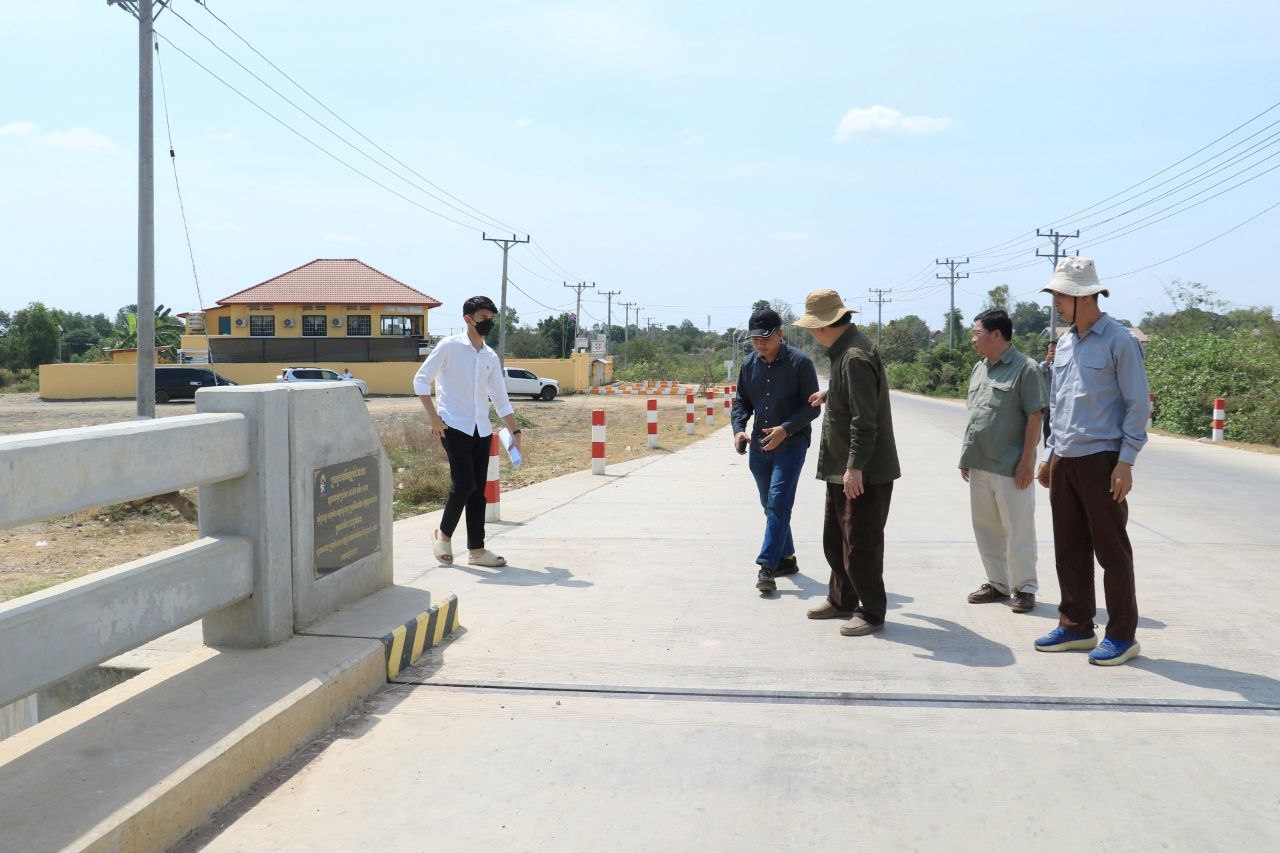 (បន្ទាយមានជ័យ)៖មន្រ្តីជាន់ខ្ពស់ក្រសួងអភិវឌ្ឍន៍ជនបទដែលមានឯកឧត្តមប៊ុន ច័ន្ទវណ្ណៈ រដ្ឋលេខាធិការក្រសួងអភិវឌ្ឍន៍ជនបទតំណាងដ៏ខ្ពង់ខ្ពស់ឯកឧត្តម ឆាយ ឫទ្ធិសែន រដ្ឋមន្ត្រីក្រសួងអភិវឌ្ឍន៍ជនបទ និងគណៈប្រតិភូអមដំណើរ នៅថ្ងៃទី១៨ ខែកុម្ភៈ ឆ្នាំ២០២៦ បានអញ្ជើញចុះត្រួតពិនិត្យ វាយតម្លៃបញ្ចប់សុពលភាពលើការងារស្ថាបនាស្ពានបេតុង ១ខ្សែ ប្រវែង១០៨ម ទទឹង១០ម និងស្ថាបនាផ្លូវក្រាលបេតុងសងខាងក្បាលស្ពានប្រវែងសរុប ២០០ម ទទឹង១០ម កម្រាស់០,២ម ស្ថិតនៅភូមិព្រះពន្លា ទៅភូមិចក សង្កាត់ព្រះពន្លា ក្នុងក្រុងសេរីសោភ័ណ ខេត្តបន្ទាយមានជ័យ (DRR-NC-2023-No.046) អនុវត្តដោយក្រុមហ៊ុន ហេង សម្បត្តិ អាហរ័ណ នីហរ័ណ ដឹកជញ្ជូន និងសំណង់ ប្រើប្រាស់ថវិកាជំពូក២១ ។