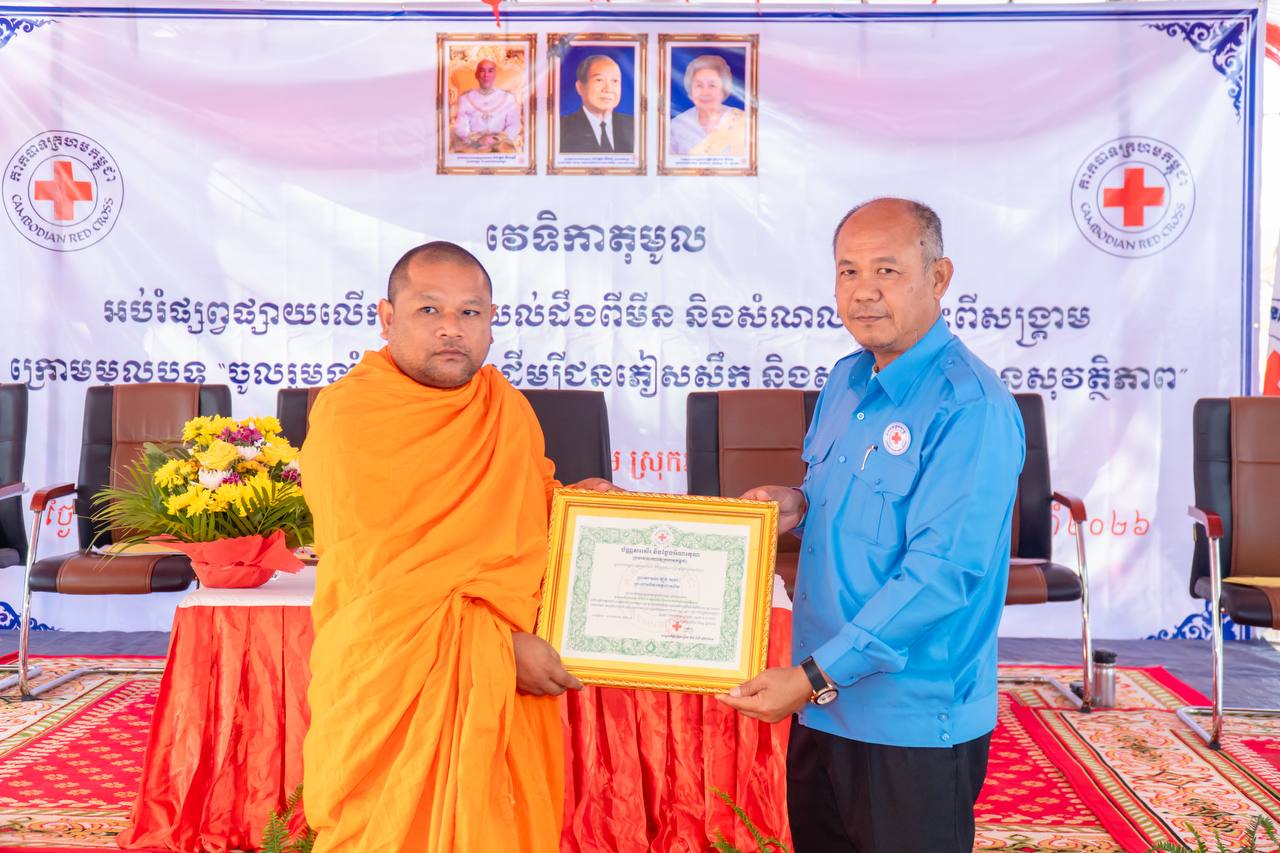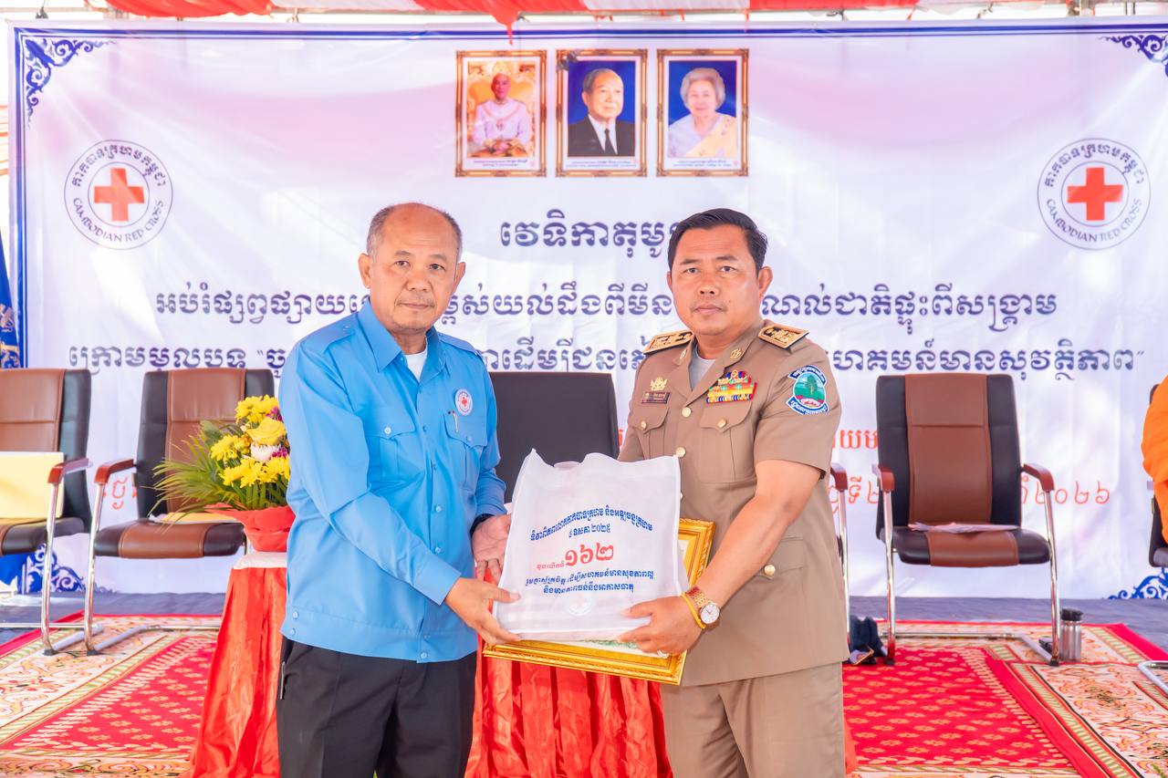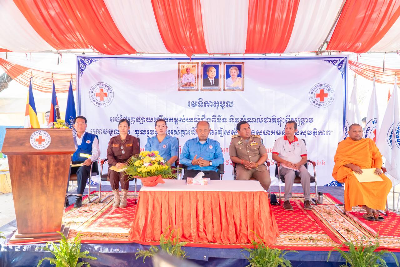 បន្ទាយមានជ័យ ៖ ឯកឧត្តម អ៊ុំ រាត្រី អភិបាល នៃគណៈអភិបាលខេត្ត និងជាប្រធានគណៈកម្មាធិការសាខាកាកបាទក្រហមកម្ពុជាខេត្តបន្ទាយមានជ័យ បានអញ្ជើញជាអធិបតីភាពក្នុងវេទិកាតុមូល ផ្សព្វផ្សាយលើកកម្ពស់ការយល់ដឹងពីមីន និងសំណល់ជាតិផ្ទុះពីសង្គ្រាម ក្រោមមូលបទចូលរួមទាំងអស់គ្នា ដើម្បីជនភៀសសឹក និងសហគមន៍មានសុវត្ថិភាព ។ពិធីនេះបានប្រារព្ធធ្វើឡើងនៅវត្ត ចន្ទស៊ី សាមគ្គីរតនារាម ស្ថិតនៅស្រុកអូរជ្រៅ ខេត្តបន្ទាយមានជ័យ នៅព្រឹកថ្ងៃទី២០ ខែកុម្ភៈ ឆ្នាំ២០២៦ ។