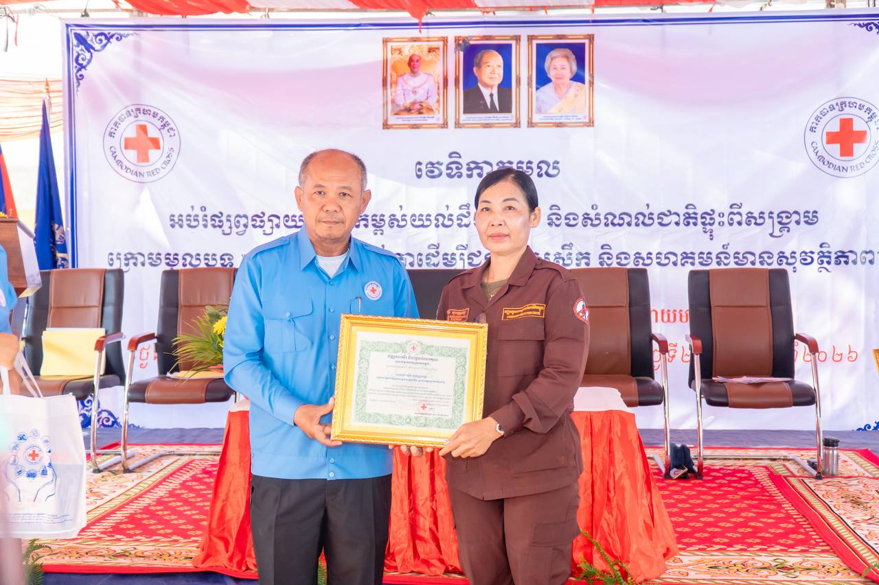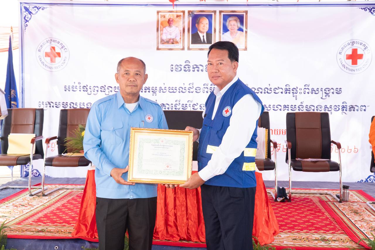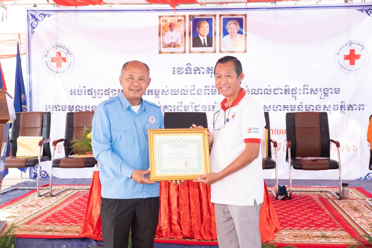 បន្ទាយមានជ័យ ៖ ឯកឧត្តម អ៊ុំ រាត្រី អភិបាល នៃគណៈអភិបាលខេត្ត និងជាប្រធានគណៈកម្មាធិការសាខាកាកបាទក្រហមកម្ពុជាខេត្តបន្ទាយមានជ័យ បានអញ្ជើញជាអធិបតីភាពក្នុងវេទិកាតុមូល ផ្សព្វផ្សាយលើកកម្ពស់ការយល់ដឹងពីមីន និងសំណល់ជាតិផ្ទុះពីសង្គ្រាម ក្រោមមូលបទចូលរួមទាំងអស់គ្នា ដើម្បីជនភៀសសឹក និងសហគមន៍មានសុវត្ថិភាព ។ពិធីនេះបានប្រារព្ធធ្វើឡើងនៅវត្ត ចន្ទស៊ី សាមគ្គីរតនារាម ស្ថិតនៅស្រុកអូរជ្រៅ ខេត្តបន្ទាយមានជ័យ នៅព្រឹកថ្ងៃទី២០ ខែកុម្ភៈ ឆ្នាំ២០២៦ ។