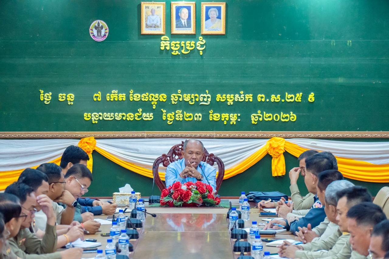 បន្ទាយមានជ័យ៖ នៅថ្ងៃទី២៣ ខែកុម្ភៈ ឆ្នាំ ២០២៦ ឯកឧត្ដម អ៊ុំ រាត្រី អភិបាល នៃគណៈអភិបាលខេត្តបន្ទាយមានជ័យ ដឹកនាំកិច្ចប្រជុំ ដាក់ចេញផែនការត្រួតពិនិត្យជនបរទេសឆ្លងកាត់ខេត្តបន្ទាយមានជ័យ ដើម្បីទប់ស្កាត់បទល្មើសឆបោកតាមប្រព័ន្ធបច្ចេកវិទ្យា Online Scams ។កិច្ចប្រជុំនេះបានធ្វើឡើងនៅសាលប្រជុំ ខ សាលាខេត្តបន្ទាយមានជ័យ ដោយមានការចូលរួមពីអភិបាលរង ស្នងការដ្ឋាននគរបាលខេត្ត បញ្ជាការដ្ឋានកងរាជអាវុធហត្ថខេត្ត អភិបាលក្រុង–ស្រុកពាក់ព័ន្ធផងដែរ។