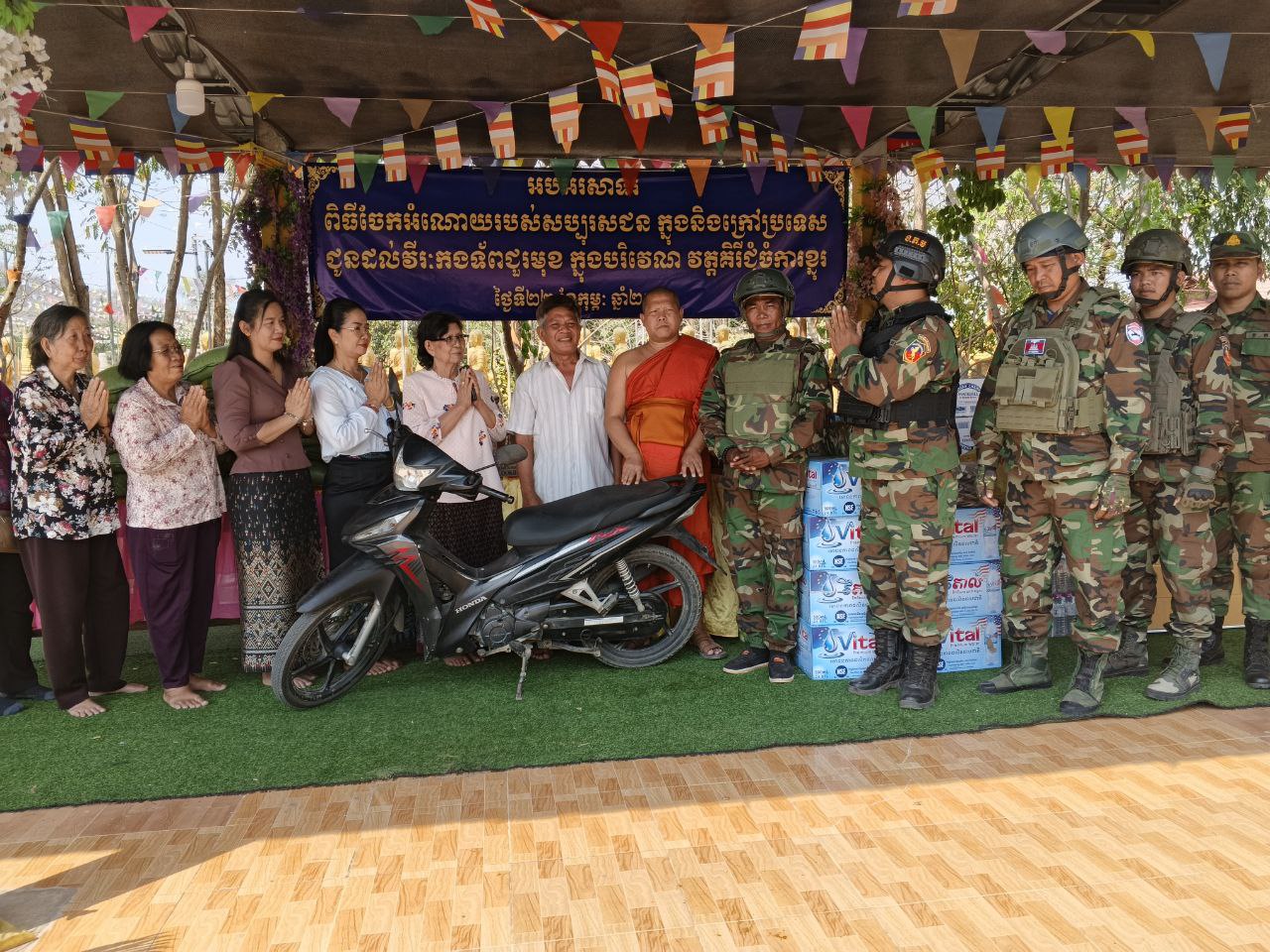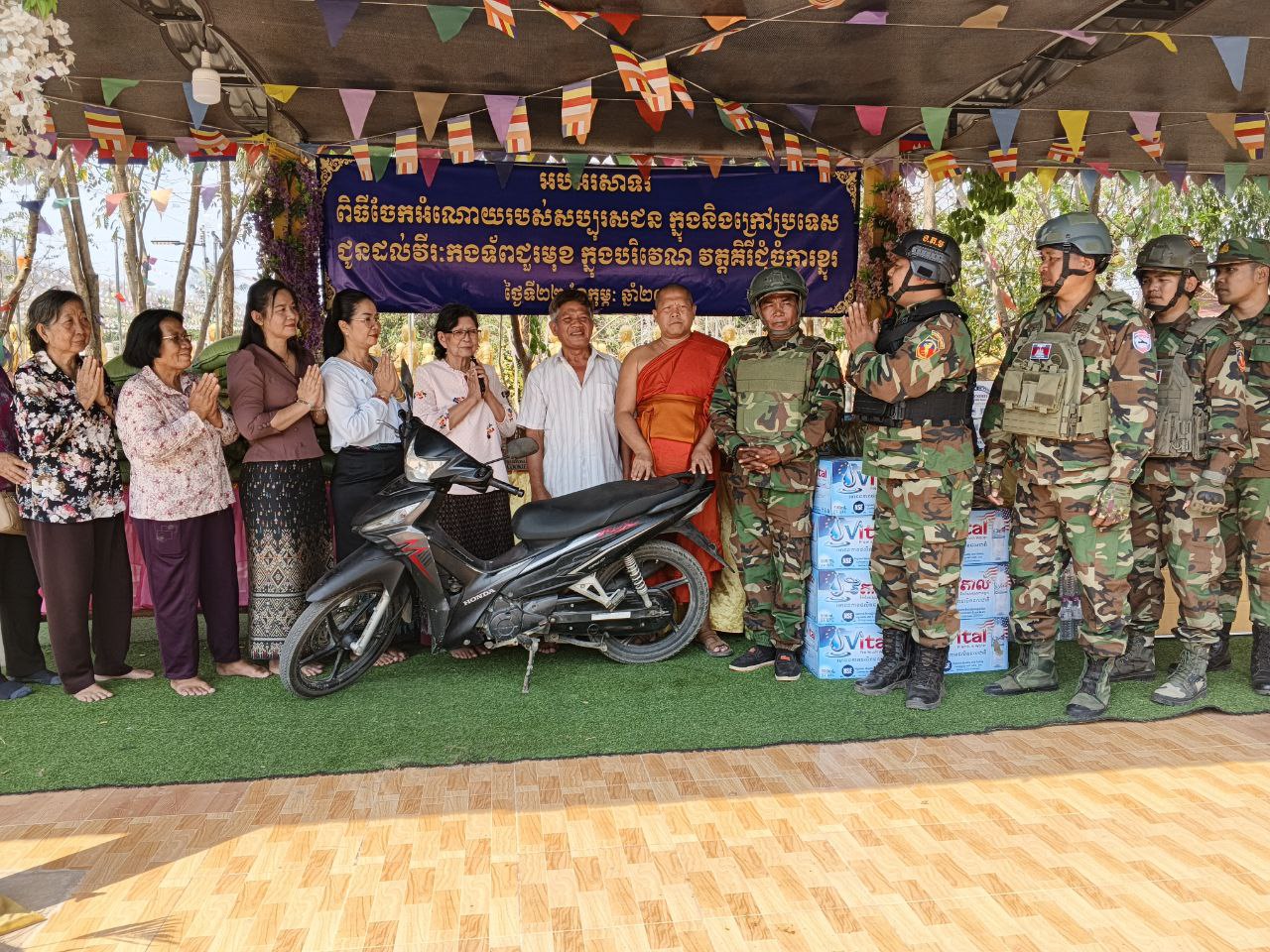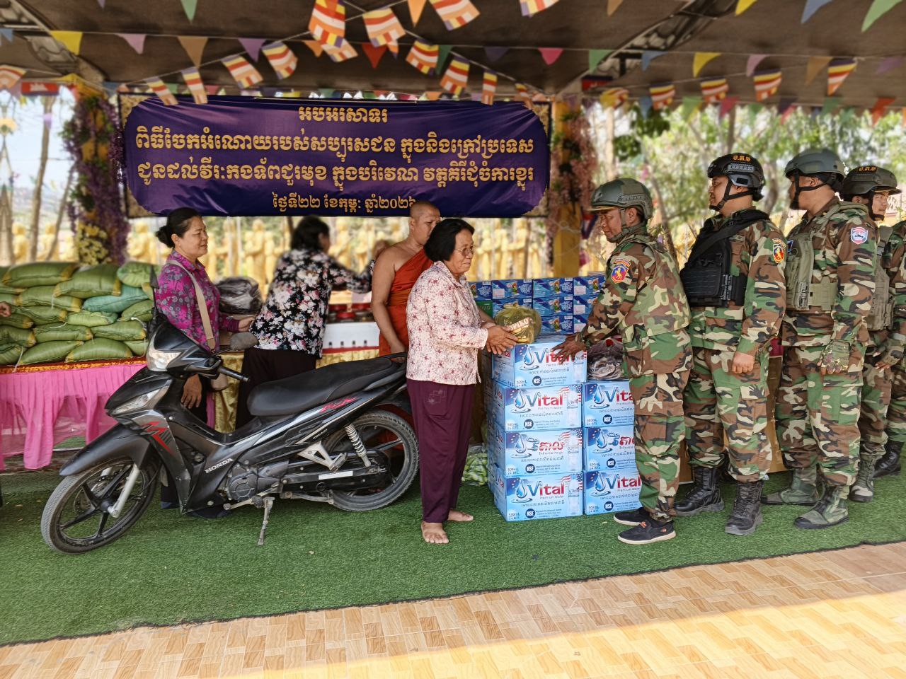 ខេត្តបន្ទាយមានជ័យ៖អំណោយរបស់សប្បុរសជនទាំងក្នុងនិងក្រៅប្រទេស បានផ្តល់ជូនតាម រយៈ ព្រះសមណៈញាណ ណាប់ ម៉ឺន ព្រះបាឡាត់ គណខេត្ត និងជាព្រះគ្រូចៅអធិការវត្តចម្ការខ្នុរ ក្នុងក្រុងសិរីសោភ័ណ ខេត្តបន្ទាយមានជ័យ បានប្រគល់ជូនដល់ វីរៈកងទ័ព ដោយផ្ទាល់នារសៀលថ្ងៃទី ២២ ខែកុម្ភៈ ឆ្នាំ២០២៦ ។