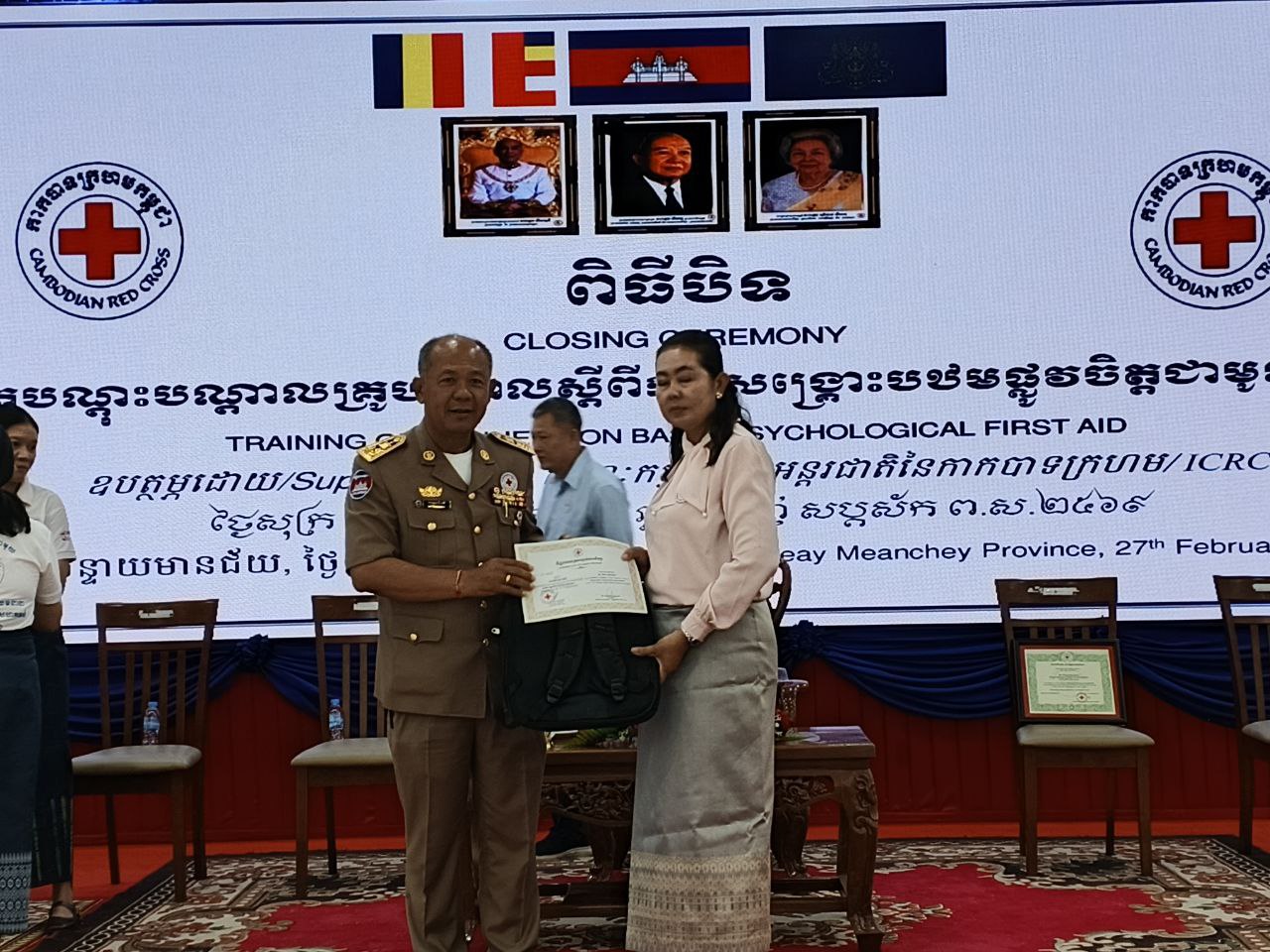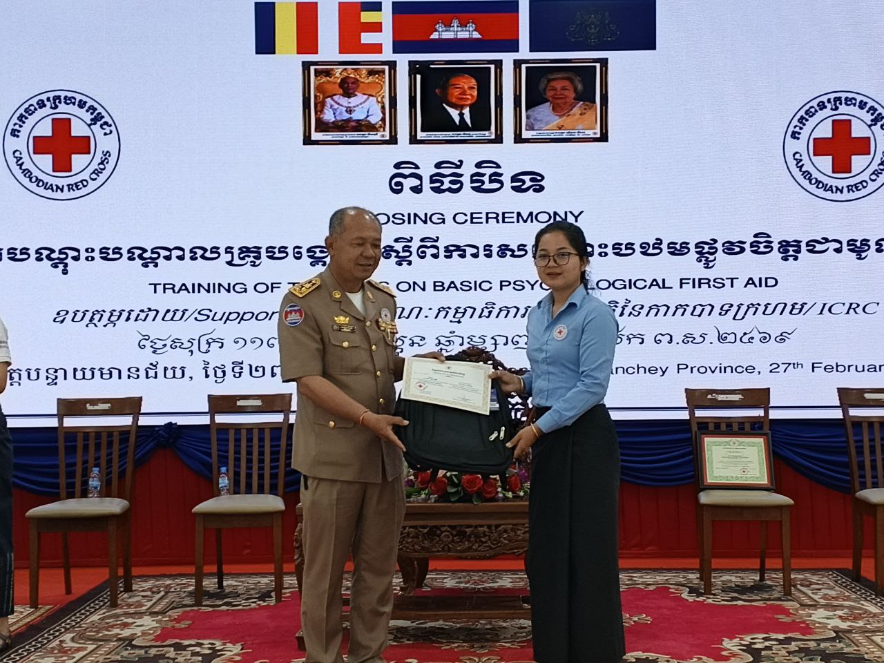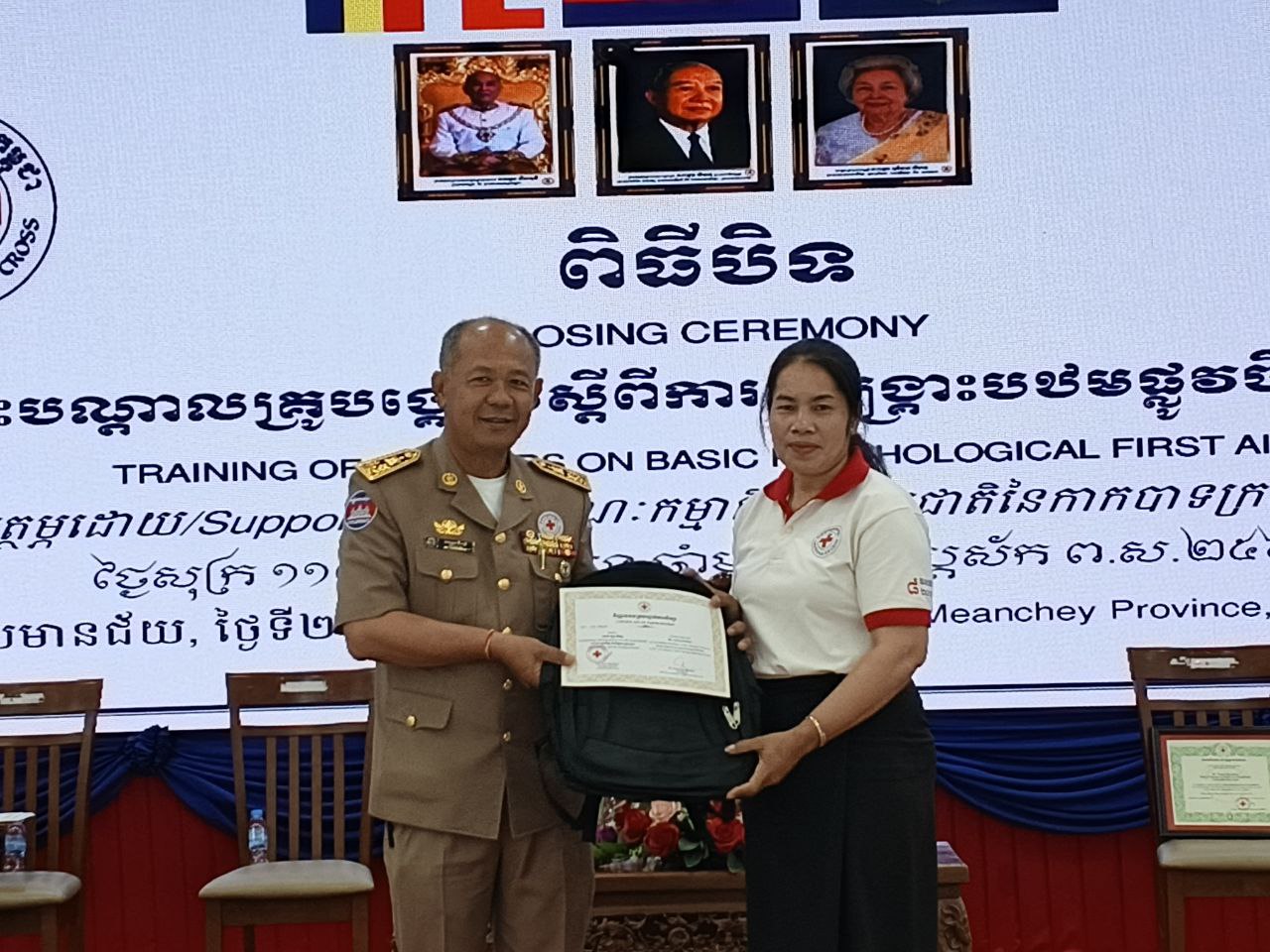 ទន្ទឹមនឹងនេះ សូមមន្ត្រីបុគ្គលិកដែលបានក្លាយខ្លួនជាគ្រូបង្គោលសុខភាពផ្លូវចិត្តនិងចិត្តសាស្ត្រសង្គមនាពេលនេះ សូមបណ្តុះបណ្តាលបន្តដល់យុវជននិងអ្នកស្ម័គ្រចិត្តកាកបាទក្រហមកម្ពុជាសារជាកម្លាំងដ៏សំខាន់នៅក្នុងសហគមន៍របស់យើង ដើម្បីឲ្យពួកគាត់ទទួលបាននូវចំណេះដឹងថ្មី និងយក ផ្សាយបន្តនៅក្នុងសហគមន៍រៀងៗខ្លួន៕