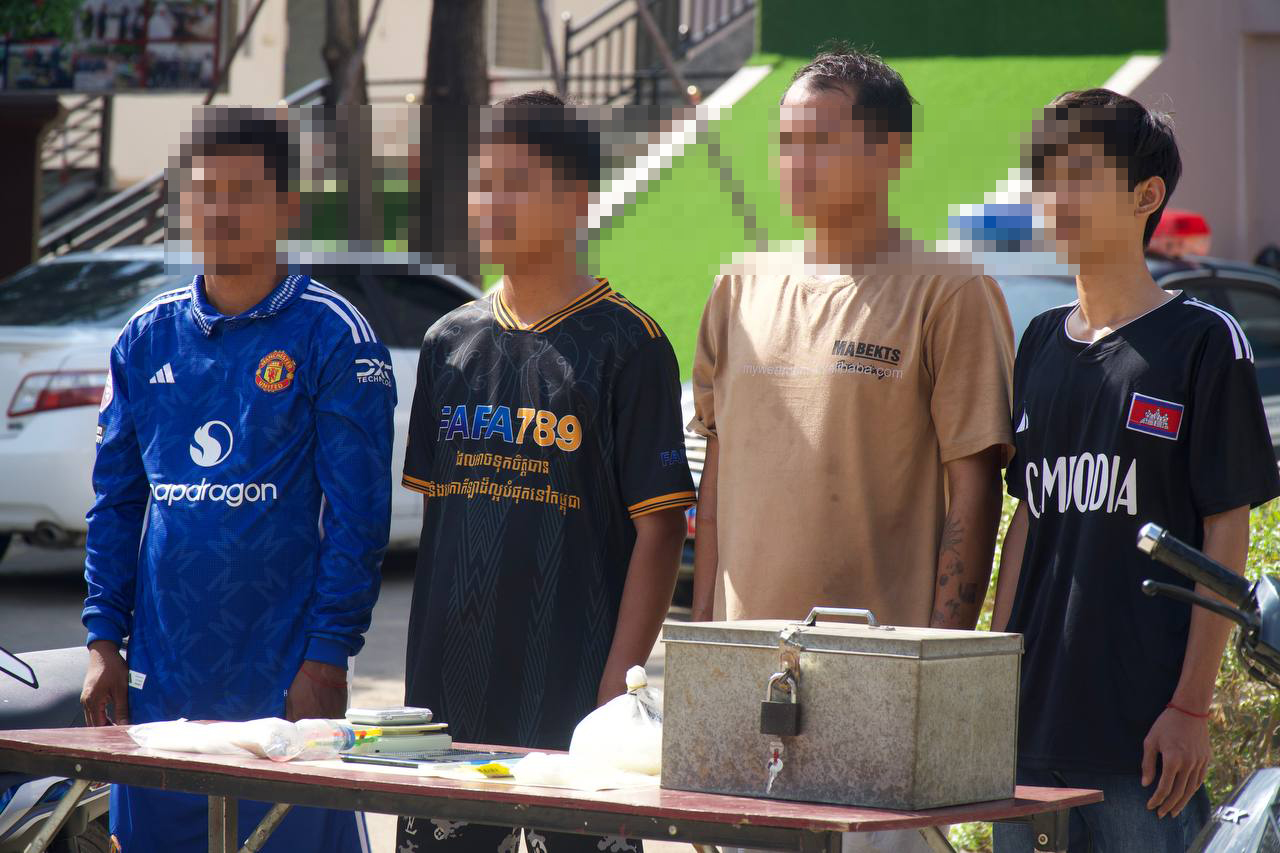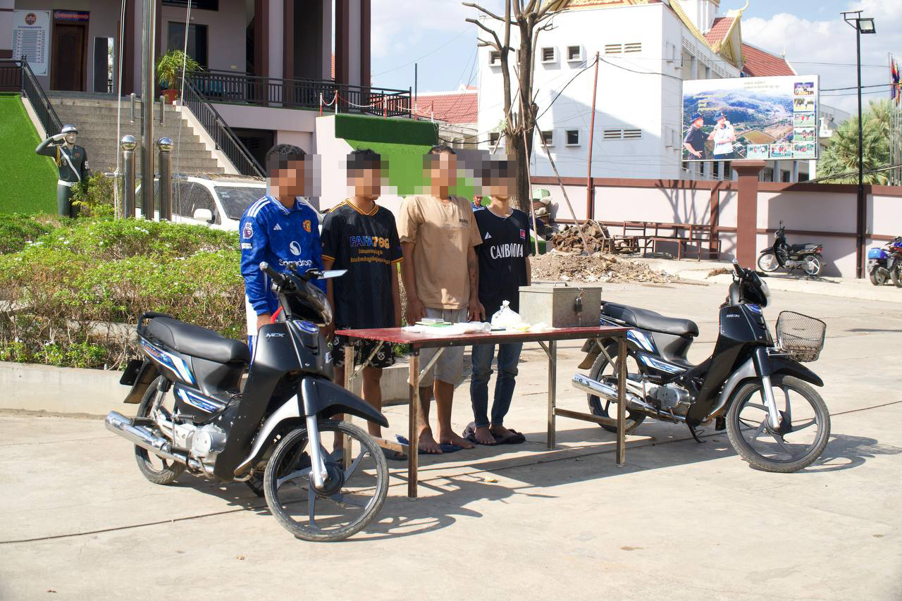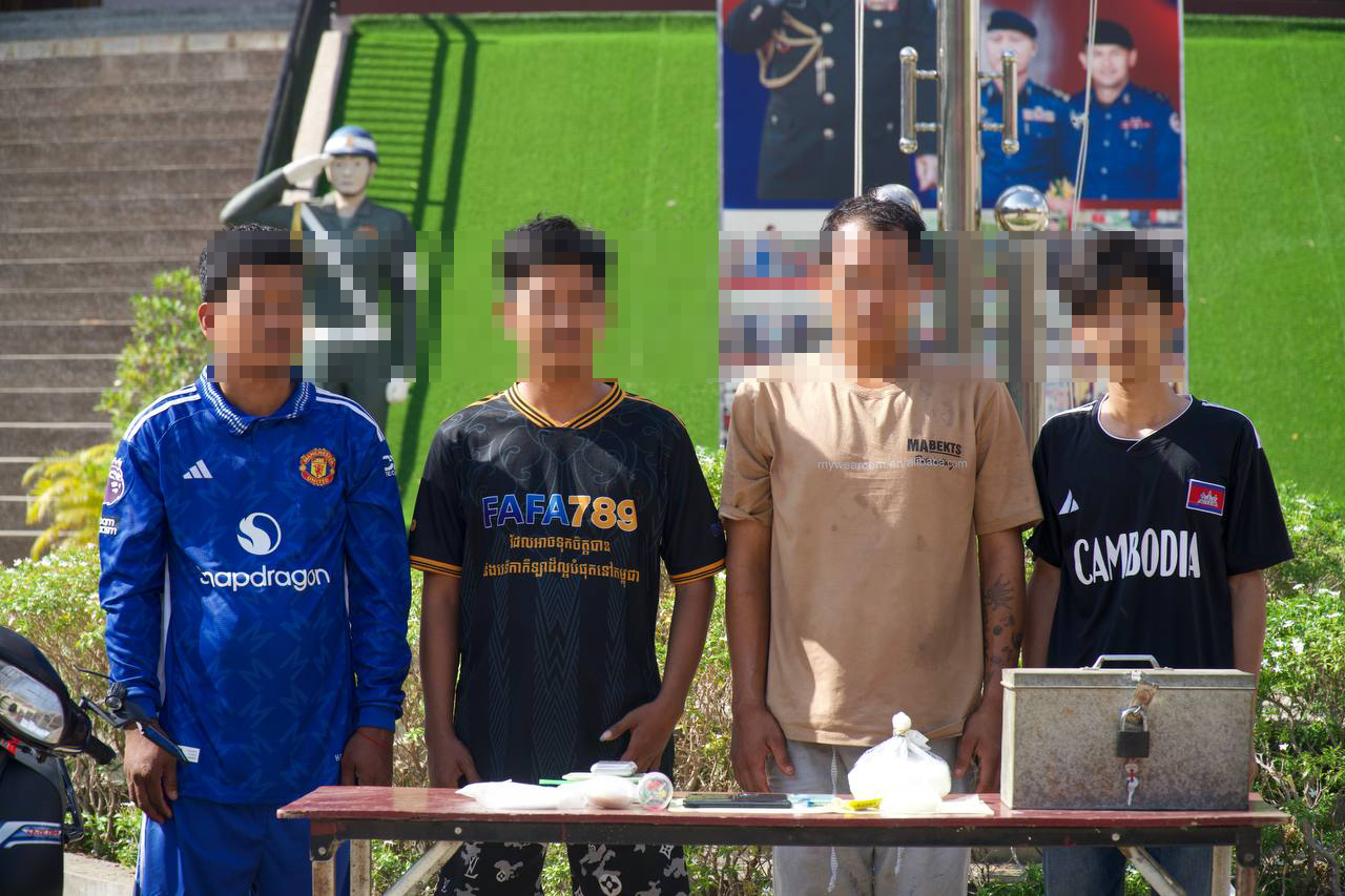 (បន្ទាយមានជ័យ)៖ កម្លាំងមូលដ្ឋានកងរាជអាវុធហត្ថក្រុងសិរីសោភ័ណ ដឹកនាំដោយលោក វរសេនីយ៍ត្រីសុខ ឡេង មេបញ្ជាការមូលដ្ឋានកងរាជអាវុធហត្ថក្រុង នៅវេលាម៉ោង១២និង០៥នាទី ថ្ងៃទី២៨ ខែកុម្ភៈ ឆ្នាំ២០២៦ បានចុះប្រតិបត្តិការបង្រ្កាបករណីជួញដូរ រក្សាទុក និងប្រើប្រាស់ដោយខុសច្បាប់នូវសារធាតុញៀន ដោយឃាត់ខ្លួនជនសង្ស័យបានចំនួន៤នាក់ ១–ឈ្មោះ ចាប ចំរើន ហៅ មើន ភេទប្រុស អាយុ២៩ឆ្នាំ ជនជាតិខ្មែរ, ២–ឈ្មោះ ហង្ស រស្មី ភេទប្រុស អាយុ១៩ឆ្នាំ ជនជាតិខ្មែរ,៣-ឈ្មោះ ឈុំ ចំរើន ហៅ ង៉ា ភេទប្រុស អាយុ៣១ឆ្នាំ ជនជាតិខ្មែរ, ៤–ឈ្មោះ រ៉េត ដានិត ភេទប្រុស អាយុ ២៧ឆ្នាំ ជនជាតិខ្មែរ នៅចំណុចបន្ទប់ជួល ស្ថិតក្នុងភូមិខ្លាកូនថ្មី សង្កាត់កំពង់ស្វាយ ក្រុងសិរីសោភ័ណ ខេត្តបន្ទាយមានជ័យ ព្រមទាំងដកហូតវត្ថុតាងគ្រឿងញៀនប្រភេទម្ស៉ៅក្រាមពណ៌សថ្លា (ICE) ចំនួន០១កញ្ចប់ធំ និង០៤ថង់កិប ទម្ងន់ ៦៩៣,៩ក្រាម, កញ្ចប់ម្ស៉ៅពណ៌លឿងមានរូបសេះពណ៌ក្រហម (អ៊ិចស្តាស៊ី) ចំនួន០១កញ្ចប់ ទម្ងន់ ៥,៥០ក្រាម, ម៉ូតូ ចំនួន០២គ្រឿង, ទូរស័ព្ទចំនួន ០៤គ្រឿង, ញ្ជីងសម្រាប់ថ្លឹងគ្រឿងញៀន ចំនួន ០២គ្រឿង រួមនឹងសម្ភារៈសម្រាប់ប្រាស់គ្រឿងញៀនមួយចំនួន ហើយនាំទៅកាន់មូលដ្ឋានកងរាជអាវុធហត្ថក្រុង ដើម្បីសួរនាំតាមនីតិវិធី។