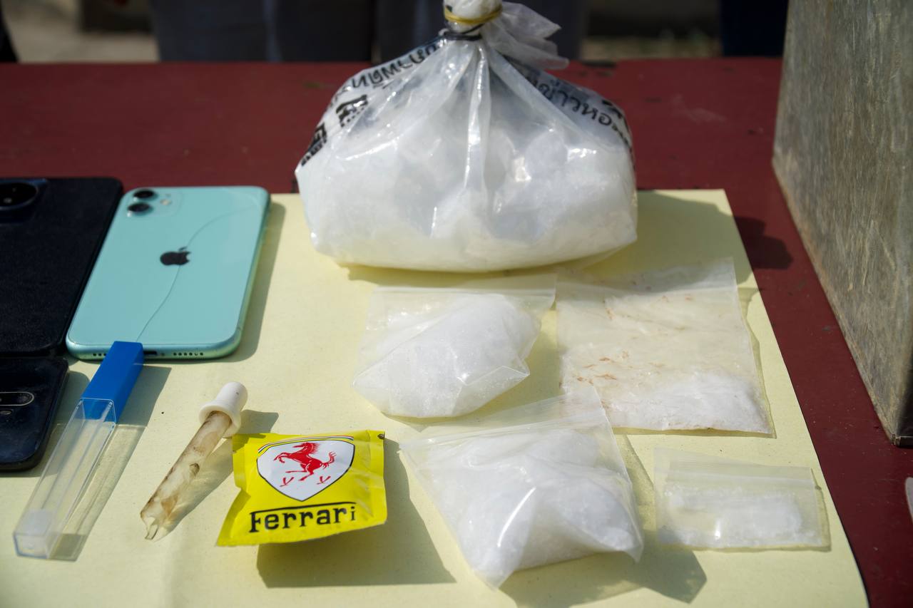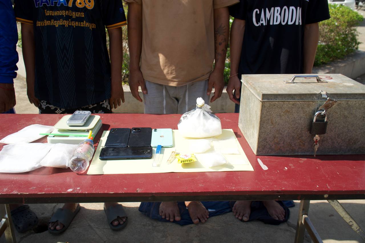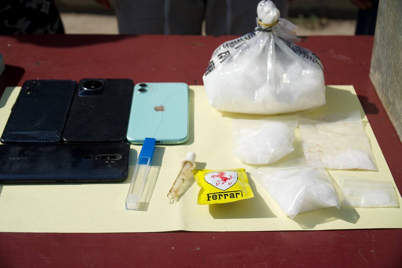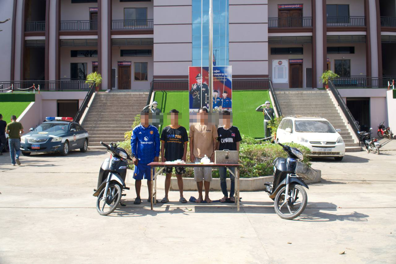 (បន្ទាយមានជ័យ)៖ កម្លាំងមូលដ្ឋានកងរាជអាវុធហត្ថក្រុងសិរីសោភ័ណ ដឹកនាំដោយលោក វរសេនីយ៍ត្រីសុខ ឡេង មេបញ្ជាការមូលដ្ឋានកងរាជអាវុធហត្ថក្រុង នៅវេលាម៉ោង១២និង០៥នាទី ថ្ងៃទី២៨ ខែកុម្ភៈ ឆ្នាំ២០២៦ បានចុះប្រតិបត្តិការបង្រ្កាបករណីជួញដូរ រក្សាទុក និងប្រើប្រាស់ដោយខុសច្បាប់នូវសារធាតុញៀន ដោយឃាត់ខ្លួនជនសង្ស័យបានចំនួន៤នាក់ ១–ឈ្មោះ ចាប ចំរើន ហៅ មើន ភេទប្រុស អាយុ២៩ឆ្នាំ ជនជាតិខ្មែរ, ២–ឈ្មោះ ហង្ស រស្មី ភេទប្រុស អាយុ១៩ឆ្នាំ ជនជាតិខ្មែរ,៣-ឈ្មោះ ឈុំ ចំរើន ហៅ ង៉ា ភេទប្រុស អាយុ៣១ឆ្នាំ ជនជាតិខ្មែរ, ៤–ឈ្មោះ រ៉េត ដានិត ភេទប្រុស អាយុ ២៧ឆ្នាំ ជនជាតិខ្មែរ នៅចំណុចបន្ទប់ជួល ស្ថិតក្នុងភូមិខ្លាកូនថ្មី សង្កាត់កំពង់ស្វាយ ក្រុងសិរីសោភ័ណ ខេត្តបន្ទាយមានជ័យ ព្រមទាំងដកហូតវត្ថុតាងគ្រឿងញៀនប្រភេទម្ស៉ៅក្រាមពណ៌សថ្លា (ICE) ចំនួន០១កញ្ចប់ធំ និង០៤ថង់កិប ទម្ងន់ ៦៩៣,៩ក្រាម, កញ្ចប់ម្ស៉ៅពណ៌លឿងមានរូបសេះពណ៌ក្រហម (អ៊ិចស្តាស៊ី) ចំនួន០១កញ្ចប់ ទម្ងន់ ៥,៥០ក្រាម, ម៉ូតូ ចំនួន០២គ្រឿង, ទូរស័ព្ទចំនួន ០៤គ្រឿង, ញ្ជីងសម្រាប់ថ្លឹងគ្រឿងញៀន ចំនួន ០២គ្រឿង រួមនឹងសម្ភារៈសម្រាប់ប្រាស់គ្រឿងញៀនមួយចំនួន ហើយនាំទៅកាន់មូលដ្ឋានកងរាជអាវុធហត្ថក្រុង ដើម្បីសួរនាំតាមនីតិវិធី។