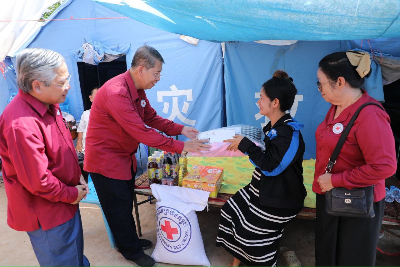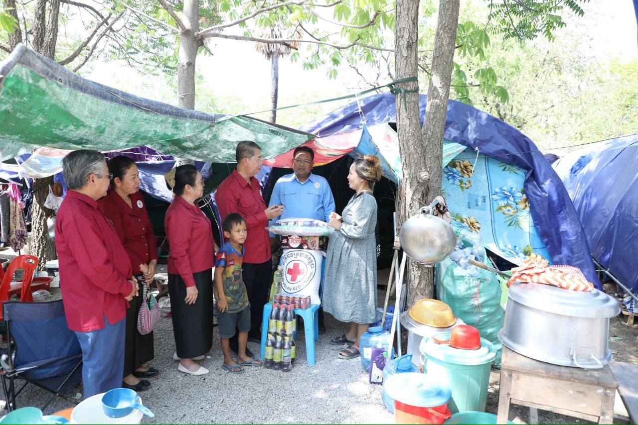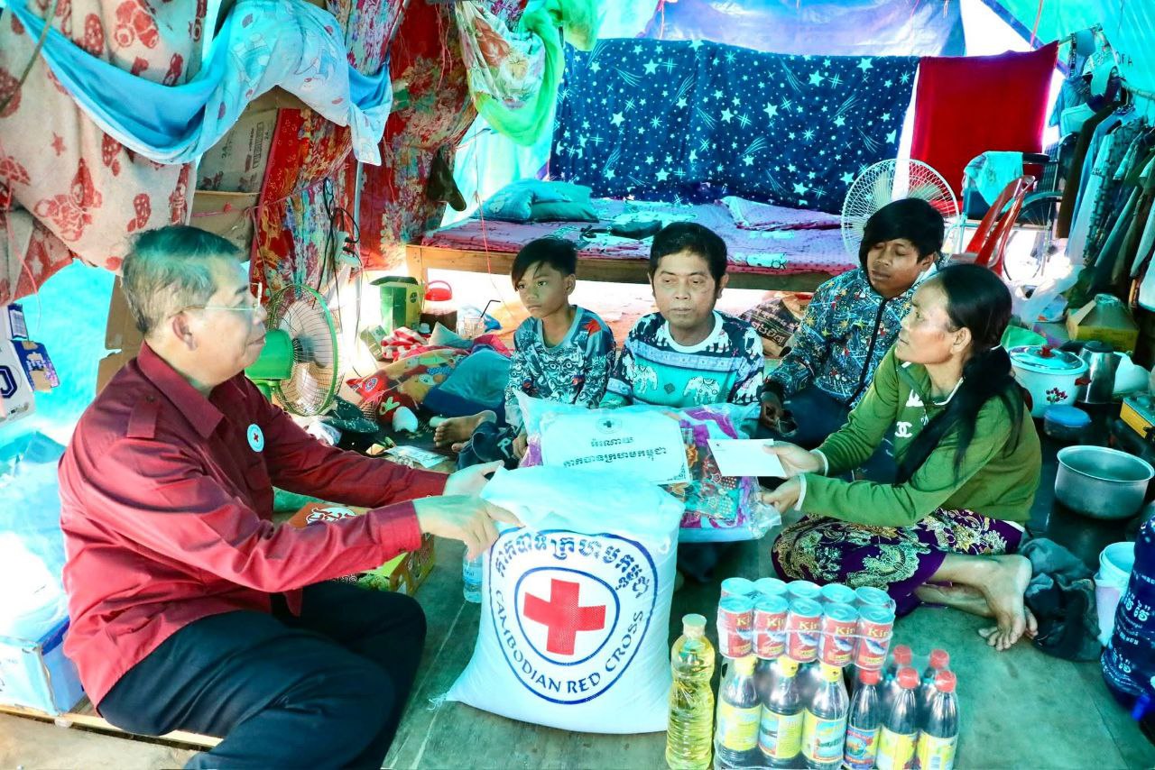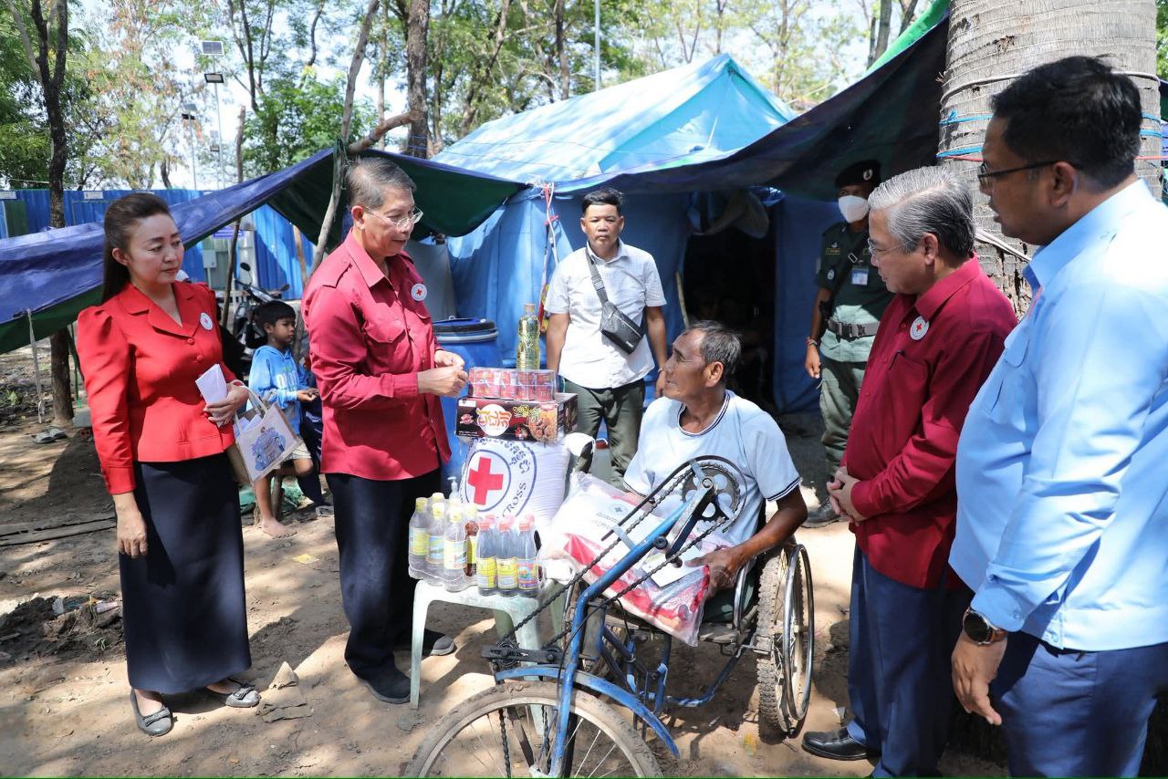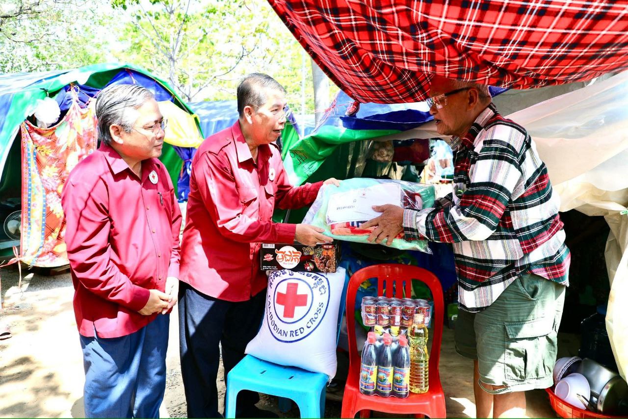 ដែលជានិច្ចកាល សម្តេចតែគិតគូរពីសុខទុក្ខរបស់បងប្អូនប្រជាពលរដ្ឋ ជាក់ស្តែងបងប្អូនប្រជាភៀសសឹកកំពុងស្នាក់នៅបណ្ដោះអាសន្នក្នុងជំរំនេះ។ ក្នុងនាមកាកបាទក្រហមកម្ពុជា ឯកឧត្ដមយូ ឡាណា ក៏បានធ្វើការចូលរួមសោកស្ដាយនៃការបាត់បង់ផ្ទះសម្បែងដីធ្លី ក៏ដូចជាការហ៊ុមព័ទ្ធរាយបន្លាលួសដាក់ទោសកុងតឺន័រ ធ្វើឲ្យប្រជាពលរដ្ឋមិនអាចចូលទៅរស់នៅបាន នេះគឺជាការឈ្លានពានរបស់យោធាសៀម ប៉ុន្តែរាជរដ្ឋាភិបាលបាននិងកំពុងបន្តខិតខំរកដំណោះស្រាយដោយសន្តិវិធី ។ ចុងក្រោយឯកឧត្តមបានធ្វើការផ្ដាំផ្ញើដល់បងប្អូនប្រជាពលរដ្ឋទាំងអស់ សូមរក្សាអនាម័យទឹកស្អាត ហូបស្អាតរស់នៅស្អាតដើម្បីសុខភាពល្អ។ អំណោយមនុស្សធម៌ ដែលបានផ្តល់ជូនក្នុងឱកាសនេះ ក្នុងមួយគ្រួសារទទួលបាន អង្ករ ៣០kg ត្រីខ ១យួរ ទឹកស៊ីអ៊ីវ១យួរ ទឹកត្រី១យួរ ប្រេងឆា១ដប ឆៃពៅ ១កែវ មុង១ ភួយ១ ក្រម៉ា១ សារុង១ និង ថវិកា១ចំនួន។ ដោយឡែក សម្រាប់ស្ត្រីមានផ្ទៃពោះចាស់ជរាជនពិការប្រតិភូកាកបាទក្រហម បានចុះផ្ដល់អំណោយនិងថវិកាជូនដល់ពួកគាត់ រស់នៅក្នុងតង់ផងដែរ៕