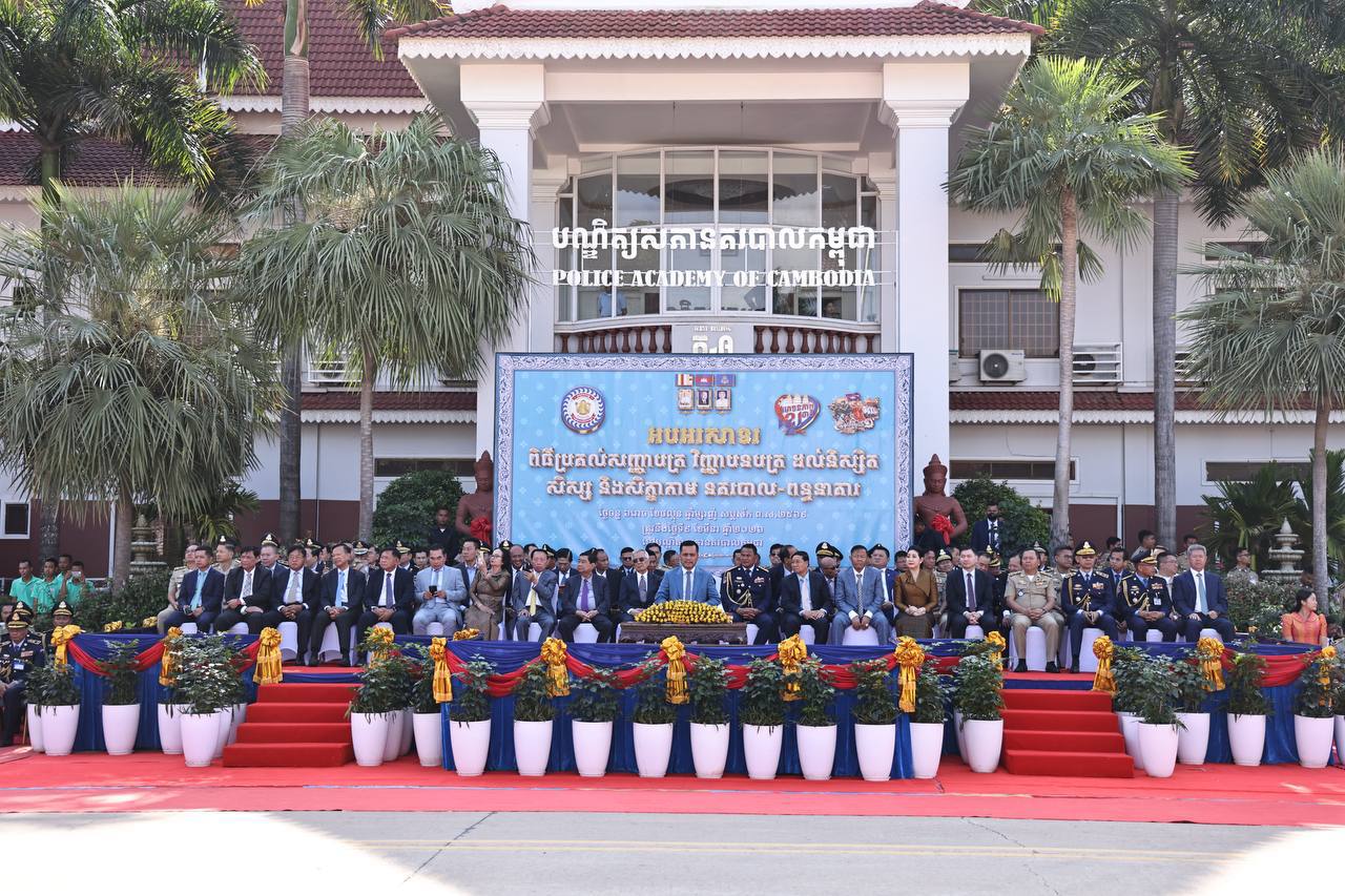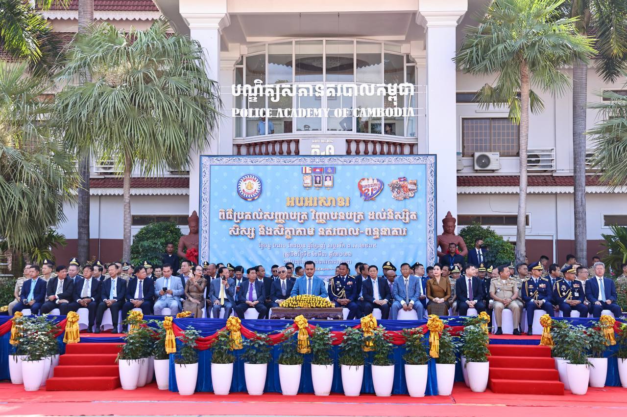 (ភ្នំពេញ)៖ថ្លែងក្នុងពិធីប្រគល់សញ្ញាបត្រ វិញ្ញាបនបត្រ ដល់សិស្ស និស្សិត និងសិក្ខាកាមនគរបាលជាតិ និងមន្រ្តីពន្ធនាគារ នៅបណ្ឌិត្យសភានគរបាលកម្ពុជា នាព្រឹកថ្ងៃទី៩ ខែកុម្ភៈ ឆ្នាំ២០២៦ ឯកឧត្តមអភិសន្តិបណ្ឌិត ស សុខា ឧបនាយករដ្ឋមន្ត្រី រដ្ឋមន្ត្រីក្រសួងមហាផ្ទៃ បានមានប្រសាសន៍លើកទឹកចិត្តថ្នាក់ដឹកនាំ សាស្រ្តាចារ្យ និងគ្រូនគរបាលជាតិ នៃបណ្ឌិត្យសភានគរបាលកម្ពុជា បន្តសម្រិតសម្រាំង និងសម្រួចគុណភាព នៃការអប់រំ បណ្ដុះបណ្ដាល និងហ្វឹកហាត់ជំនាញផ្សេងៗដល់សិស្ស និស្សិតនគរបាល រួមទាំងឥរិយាបថ និងក្រមសីលធម៌ល្អ។