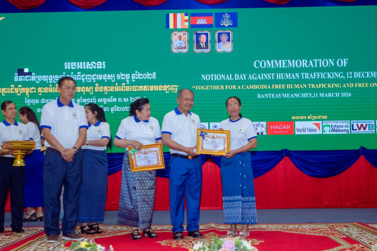បន្ទាយមានជ័យ៖ គណៈកម្មាធិការប្រយុទ្ធប្រឆាំងអំពើជួញដូរមនុស្សខេត្តបន្ទាយមានជ័យ បានប្រារព្ធ ទិវាជាតិប្រយុទ្ធប្រឆាំងអំពើជួញដូរមនុស្ស ១២ ធ្នូ ឆ្នាំ២០២៦ លើកទី១៩ ក្រោមប្រធានបទ “យើងរួមគ្នាដើម្បីកម្ពុជាគ្មានអំពើជួញដូរមនុស្ស និងអំពើឆបោកតាមអនឡាញ”។ ក្រោយខកខានដោយទទួលរងការឈ្លានពាន ពីសំណាក់យោធាថៃ នៅតាមខ្សែបន្ទាត់ព្រំដែនកន្លងមក កាលពីអំឡុងខែធ្នូ ឆ្នាំ២០២៥កន្លងទៅ។ទិវាជាតិប្រយុទ្ធប្រឆាំងអំពើជួញដូរមនុស្ស ប្រារព្ធធ្វើឡើងនៅសាលប្រជុំ (ធំ) សាលាខេត្តបន្ទាយមានជ័យ នារសៀលថ្ងៃទី ១១ ខែមីនា ឆ្នាំ២០២៦ ក្រោមអធិបតីភាពឯកឧត្ដម អ៊ុំ រាត្រី អភិបាល នៃគណៈអភិបាលខេត្ត និងជាប្រធានគណៈកម្មាធិការប្រយុទ្ធប្រឆាំងអំពើជួញដូរមនុស្សខេត្តបន្ទាយមានជ័យ និងលោកជំទាវ ឯកឧត្តម ប្លែក វ៉ារី ប្រធានក្រុមប្រឹក្សាខេត្ត ព្រមទាំងមានអ្នកចូលរួមប្រមាណ៧០០នាក់ផងដែរ។