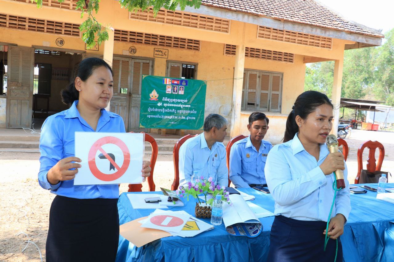 លោក ឈឿង កែល ប្រធានការិយាល័យរដ្ឋបាល និងលោកស្រី ឆែប សំឡី ប្រធានការិយាល័យដោះស្រាយបណ្ដឹង បានឡើងធ្វើបទបង្ហាញច្បាប់ស្ដីពីចរាចរណ៍ផ្លូវគោកពីជំពូកនៃបទប្បញ្ញត្តិទូទៅទាំង ១២ជំពូក និង ៩២មាត្រា បង្ហាញពីស្លាកសញ្ញាចរាចរណ៍ជូនដល់សិស្សានុសិស្សបានដឹង បានយល់ បានស្គាល់ ពីសុវត្ថិភាពចរាចរណ៍ផ្លូវគោក។