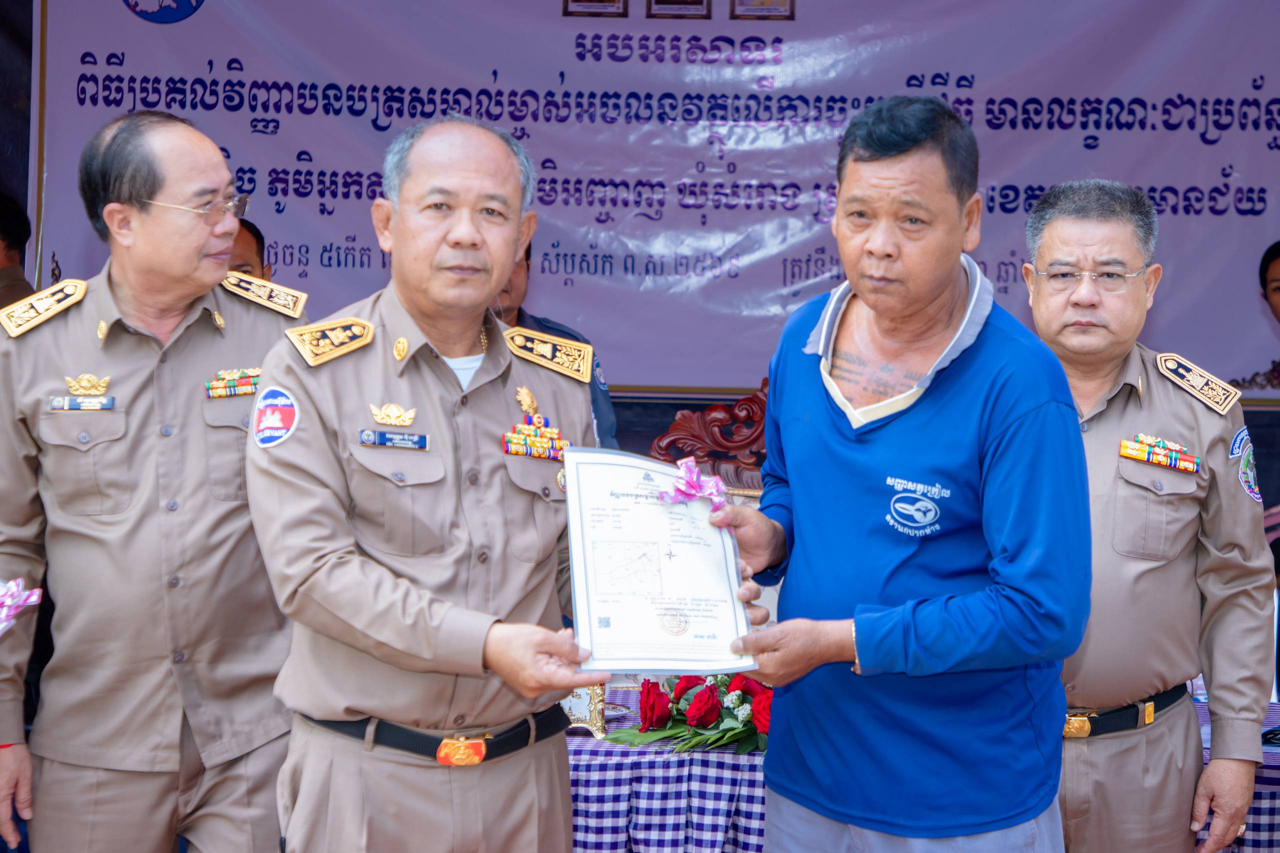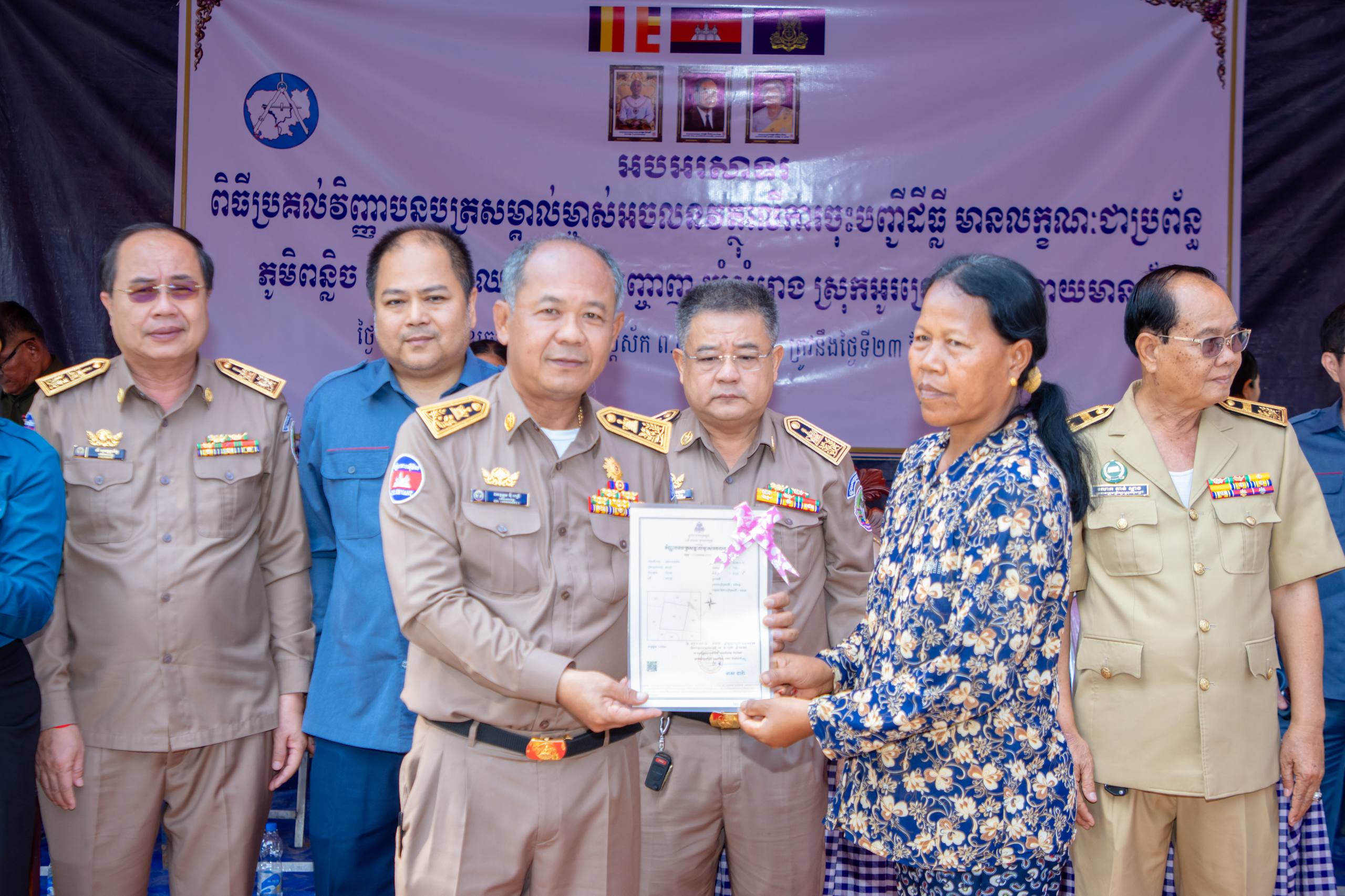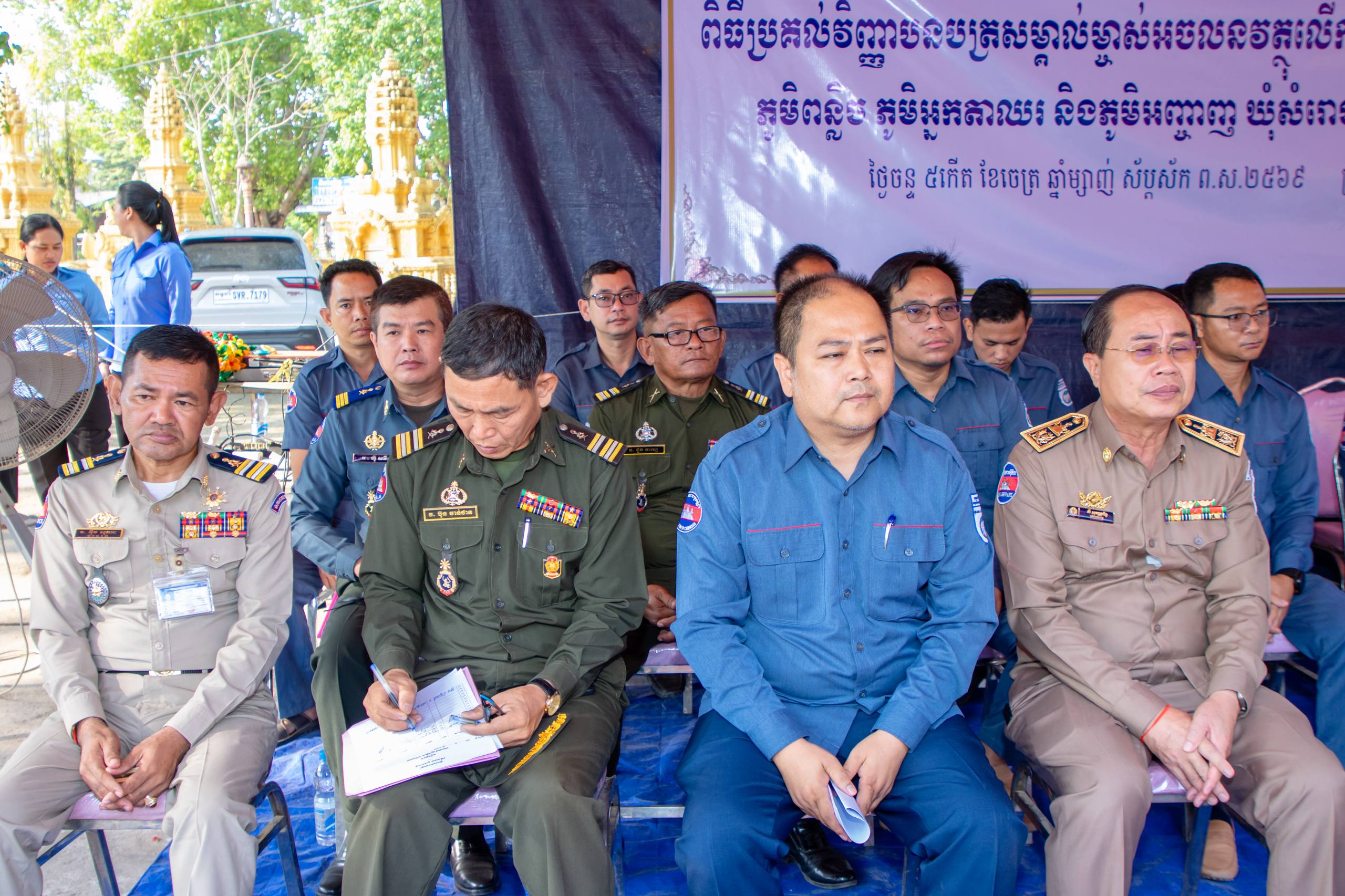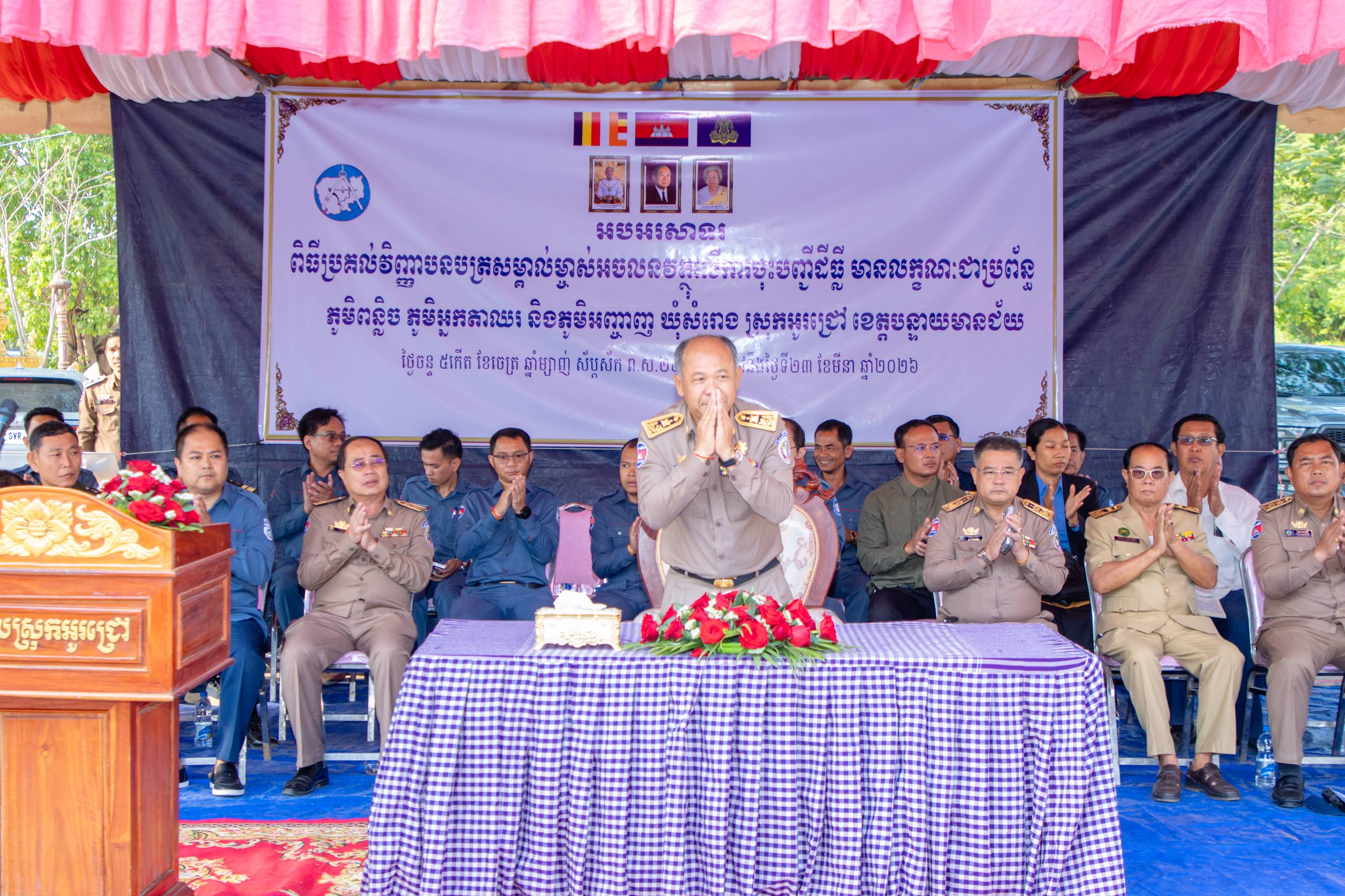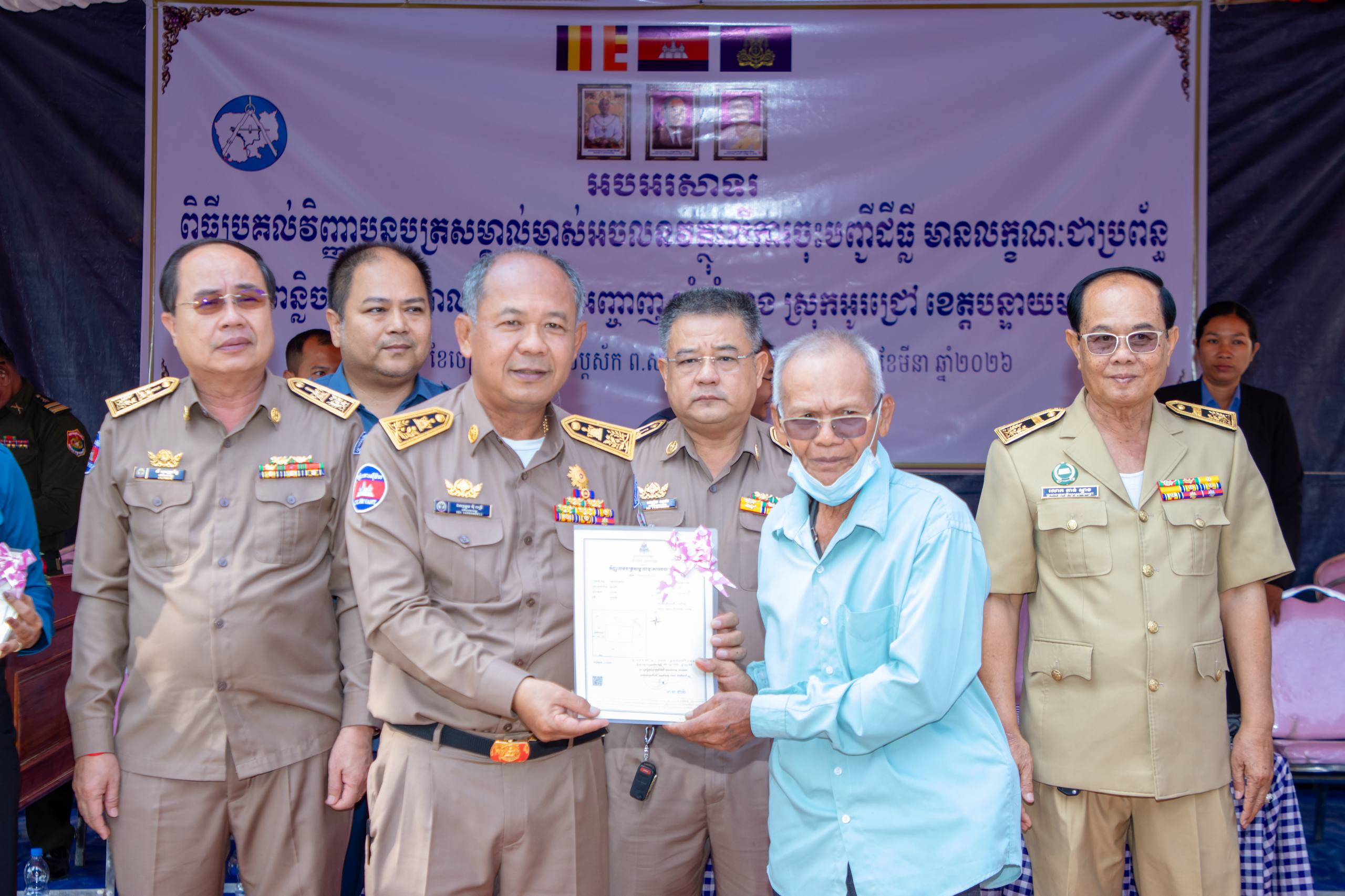 បន្ទាយមានជ័យ ៖ មន្ទីររៀបចំដែនដី នគរូបនីយកម្ម សំណង់ និងសុរិយោដីខេត្តបន្ទាយមានជ័យ និងរដ្ឋបាលបាលស្រុកអូរជ្រៅ បានរៀបចំពិធីចែកវិញ្ញាបនបត្រសម្គាល់ម្ចាស់អចលនវត្ថុ ក្នុងភូមិបន្លិច ភូមិអ្នកតាឈរ ភូមិអញ្ចាញ ឃុំសំរោង ស្រុកអូរជ្រៅ ខេត្តបន្ទាយមានជ័យ ស្មើនឹង ២ ៥៨១ បណ្ណ ស្ថិតនៅវត្តសំរោង ភូមិសំរោង ឃុំសំរោង ស្រុកអូរជ្រៅ ខេត្តបន្ទាយមានជ័យ ក្រោមអធិបតីភាព ឯកឧត្តម អ៊ុំ រាត្រី អភិបាលនៃគណៈអភិបាលខេត្តបន្ទាយមានជ័យ នៅថ្ងៃទី២៣ ខែមីនា ឆ្នាំ ២០២៦។