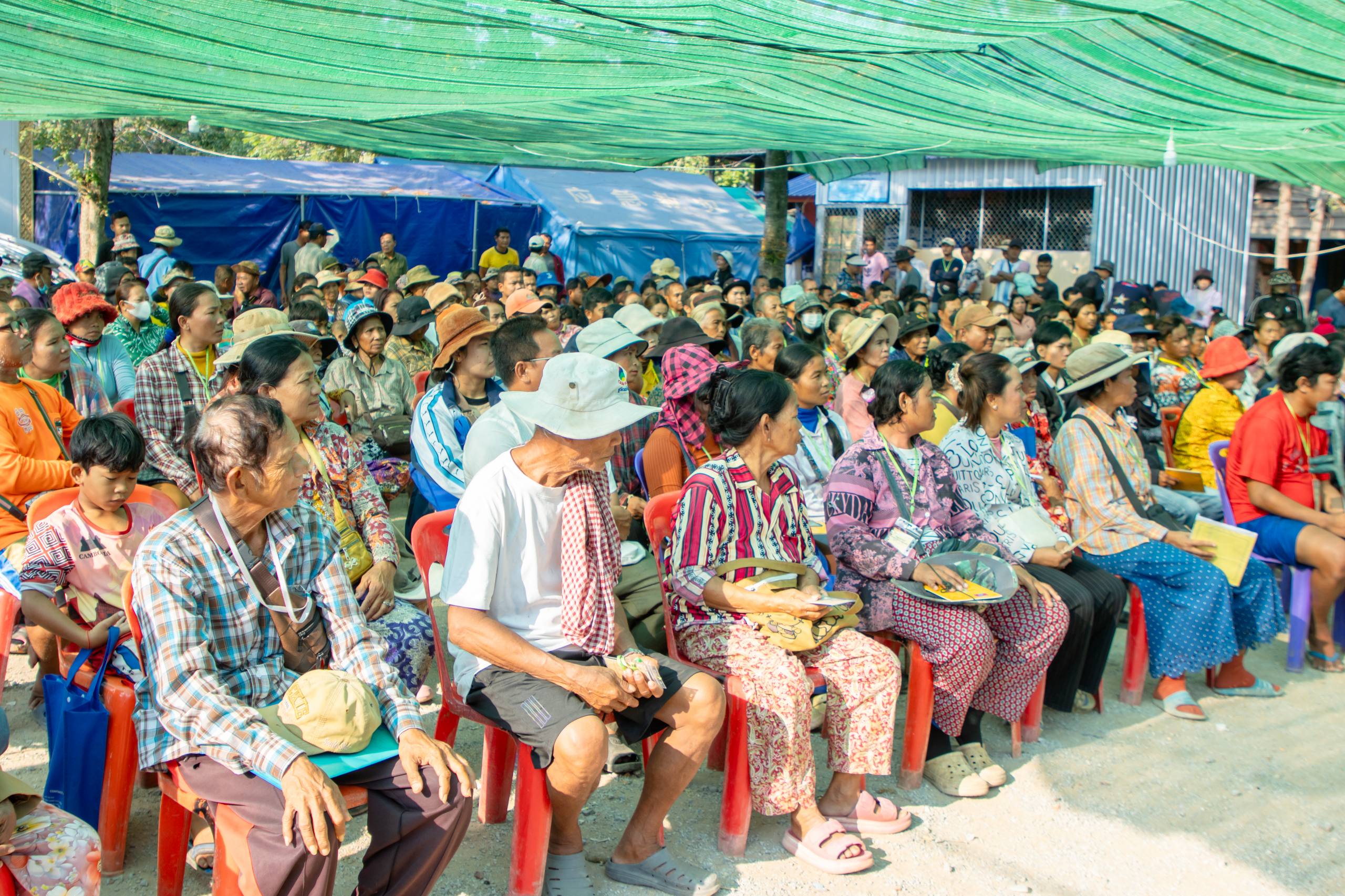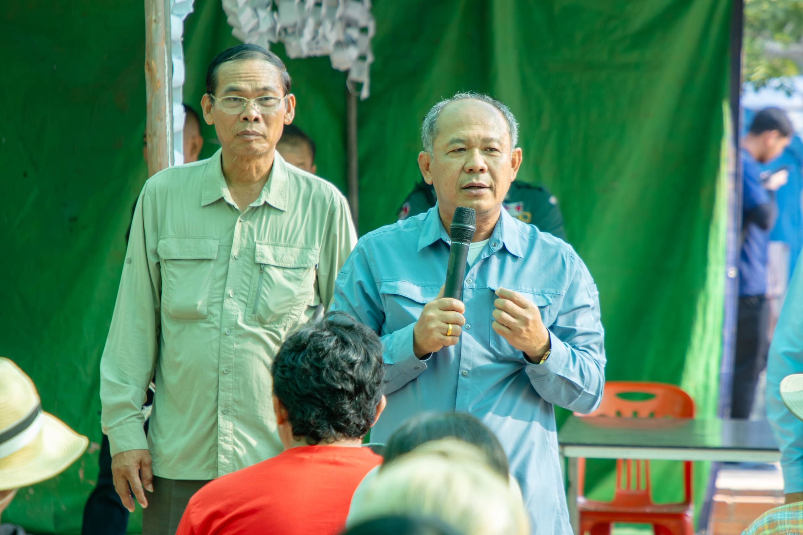 ឯកឧត្ដម អ៊ុំ រាត្រី ក៏បានបន្តថា បងប្អូនដែលរងផលប៉ះពាល់ដោយសារយោធាថៃហ៊ុព័ទ្ធផ្ទះសម្បែង ដែលមិនអាចចូលទៅរស់នៅក្នុង ទីតាំងភូមិទាំង ៦ខាងលើ រាជរដ្ឋាភិបាលដែលមានសម្តេចមហាបវរធិបតី នាយករដ្ឋមន្ត្រី តែងតែគិតគូរ និង យកចិត្តទុកដាក់ខ្ពស់ទាំងការរស់នៅ និងជីវភាពរបស់បងប្អូន និងកំពុងរៀបចំដីធ្លីជាគម្រោងរបស់សមាគមអតីតយុទ្ធជន ដើម្បីសាងសង់ផ្ទះសម្រាប់ផ្តល់ជូនបងប្អូនដែលមានលំនៅដ្ឋានអចិន្ត្រៃយ៍ក្នុងតំបន់ហ៊ុព័ទ្ធ បានរស់នៅជាបណ្តោះអាសន្ន ដែលមានទីតាំងនៅភូមិស្លក្រាម ឃុំស្លក្រាម ស្រុកស្វាយចេក ខេត្តបន្ទាយមានជ័យ លើផ្ទៃដីទំហំ៤០០ហិកតា និងមានហេដ្ឋារចនាសម្ព័ន្ធនានាគ្រប់គ្រាន់ ហើយបច្ចុប្បន្ន ក្រុមការងារបាននឹងកំពុង ដំណើរការសាងសង់ផ្ទះបានមួយចំនួន និងផ្តល់ជូនសម្រាប់បងប្អូនភៀសសឹក ដែលមានលំនៅដ្ឋានអចិន្ត្រៃយ៍ក្នុង តំបន់ហ៊ុព័ទ្ធចូលទៅរស់នៅជាបណ្តោះអាសន្ន ។