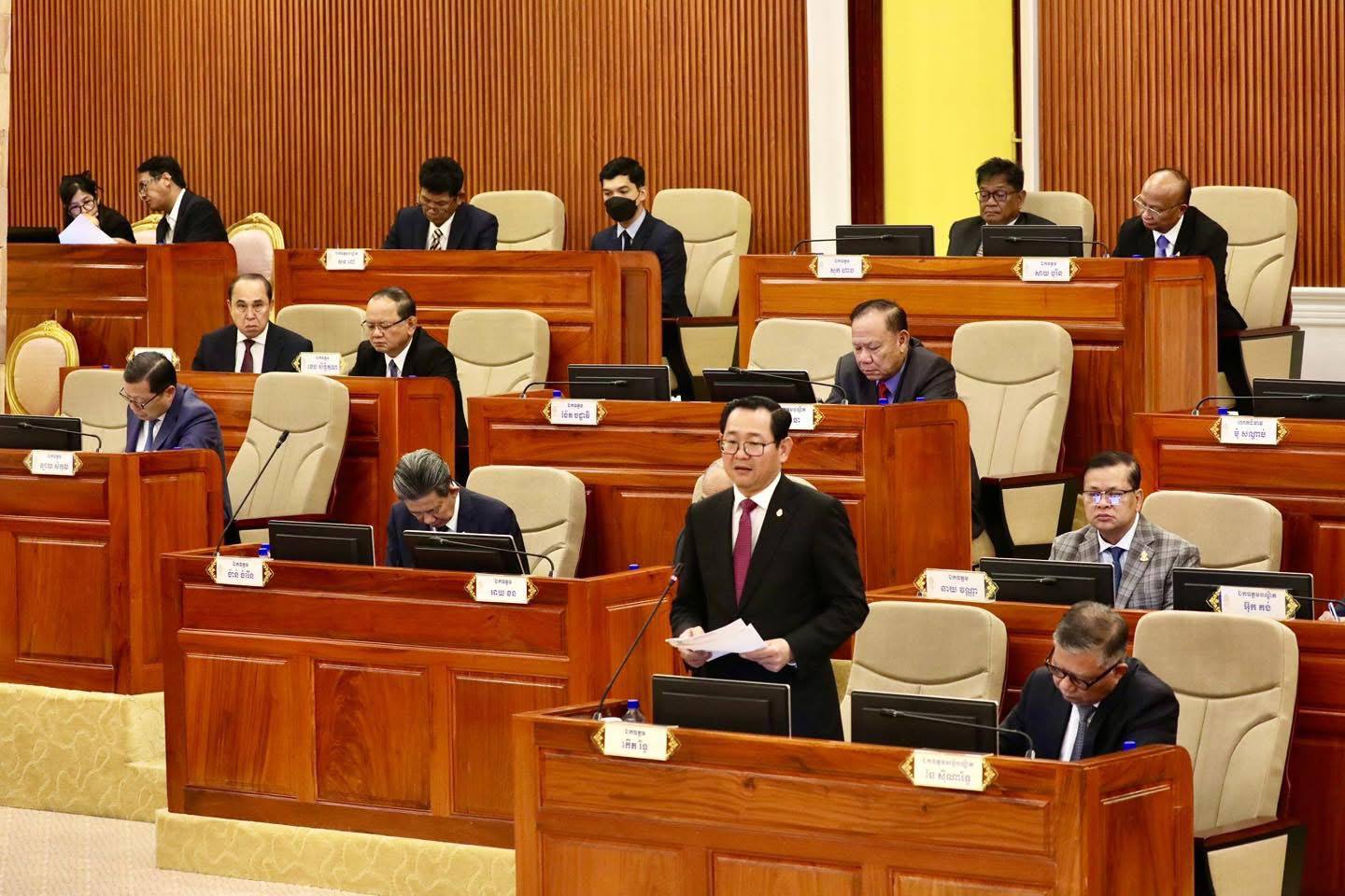 ភ្នំពេញ៖ នៅព្រឹកថ្ងៃទី៣ ខែមេសា ឆ្នាំ២០២៦ នេះ ដោយទទួលបានការចាត់តាំងដ៏ខ្ពង់ខ្ពស់ពីសម្តេចមហាបវរធិបតី ហ៊ុន ម៉ាណែត នាយករដ្ឋមន្ត្រី នៃព្រះរាជាណាចក្រកម្ពុជា ឯកឧត្តម កើត រិទ្ធ ឧបនាយករដ្ឋមន្ត្រី រដ្ឋមន្ត្រីក្រសួងយុត្តិធម៌ បានអញ្ជើញជាតំណាងរាជរដ្ឋាភិបាល ការពារសេចក្តីព្រាងច្បាប់ស្តីពីការប្រឆាំងការឆបោកតាមប្រព័ន្ធបច្ចេកវិទ្យា ក្នុងសម័យប្រជុំព្រឹទ្ធសភាជាវិសាមញ្ញ នីតិកាលទី៥ ដោយមានគណៈប្រតិភូអមរួមមាន៖ ឯកឧត្តមសន្តិបណ្ឌិត ឆៃ ស៊ីណារិទ្ធ ទេសរដ្ឋមន្ត្រី និងជាប្រធានលេខាធិការដ្ឋានគណៈកម្មការចំពោះកិច្ចប្រយុទ្ធប្រឆាំងការឆបោកតាមប្រព័ន្ធបច្ចេកវិទ្យា និងសមាសភាពពីទីស្តីការគណៈរដ្ឋមន្ត្រី និងក្រសួងយុត្តិធម៌។