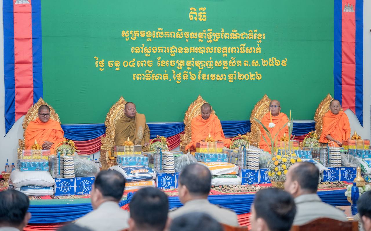 ខេត្តពោធិ៍សាត់៖លោកឧត្តមសេនីយ៍ទោ ស ថេង ស្នងការនគរបាលខេត្តពោធិ៍សាត់ នាព្រឹកថ្ងៃទី៦ ខែមេសា ឆ្នាំ២០២៦ បានអញ្ជើញជាអធិបតីក្នុងពិធីសូត្រមន្ត ចម្រើនព្រះបរិត្ត និងលើករាសី ដើម្បីបួងសួងសុំសេចក្តីសុខ សិរីសួស្តី ក្នុងឱកាសពិធីបុណ្យចូលឆ្នាំថ្មី ប្រពៃណីជាតិខ្មែរ ឆ្នាំមមី អដ្ឋស័ក ព.ស.២៥៦៩ ដែលនឹងប្រព្រឹត្តទៅនាពេលឆាប់ៗខាងមុខនេះ។ពិធីនេះបានប្រព្រឹត្តទៅនៅស្នងការដ្ឋាននគរបាលខេត្តពោធិ៍សាត់ដោយមានការអញ្ជើញចូលរួមពី លោក-លោកស្រី ស្នងការរង នាយការិយាល័យ និងមន្ត្រីនគរបាលទូទាំងស្នងការដ្ឋានយ៉ាងច្រើនកុះករផងដែរ។
