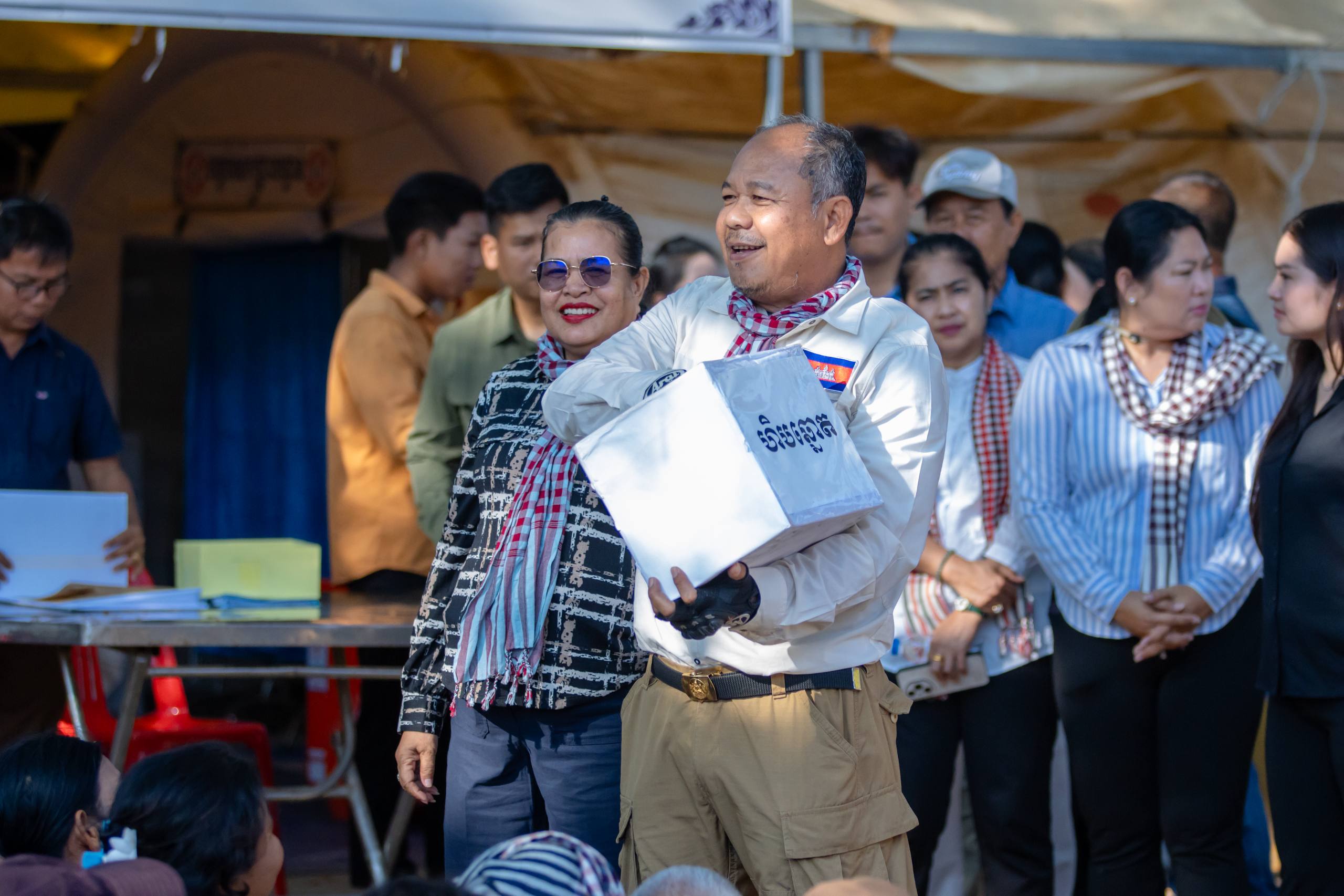បន្ទាយមានជ័យ ៖ នៅថ្ងៃទី០៧ ខែមេសា ឆ្នាំ២០២៦ ឯកឧត្តម អ៊ុំ រាត្រី អភិបាល នៃគណៈអភិបាលខេត្តបន្ទាយមានជ័យ និងលោកជំទាវ បានអញ្ជើញជួបសំណេះសំណាលជាមួយនឹងបងប្អូនភៀសសឹក នៅភូមិនៅវត្តពោធិ៍សូរិយារាម និងវត្តច័ន្ទស៊ី សាមគ្គីរតនារាម ដែលត្រូវចាប់ឆ្នោតជ្រើសរើសក្បាលដីនិងផ្ទះ ដើម្បីទៅរស់នៅបណ្ដោះអាសន្ន ផ្ទះរបស់បងប្អូនអតីតយុទ្ធជន ស្ថិតក្នុងភូមិស្លក្រាម ឃុំស្លក្រាម ស្រុកស្វាយចេក ខេត្តបន្ទាយមានជ័យ។ ពិធីនេះក៏មានការអញ្ជើញចូលរួមឯកឧត្តម ប្លែក វ៉ារី ប្រធាន ក្រុមប្រឹក្សា ខេត្ត ឯកឧត្តម តាន់ ផាន់ណារ៉ា អនុប្រធាន ក្រុមការងារ រាជរដ្ឋាភិបាល ចុះមូលដ្ឋានស្រុកអូរជ្រៅផងដែរ។