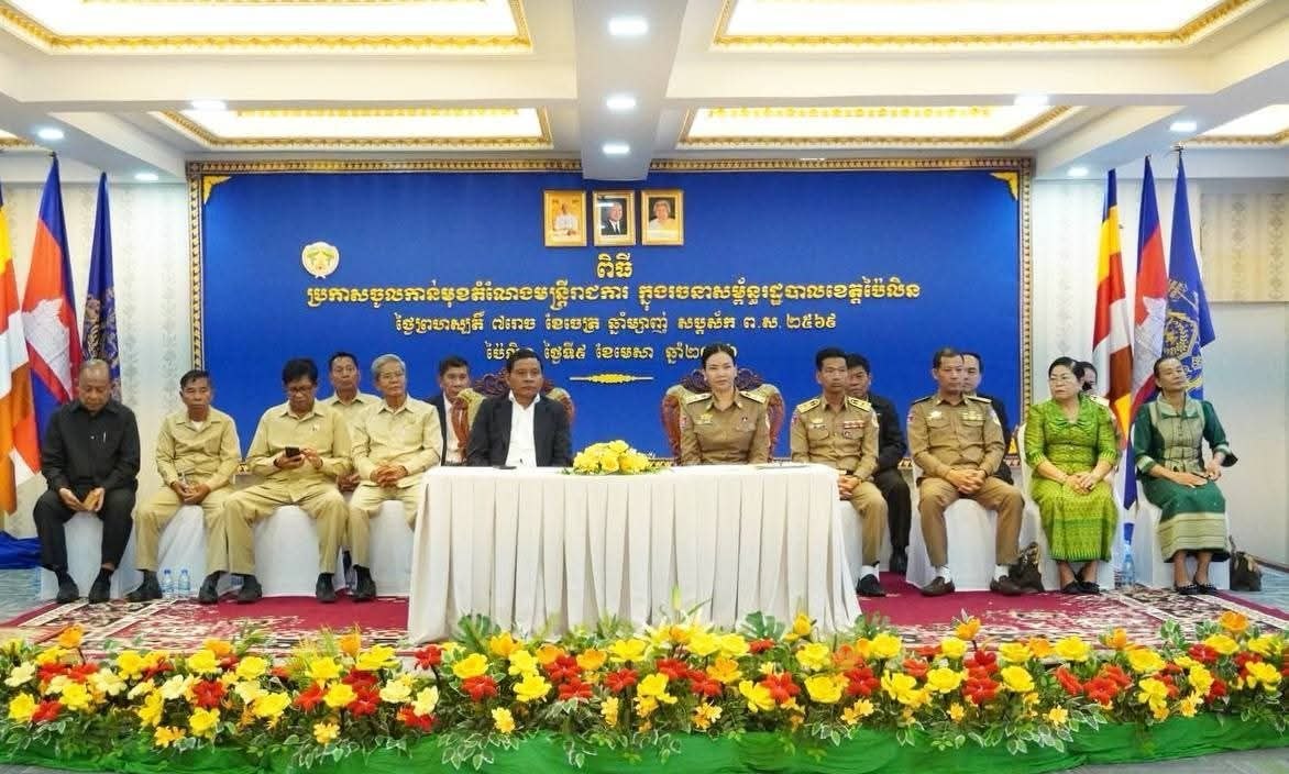 ប៉ៃលិន៖ នារសៀលថ្ងៃទី០៩ ខែមេសា ឆ្នាំ២០២៦ រដ្ឋបាលខេត្តប៉ៃលិន បានប្រកាសចូលកាន់មុខតំណែងថ្មី ដល់មន្ត្រីរាជការក្នុងរចនាសម័ន្ធរដ្ឋបាលខេត្ត ចំនួន ២៣រូប ស្ថិតក្រោមអធិបតីភាពដ៏ខ្ពង់ខ្ពស់ ឯកឧត្តម ជា ចានឌិន ប្រធានក្រុមប្រឹក្សាខេត្ត និងលោកជំទាវបណ្ឌិត បាន ស្រីមុំ អភិបាល នៃគណៈអភិបាលខេត្តប៉ៃលិន។