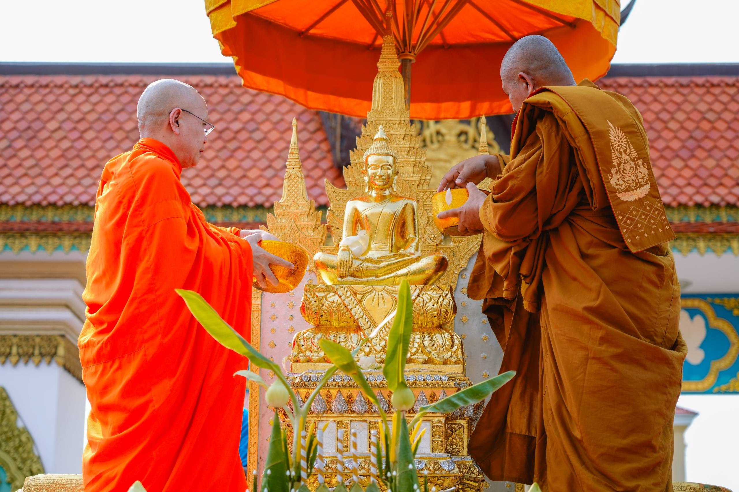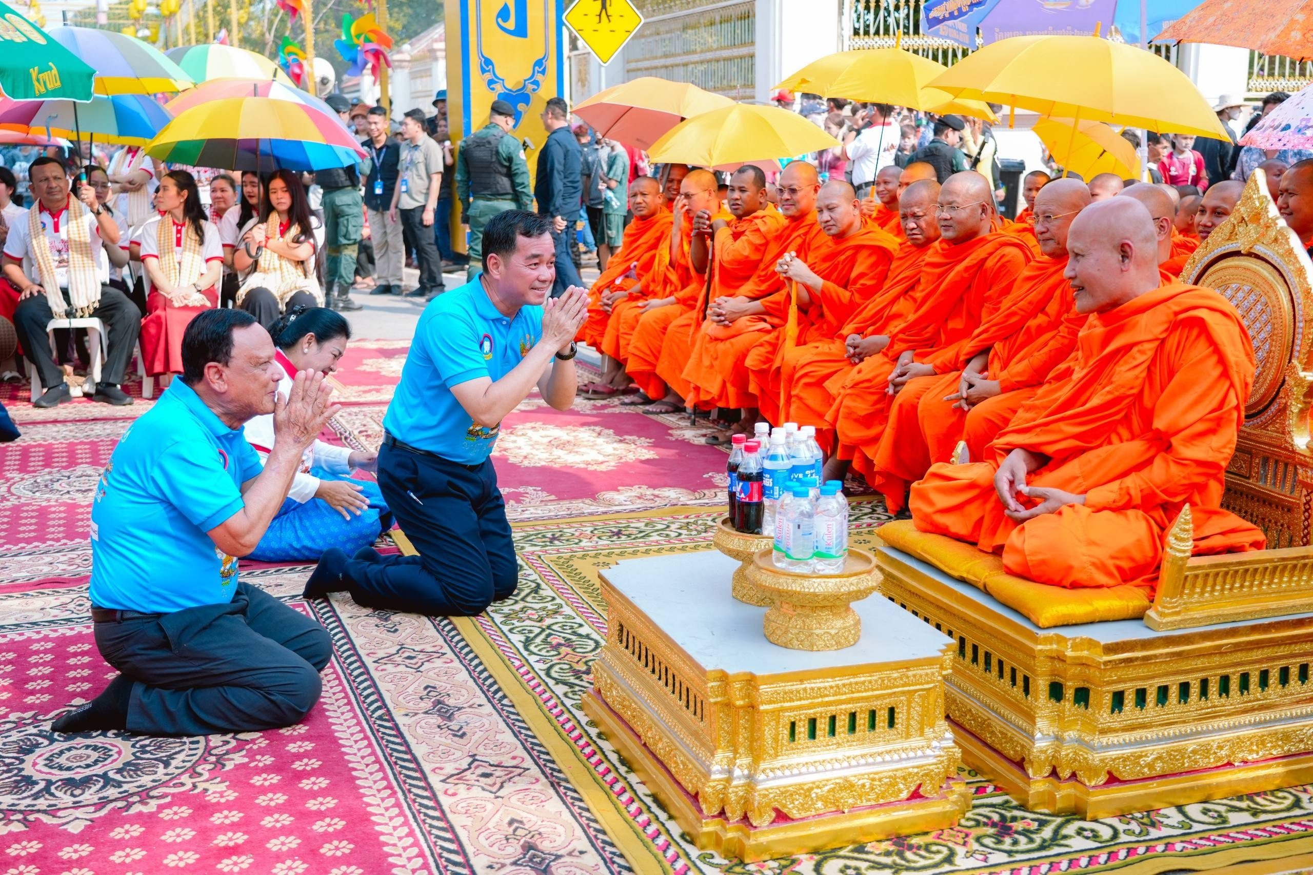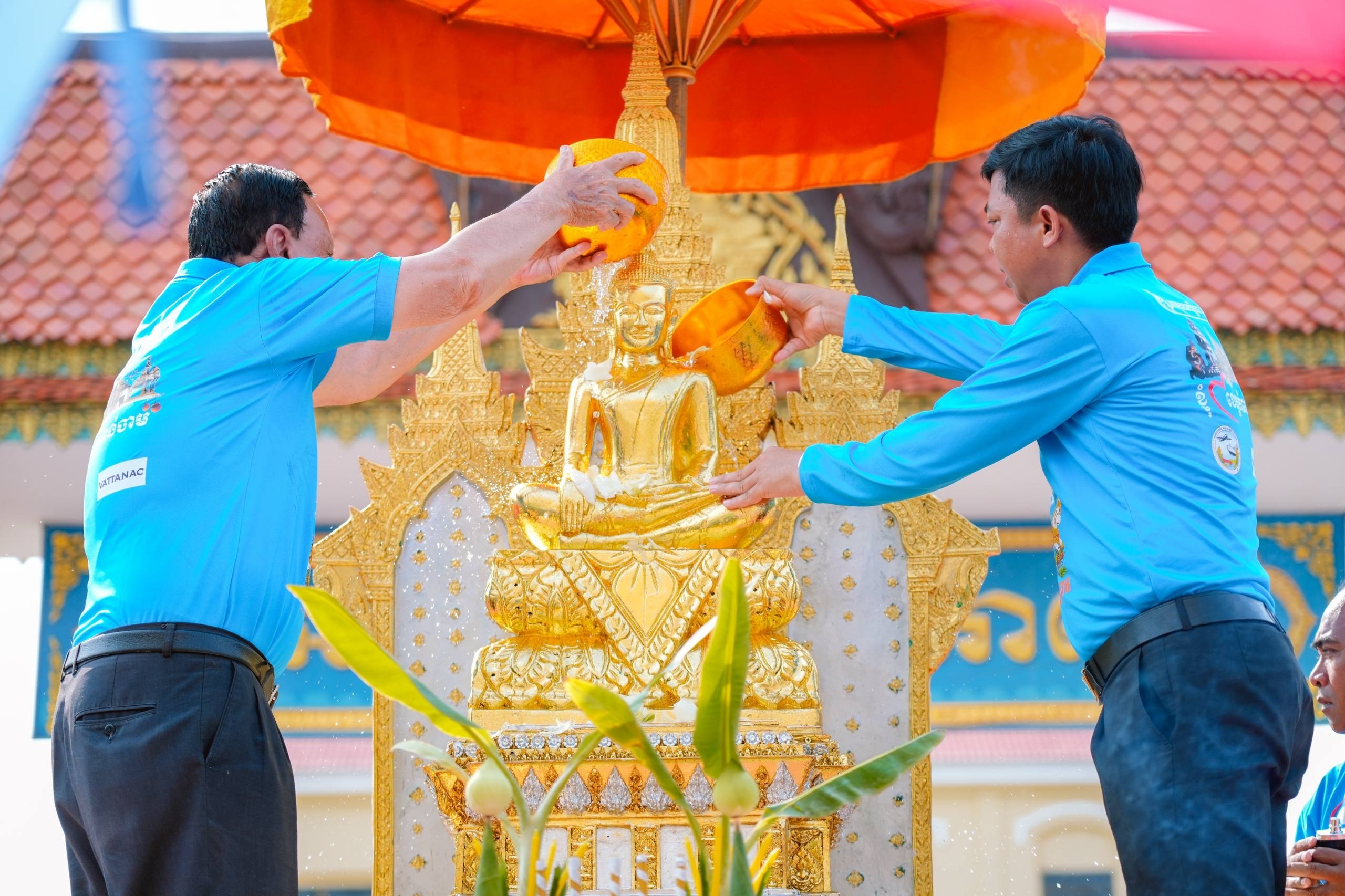 ពិធីដ៏ឱឡារិក និងមានអត្ថន័យដ៏វិសេសវិសាលនេះ មានការនិមន្តពីព្រះមន្ត្រីសង្ឃ ចំនួន១០៨ អង្គ ប្រោះព្រំព្រះពុទ្ធមន្តចម្រើនសិរី និងព្រះរាជទានយ័ន្ត ចំនួន ១០.០០០សន្លឹក ជូនដល់ប្រជាពលរដ្ឋ មកលេងកម្សាននាខេត្តកំពង់ចាមដែលមកចូលរួម ដើម្បីពង្រឹងសេចក្ដីសុខផ្នែកផ្លូវចិត្ត នារសៀលថ្ងៃទី៣ នៃពិធីបុណ្យចូលឆ្នាំខ្មែរ គឺជាថ្ងៃឡើងស័ក ឬថ្ងៃឆ្លង ដែលគេប្រារព្ធពិធីស្រង់ទឹករូបបដិមាព្រះពុទ្ធ ប្រោះព្រុំសុំសេចក្តីសុខ ជូនវីរកងទ័ពនិង ធ្វើបុណ្យឧទ្ទិសកុសលដល់យុទ្ធជនពលី ក្នុងបុព្វហេតុជាតិមាតុភូមិ។